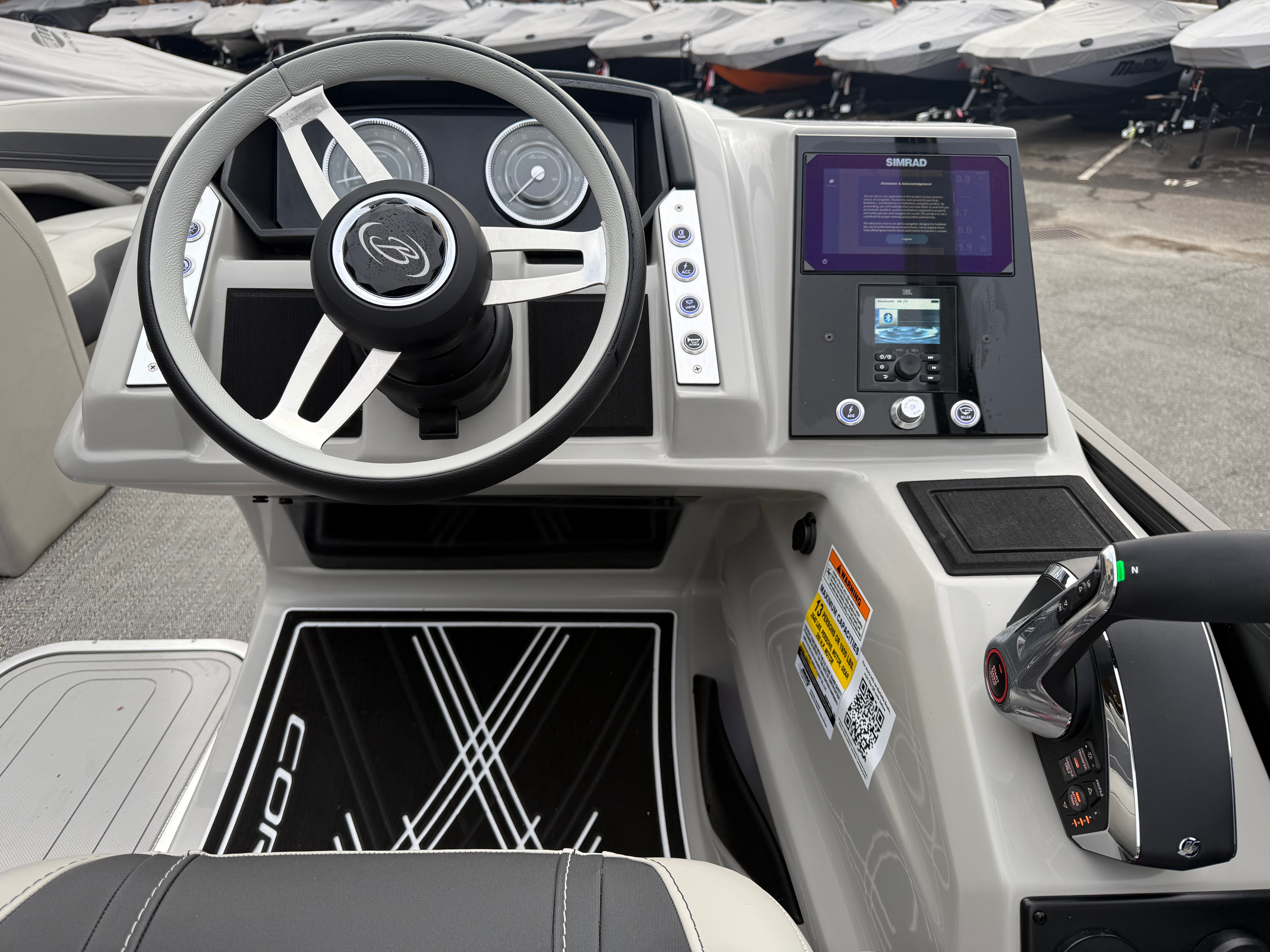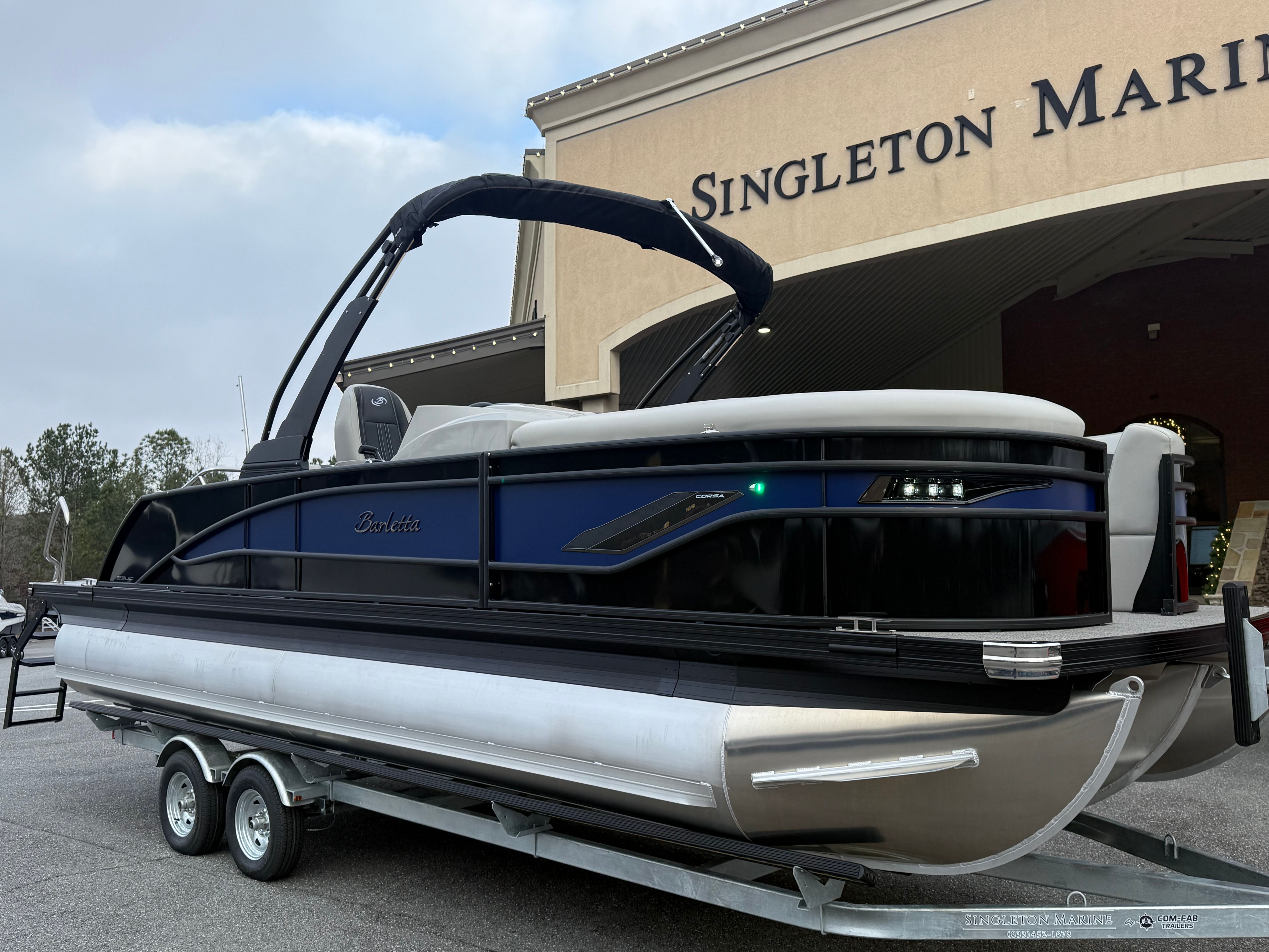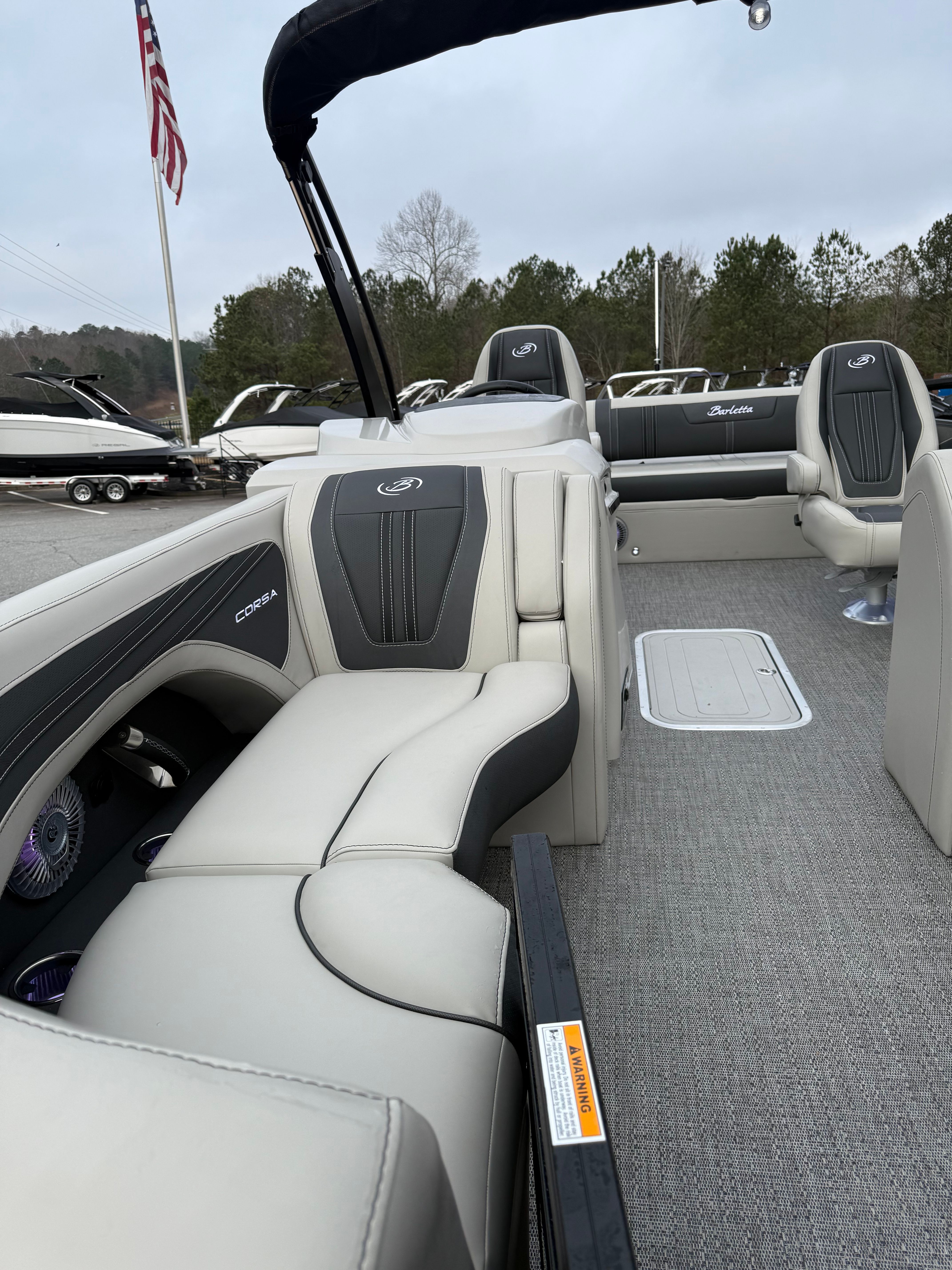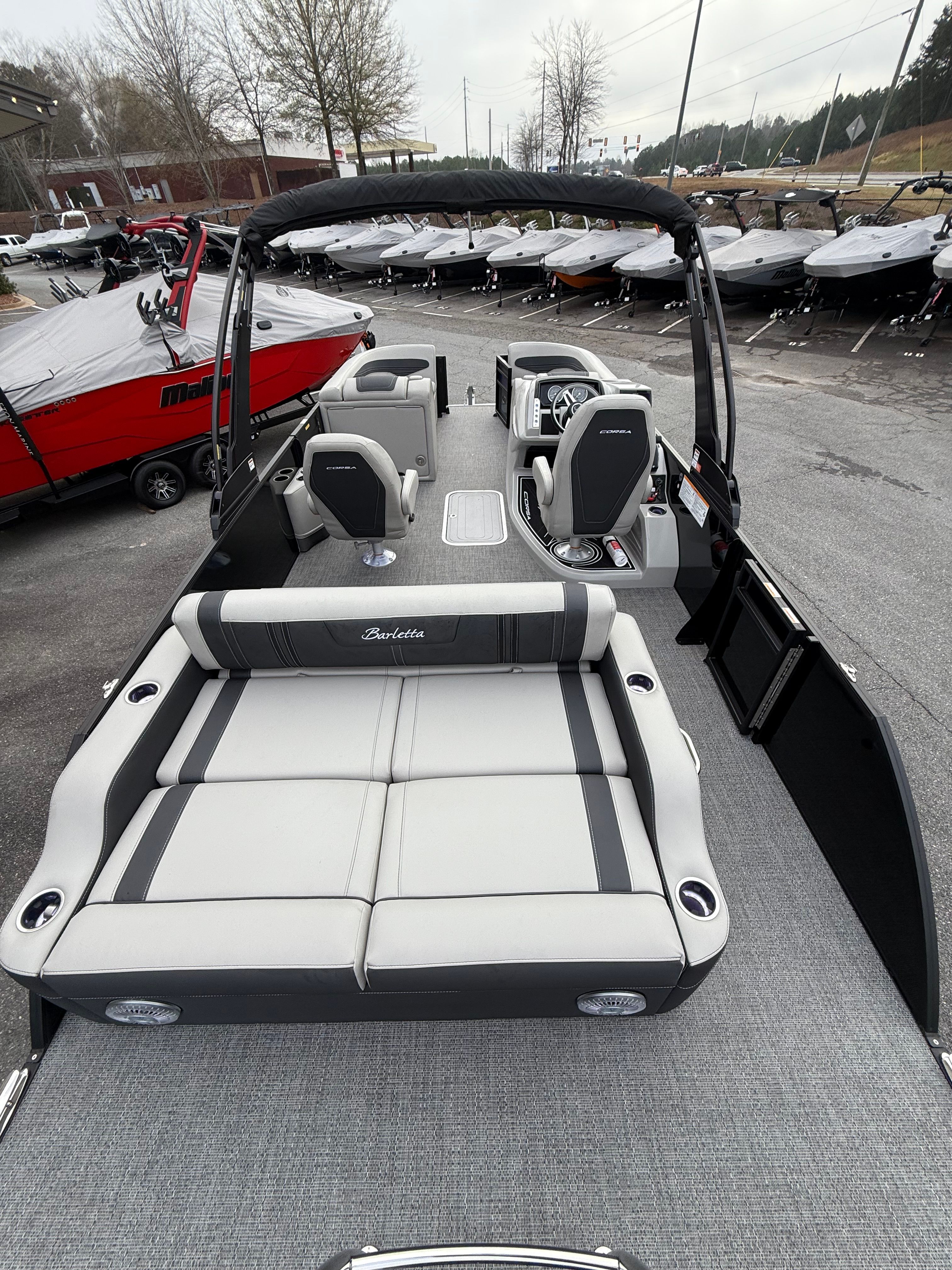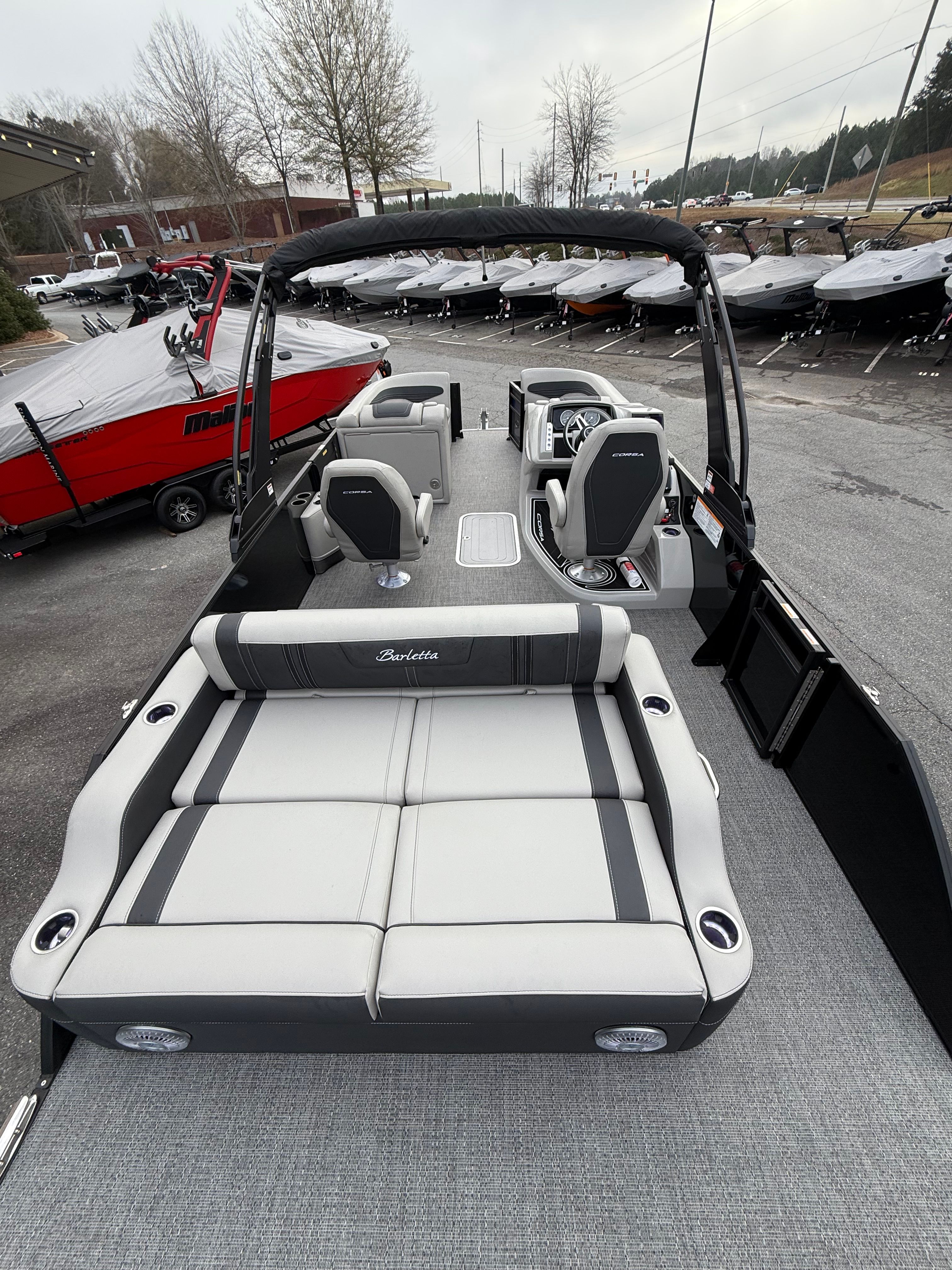 The 2026 Barletta Corsa 23UC is a standout pontoon boat for sale, offering a unique combination of style, performance, and advanced features. With its powerful Mercury 250L Verado V8 engine, striking Railskin color scheme, luxurious furniture, and practical amenities like the Sport Bimini and on-board battery charger, this new Barletta boat for sale is designed to elevate your boating adventures. Whether you’re looking for a family-friendly vessel, a party platform, or a luxurious escape, the Corsa 23UC delivers on every front. Don’t miss the opportunity to experience the ultimate in comfort, convenience, and fun – contact your local dealer today to learn more about the Barletta Corsa 23UC and make your dream of owning a premium pontoon boat a reality.