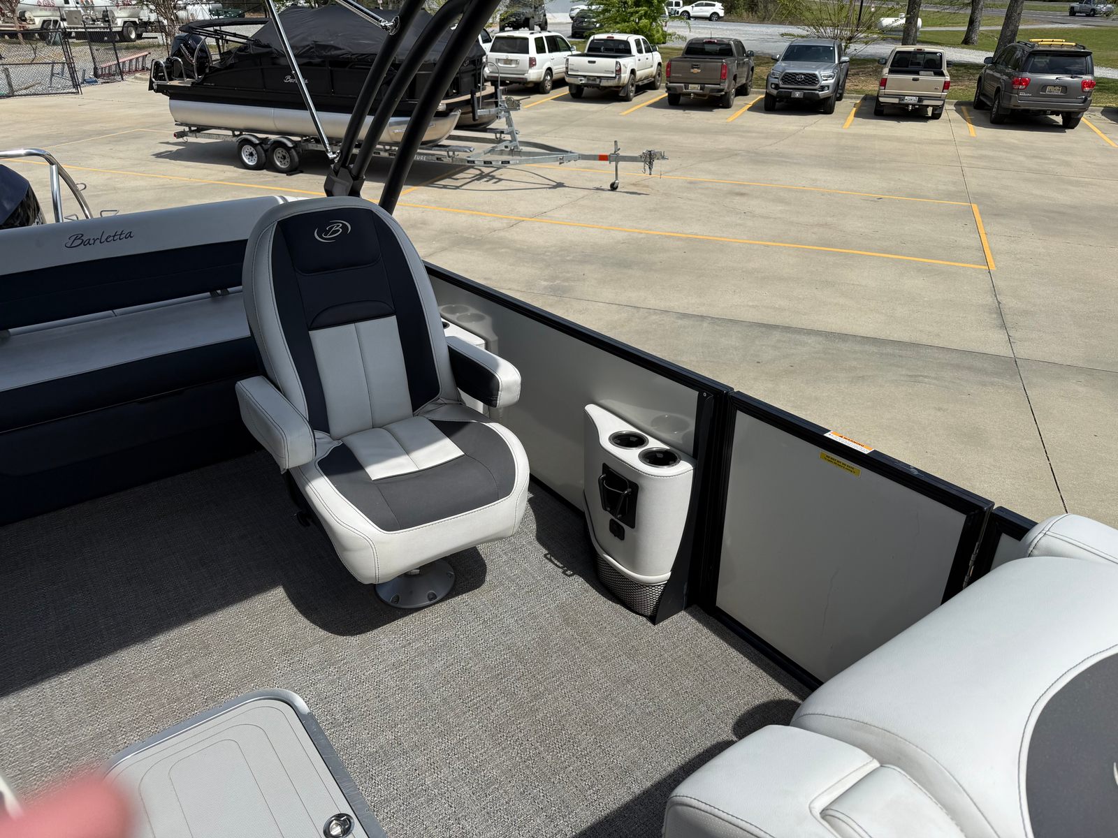 The 2021 Barletta Corsa 23UCA is as practical as it is enjoyable. Its spacious deck offers plenty of storage options for gear, water toys, and personal belongings, keeping the area tidy and organized. The pontoon’s design makes docking and maneuvering straightforward, even for those new to boating. Fuel efficiency is another highlight, allowing you to spend more time on the water and less time at the pump.This used pontoon boat is perfect for a wide range of activities, from leisurely cruises and fishing trips to water sports and family picnics. The sturdy construction and reliable engine mean you can venture out with confidence, knowing that your boat is built to handle whatever the day brings. The Corsa 23UCA’s versatility makes it a smart investment for anyone looking to maximize their time on the water.