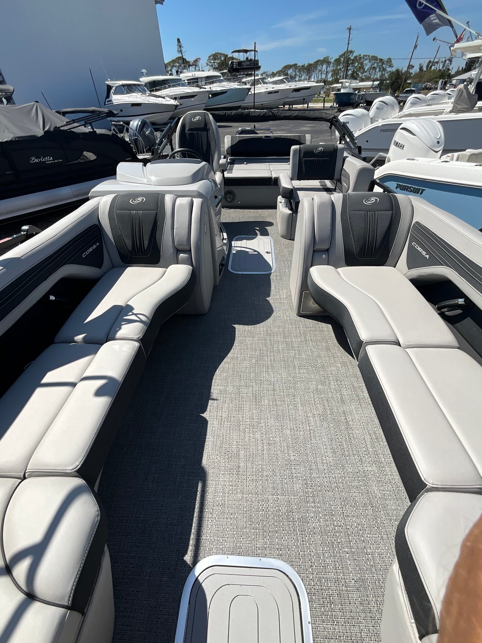 The Barletta Corsa 25U shines in a variety of settings, making it the perfect choice for families, friends, and boating enthusiasts alike. Imagine hosting a weekend gathering with loved ones, where everyone has plenty of space to relax, sunbathe, or enjoy a picnic on the water. The boat’s stable platform and comfortable seating make it ideal for leisurely cruises, while the powerful engine opens up opportunities for water sports and adventure.For those who love fishing, the ample storage and spacious deck provide everything you need for a successful day on the water. The Corsa 25U is also perfect for romantic getaways, offering a private and luxurious escape where you can enjoy the beauty of nature in comfort and style. Whether you are exploring new waterways, anchoring at your favorite swimming spot, or simply enjoying a peaceful sunset, this pontoon boat delivers unforgettable experiences every time.