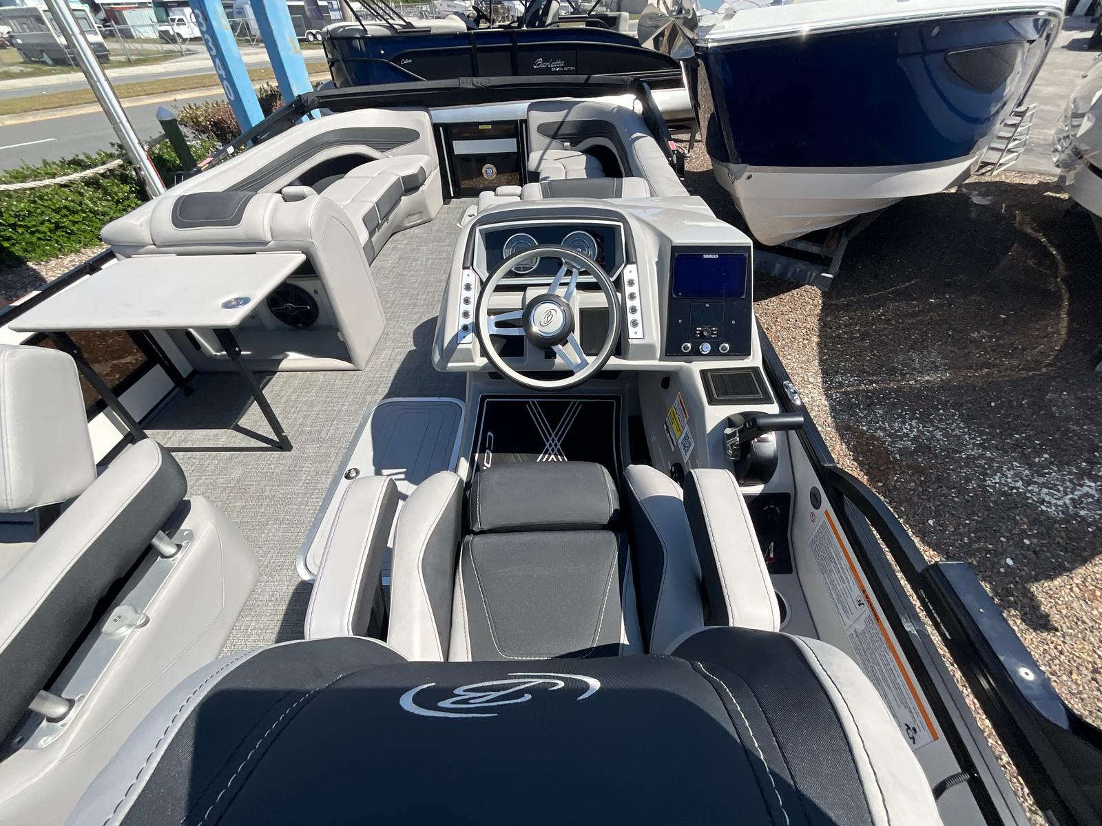 The 2025 Barletta Corsa 25U is packed with premium features that elevate your boating experience. The Triple Toon Package with midship storage not only enhances stability and ride comfort but also provides ample space for storing gear, water toys, and essentials. The Coastal Edition ensures this pontoon is ready for saltwater adventures, offering added protection and durability for coastal environments. The Amore Gray flooring is both stylish and practical, providing a comfortable and easy-to-clean surface underfoot.The White Opal railskin color adds a touch of elegance, while the soft touch Marquesan Gray furniture with carbon accents creates a luxurious and inviting seating area for all passengers. Anchor storage at the bow gate keeps your anchor secure and easily accessible, streamlining the anchoring process. Every detail, from the stainless steel prop to the thoughtfully designed storage solutions, is crafted to enhance your time on the water.