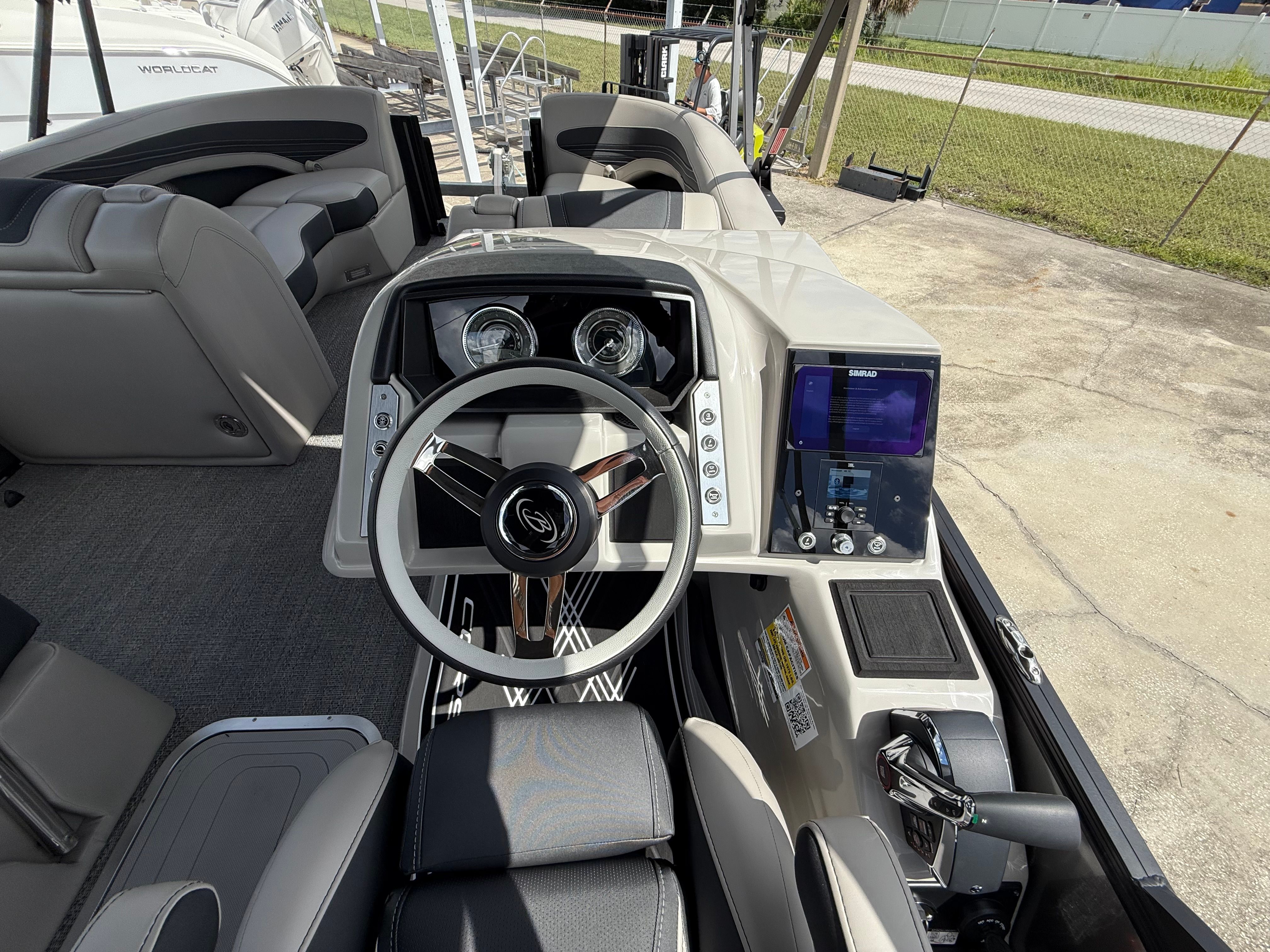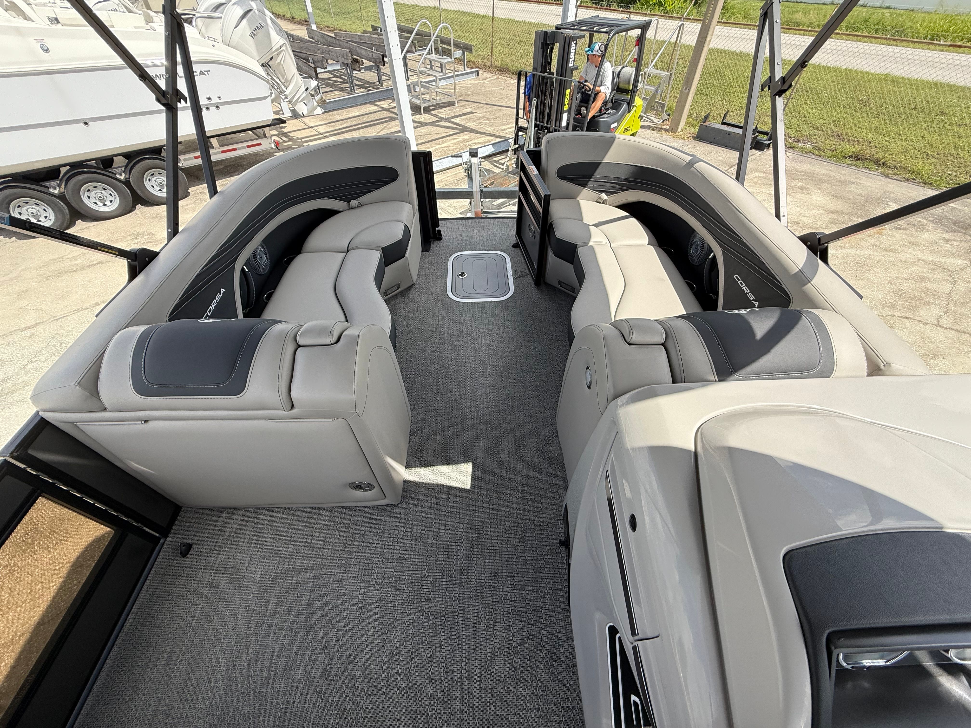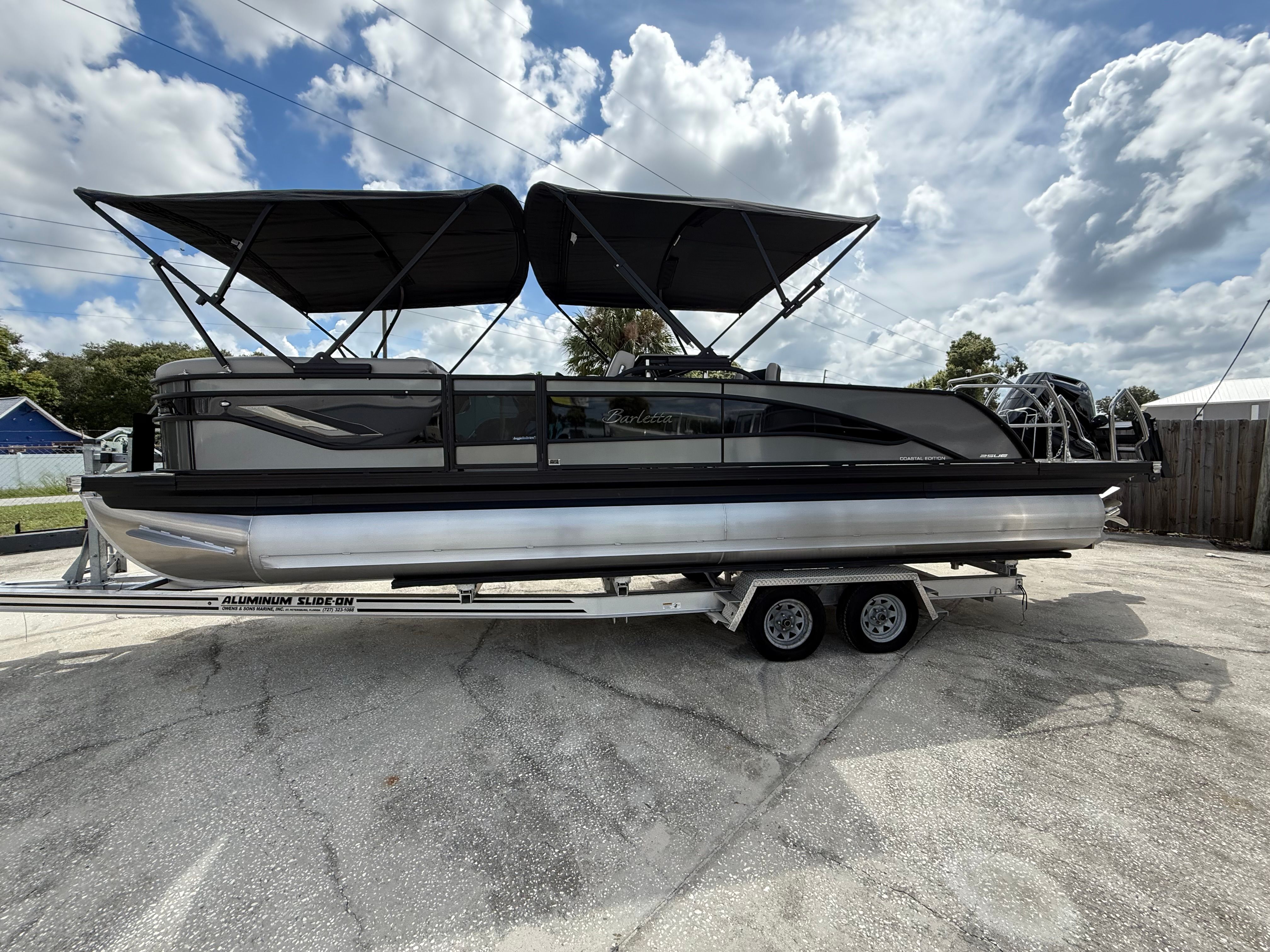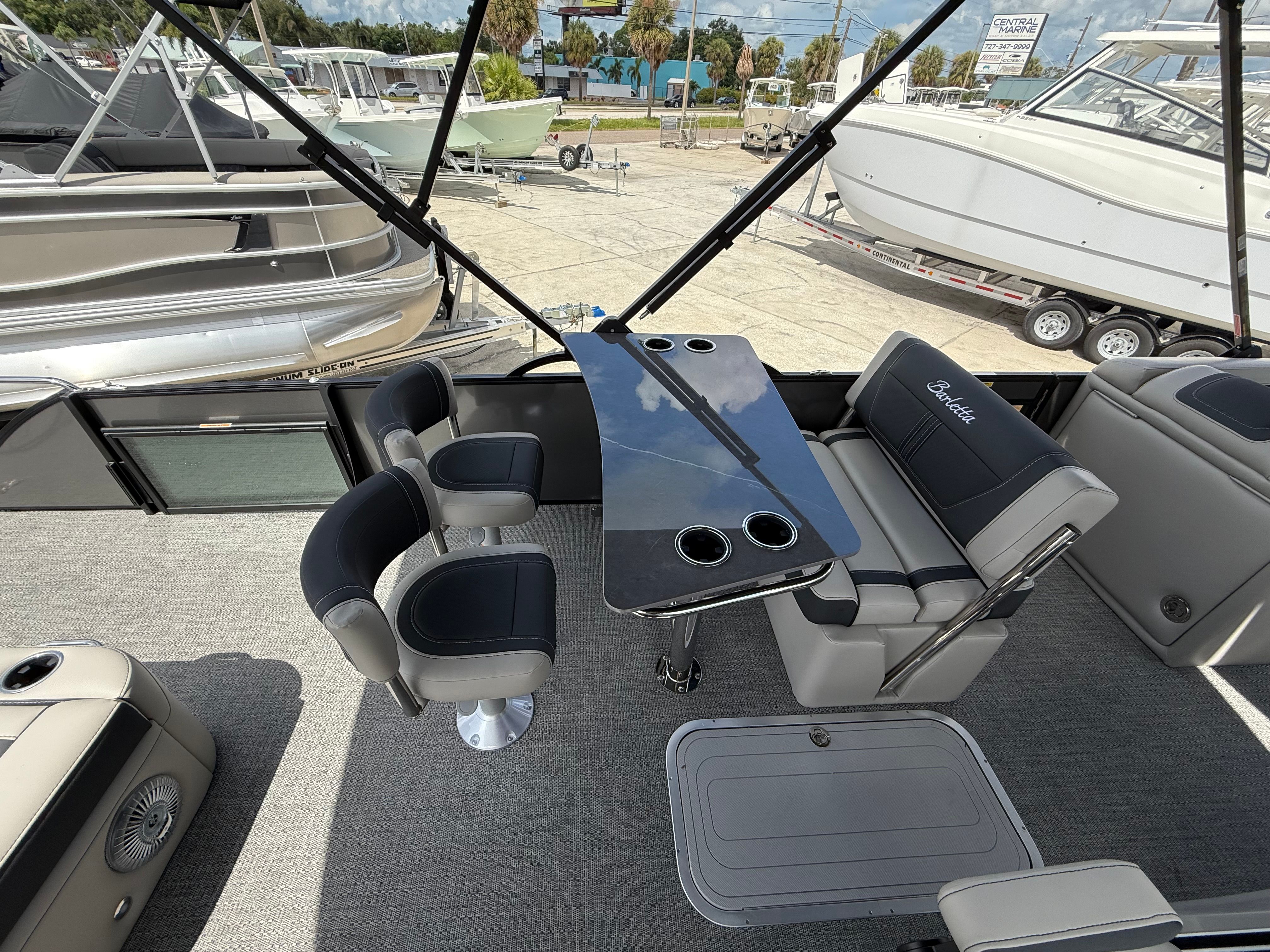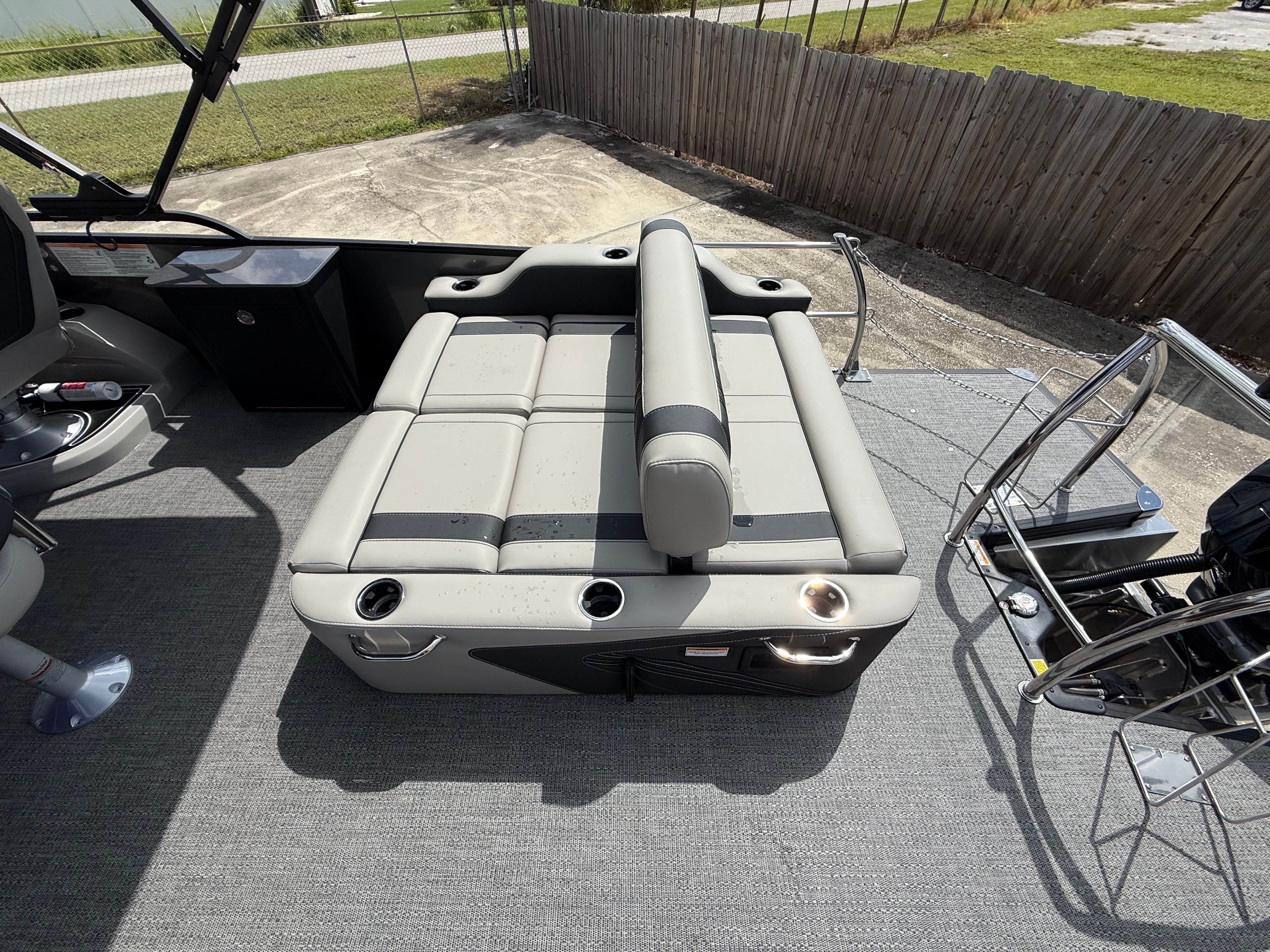In summary, the 2026 Barletta Corsa 25UE is a premier pontoon boat for sale that combines cutting-edge design, luxurious comfort, and outstanding performance. With its striking Gray Moonstone and Black Diamond color scheme, Blackout Package Corsa, plush Soft Touch Marquesan Gray furniture, Amore Gray flooring, and the powerful Mercury (D) 350L V10 Verado engine, this Barletta boat for sale is truly in a class of its own. The Coastal Edition Corsa and double bimini add to its versatility and appeal, making it the ultimate choice for those who demand the best from their boating experience.If you are ready to elevate your time on the water and create lasting memories with family and friends, the Barletta Corsa 25UE is waiting for you. Discover the joy of owning a pontoon that delivers on every promise—style, comfort, performance, and fun. Contact your local dealer today to learn more about this exceptional pontoon and take the first step toward your next great adventure.