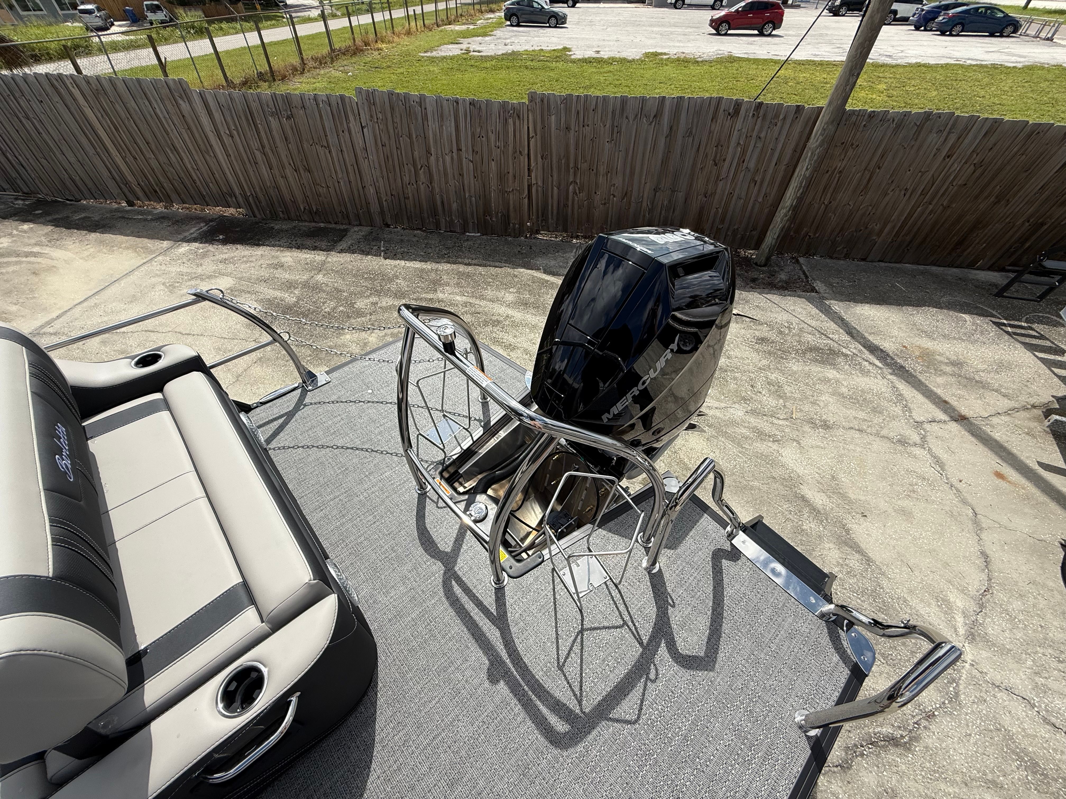 Beyond its stunning looks and impressive performance, the Barletta Corsa 25UE is engineered for practical, everyday enjoyment. The spacious deck layout offers plenty of room for storage, making it easy to bring along all your gear for a day of fun. Docking and maneuvering are simplified by the responsive handling and advanced engine technology, allowing you to navigate tight spaces with ease.Fuel efficiency is another key advantage, thanks to the modern Mercury V10 Verado engine. Spend more time on the water and less time at the fuel dock, maximizing your enjoyment and minimizing your operating costs. The durable flooring and high-quality materials are designed to withstand the rigors of regular use, ensuring your pontoon remains beautiful and functional for years to come.