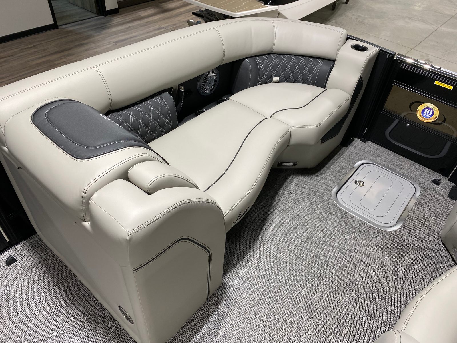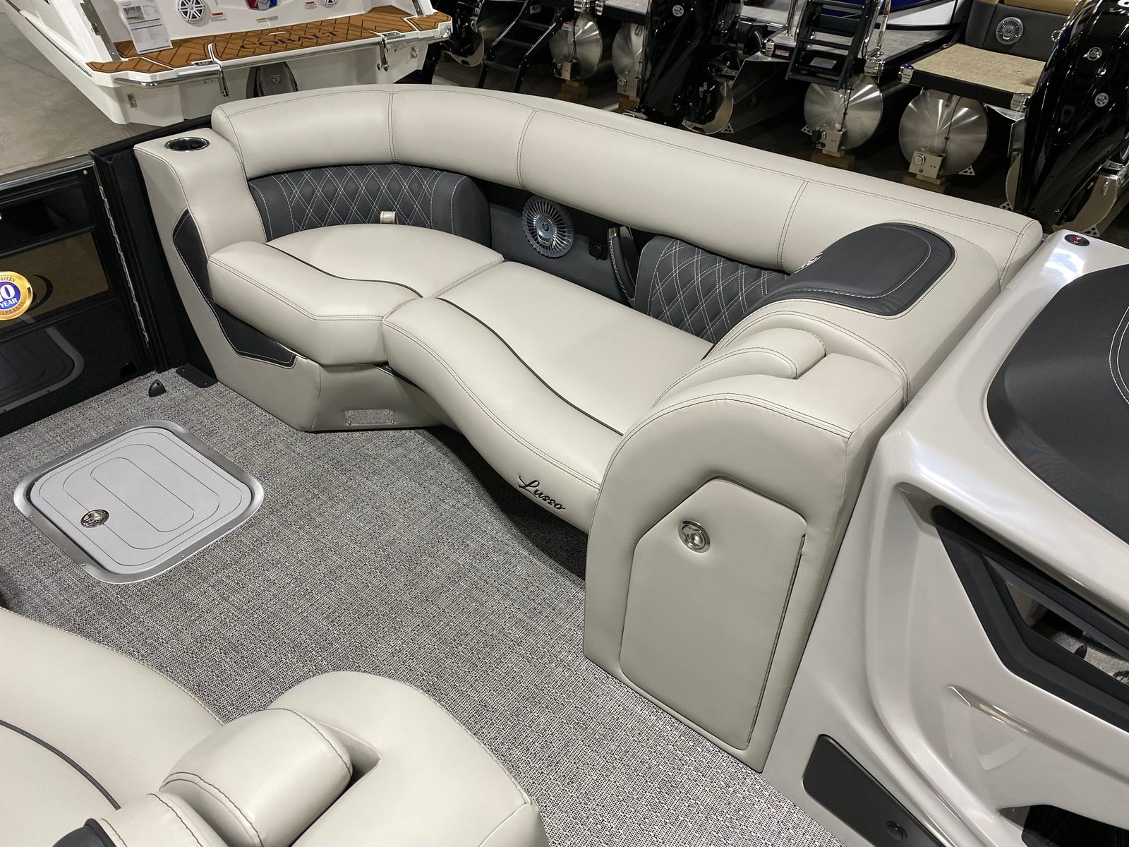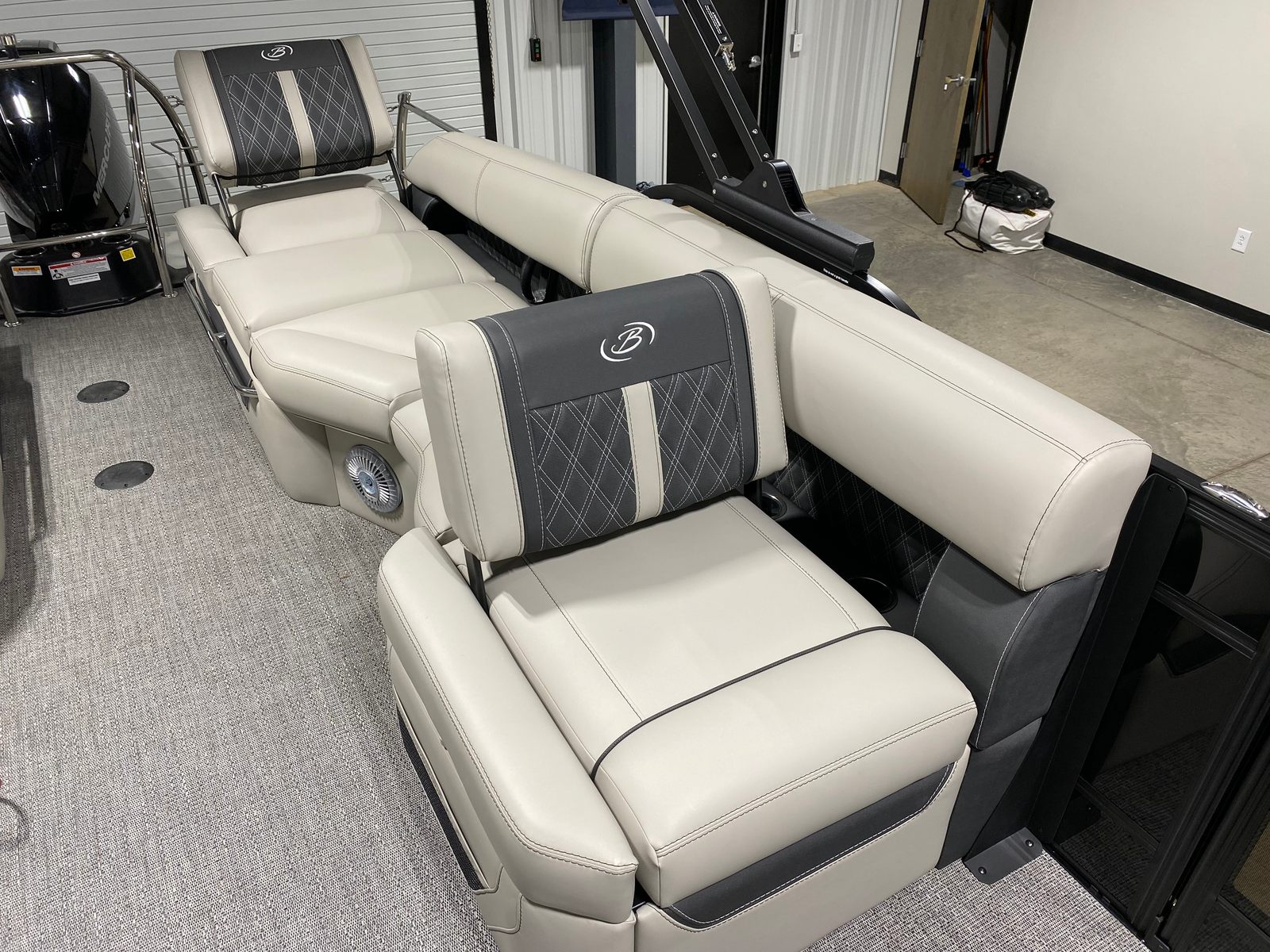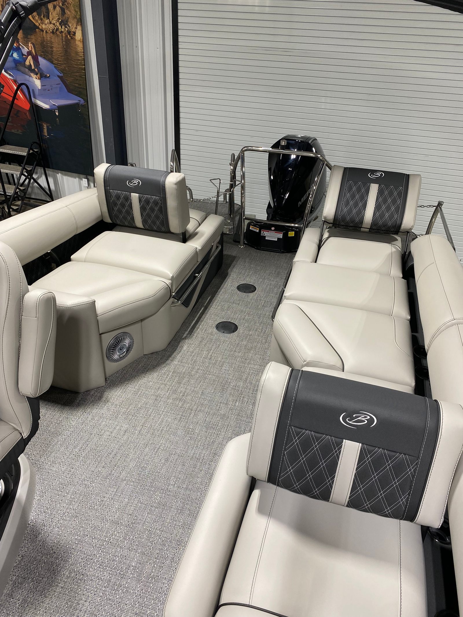 Powering the Lusso L23M is a robust Mercury (D) 250L Verado V8 engine, delivering an impressive 250 horsepower. This single-engine setup is engineered for both efficiency and excitement, providing plenty of power for cruising, watersports, or simply enjoying a leisurely ride. The Mercury Digital DTS Pre-Rig for VERADO engines with Vessel Link ensures seamless integration and precise control, while hydraulic and power assist steering make maneuvering effortless. Whether you’re gliding across calm lakes or navigating busy waterways, the Lusso L23M offers a responsive and exhilarating performance that sets it apart from other pontoon boats for sale.
