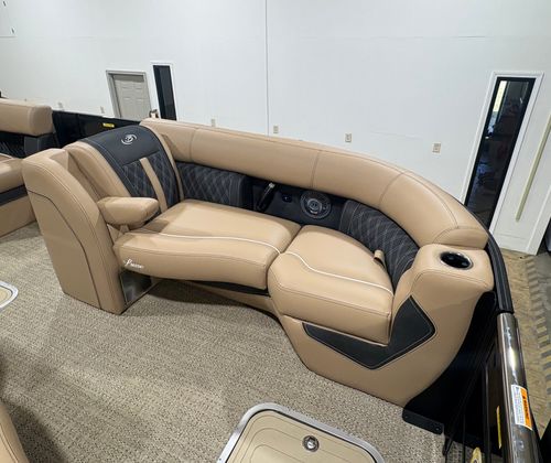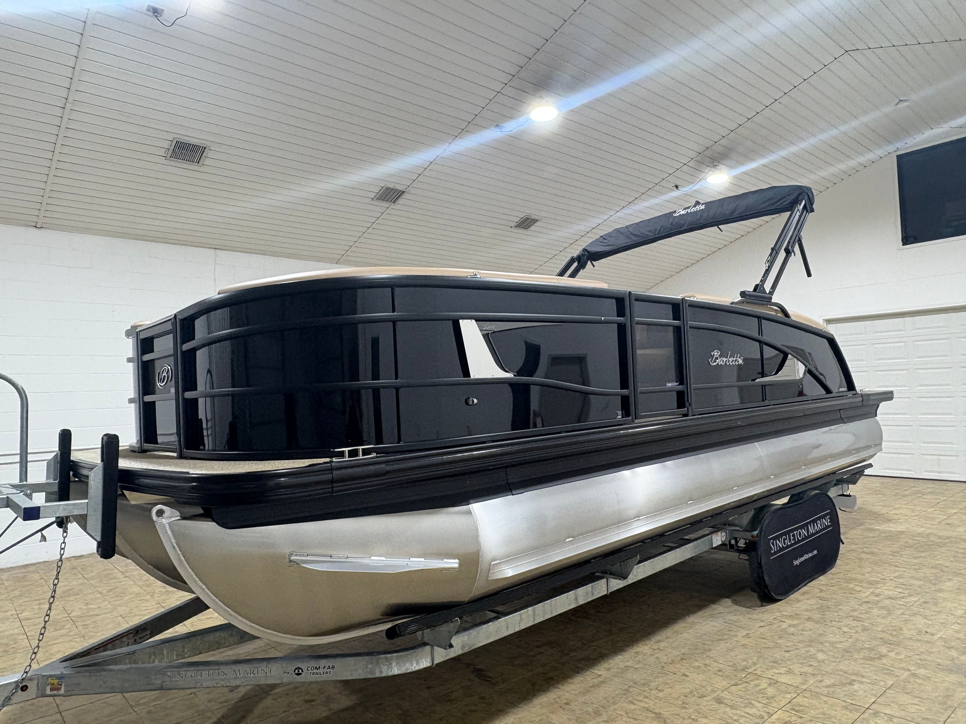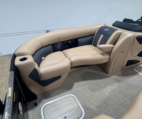 The Barletta Lusso L23U is a 2026 model pontoon boat that stretches an impressive 25.5 feet in length, offering ample space for friends and family to relax and enjoy the water. Its striking Black Diamond exterior, complemented by the Blackout Package Lusso railskin, gives this pontoon a modern and sophisticated look that stands out at any marina or lake. The Carmella Tan with Onyx furniture and Amore Tan flooring create a warm, inviting atmosphere, perfect for lounging in style. As a brand-new pontoon boat for sale, the Lusso L23U promises reliability, longevity, and the latest advancements in pontoon design.