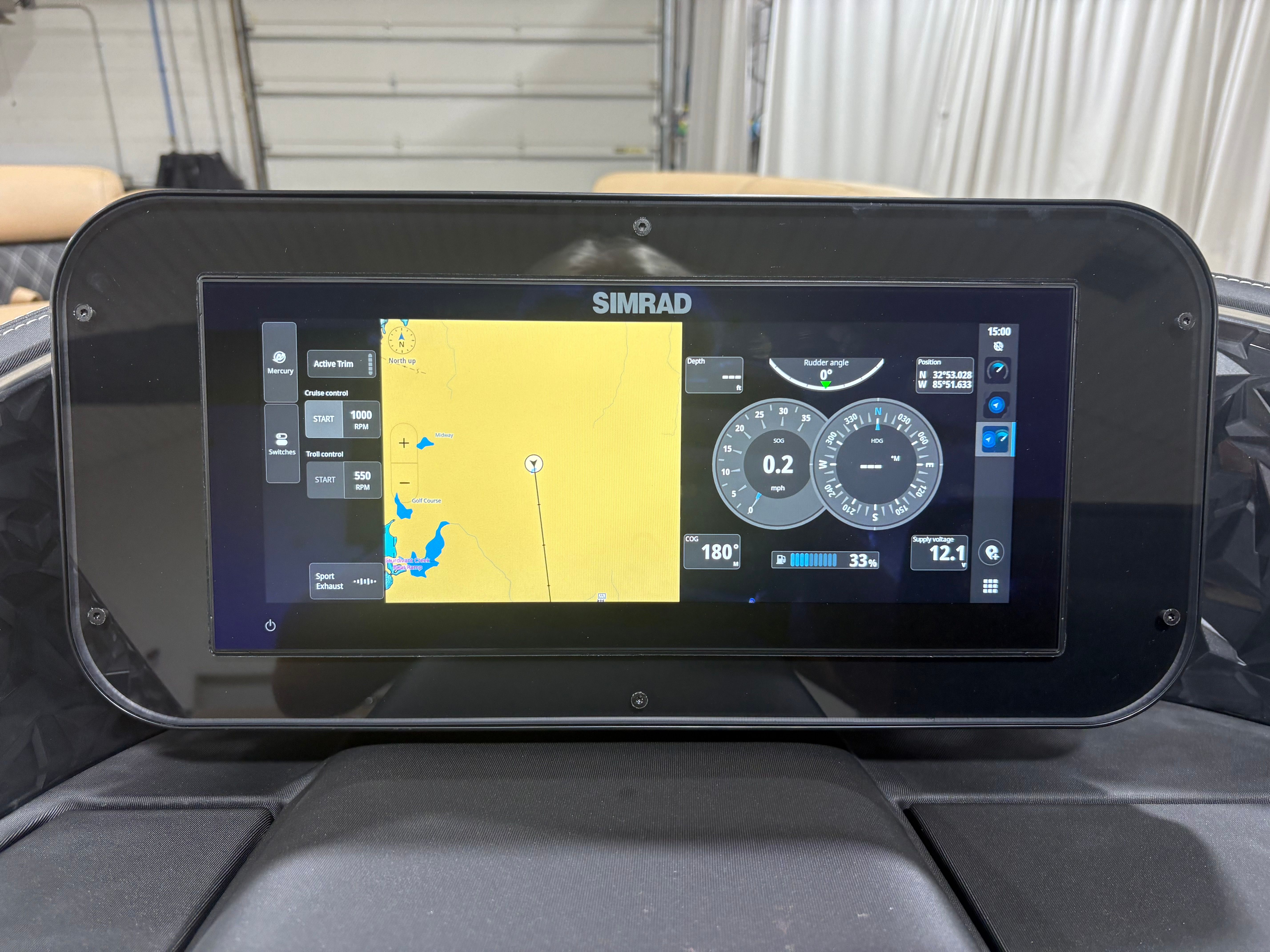 At the heart of the Lusso L23U is the powerful Mercury 250L Verado V8 engine, delivering an impressive 250 horsepower. This single-engine setup ensures smooth acceleration, responsive handling, and plenty of power for cruising, watersports, or exploring new destinations. The Mercury Digital DTS Pre-Rig for VERADO engines with Vessel Link provides seamless digital throttle and shift control, enhancing the driving experience with precision and ease. Hydraulic and power assist steering make maneuvering effortless, whether you’re docking in tight spaces or navigating open water. The stainless steel prop adds durability and efficiency, ensuring optimal performance trip after trip.
