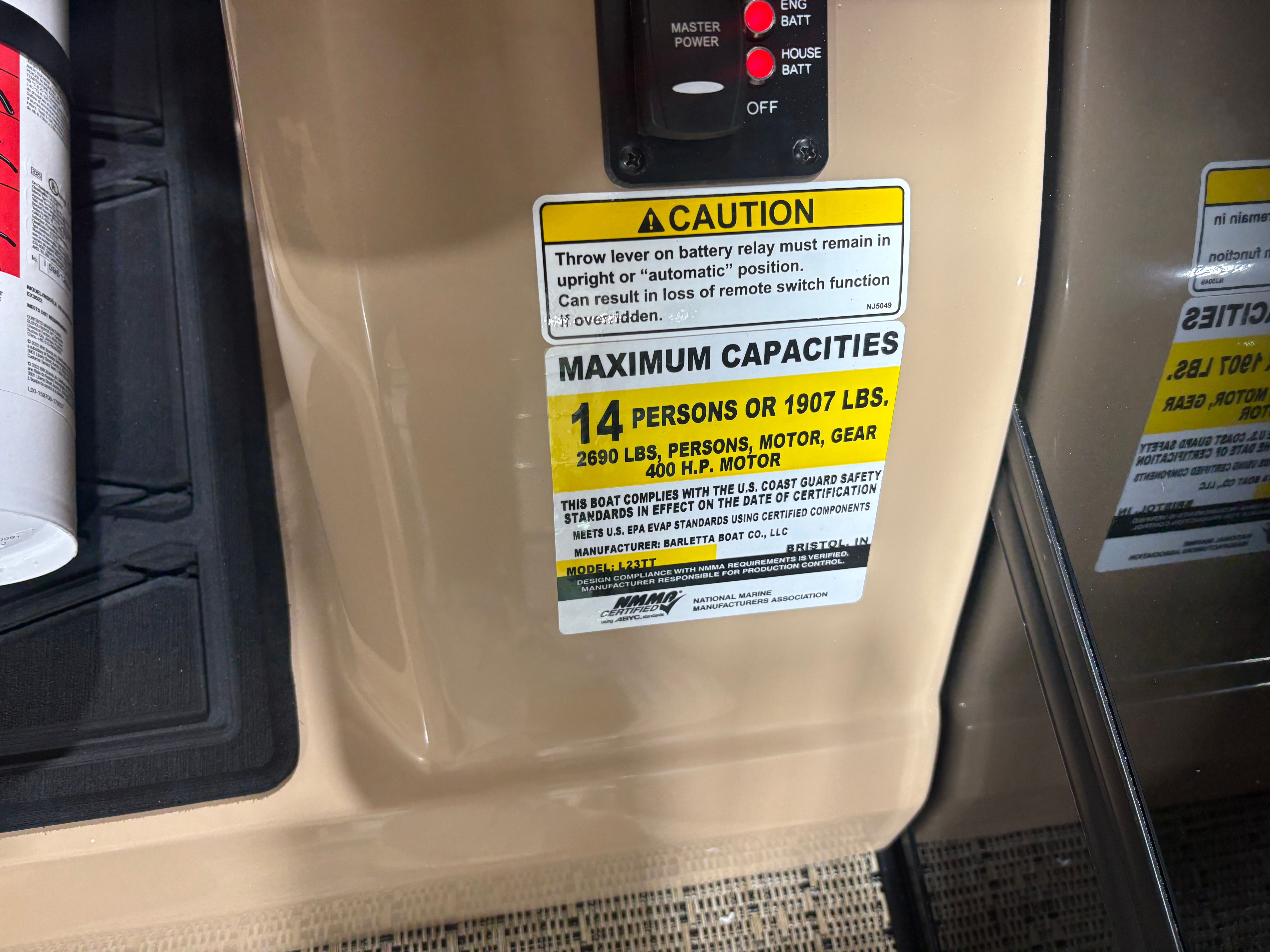 The Barletta Lusso L23U is as practical as it is luxurious. Its spacious design makes it easy to store gear, coolers, and water toys, ensuring you’re always prepared for a day of fun. The hydraulic and power assist steering simplify docking and maneuvering, even in crowded marinas or tight spaces. The durable stainless steel prop and Metal Jacket Protectant offer peace of mind, knowing your pontoon is built to withstand the rigors of regular use.Fuel efficiency is enhanced by the advanced Mercury engine and digital controls, allowing you to enjoy longer outings without frequent refueling stops. The digital gauges and Vessel Link system keep you informed and in control, making every trip safe and enjoyable. Exterior lighting adds a layer of safety for nighttime navigation, while also creating a welcoming atmosphere for evening gatherings.