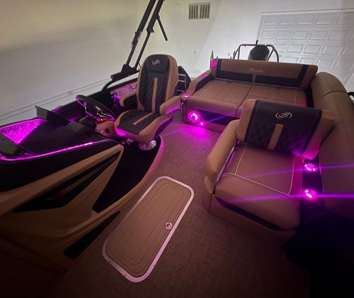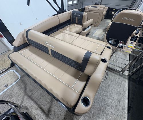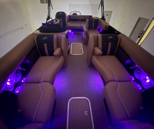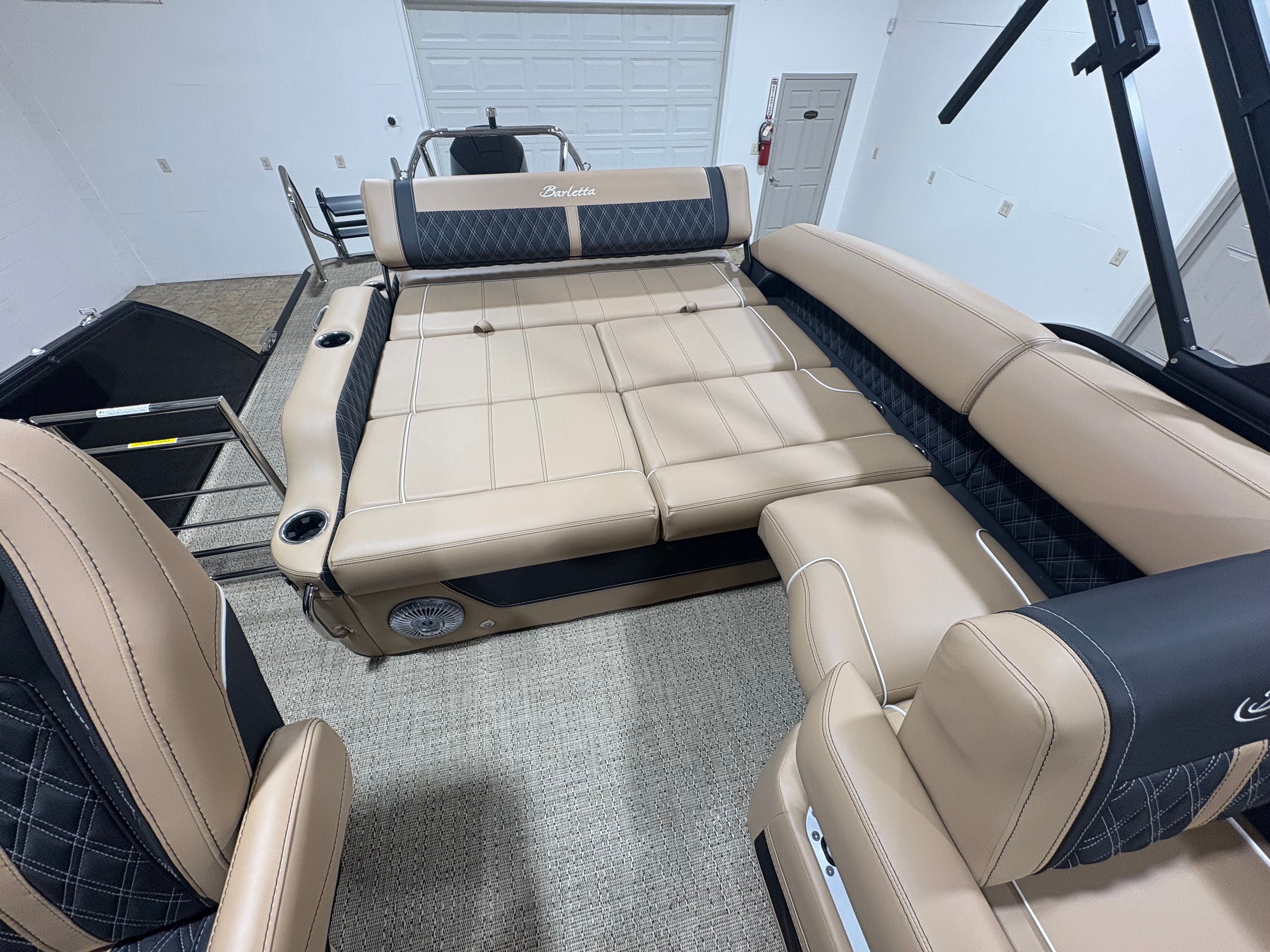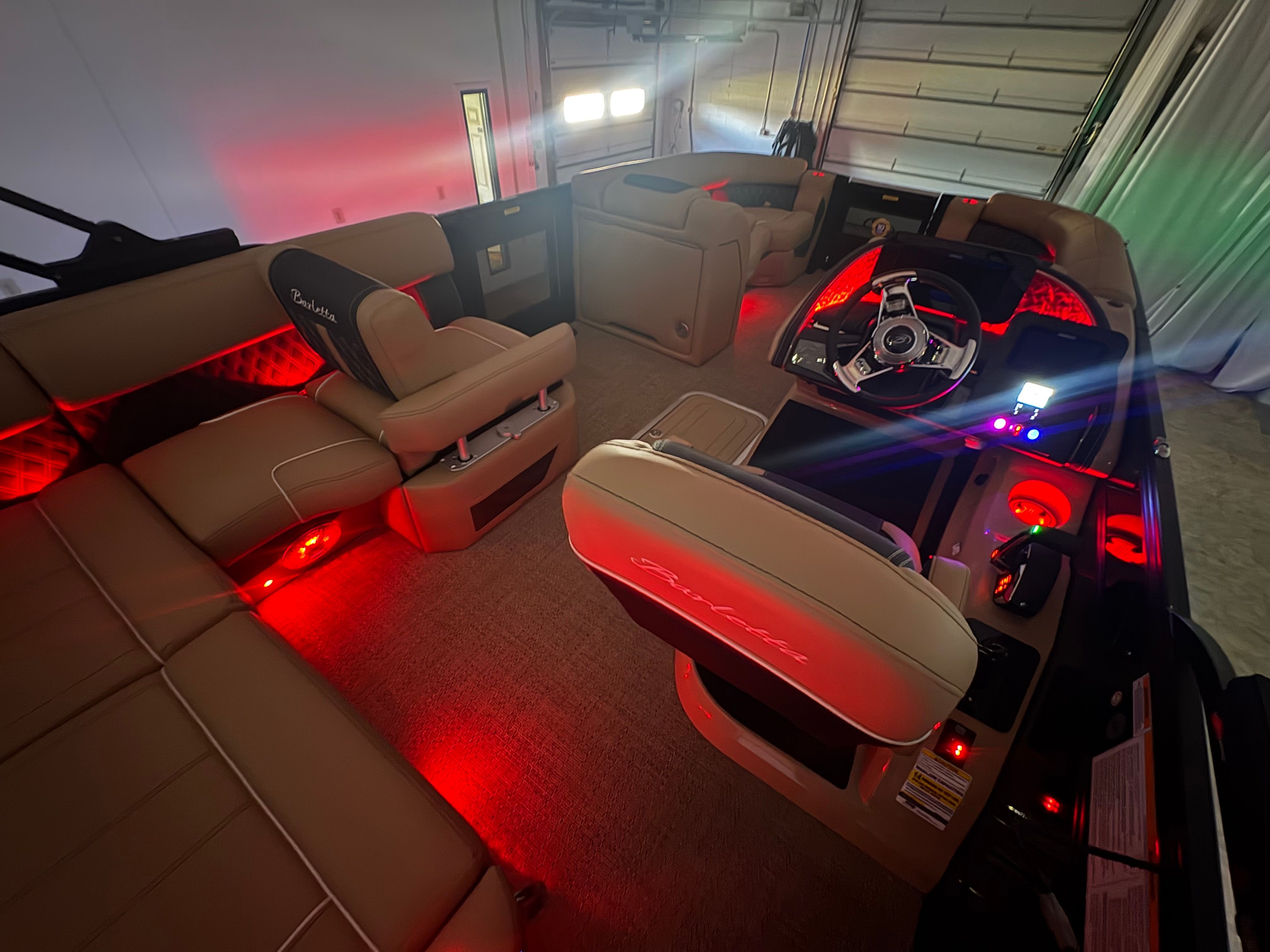 The Lusso L23U shines in a variety of scenarios, making it the ideal choice for families, social boaters, and adventure seekers alike. Imagine hosting a lively party on the water, with ample seating and stylish lighting setting the mood. Picture a relaxing day spent cruising with family, enjoying the comfort of Carmella Tan furniture and the smooth ride provided by the Mercury 250L Verado V8 engine. For those who love watersports, the powerful engine and responsive steering make towing tubes or wakeboards a breeze.This Barletta boat for sale is also perfect for romantic sunset cruises, fishing trips with friends, or luxury getaways where comfort and style are paramount. The Lusso L23U adapts to your needs, offering versatility and performance for any adventure you have in mind.