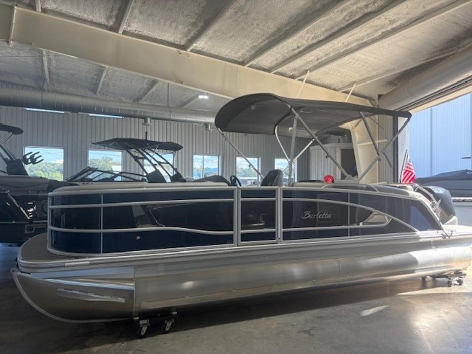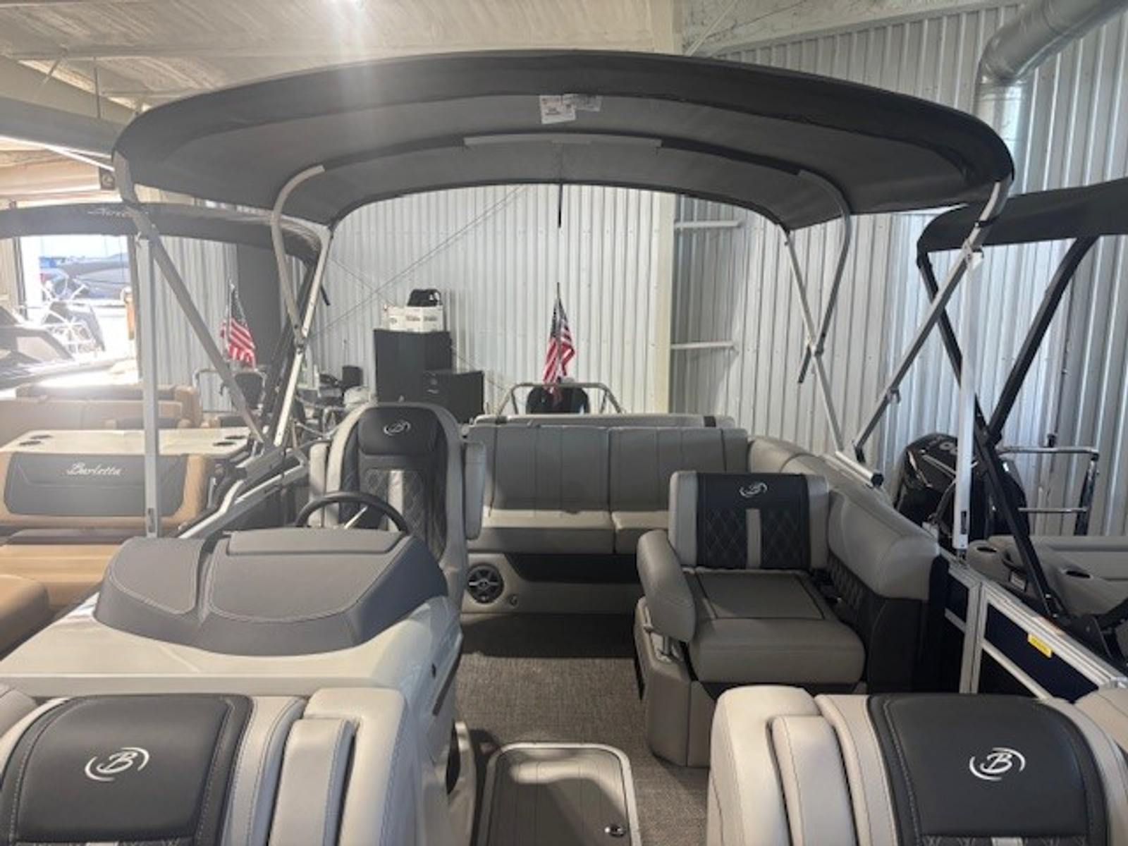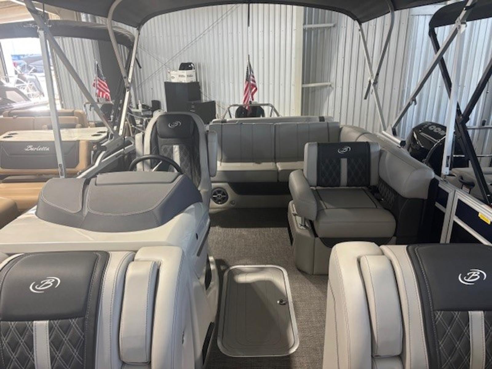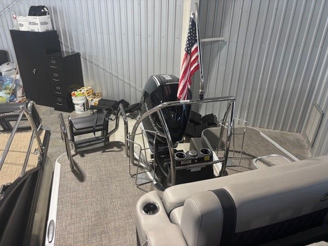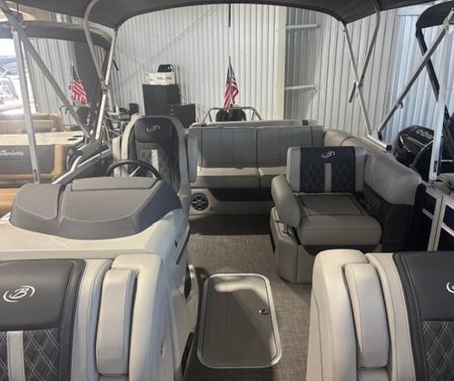 The 2025 Barletta Lusso L23U is a 25.5-foot pontoon that exudes sophistication and style. Its spacious layout and thoughtful design make it perfect for those who value both comfort and functionality. The Lusso L23U’s sleek profile is enhanced by its Black Diamond accent color and Blue Sapphire sweep, making it a true head-turner at any marina or on open water. As a new pontoon boat, it offers the latest advancements in marine technology and craftsmanship, ensuring a smooth and enjoyable ride every time you set out.
