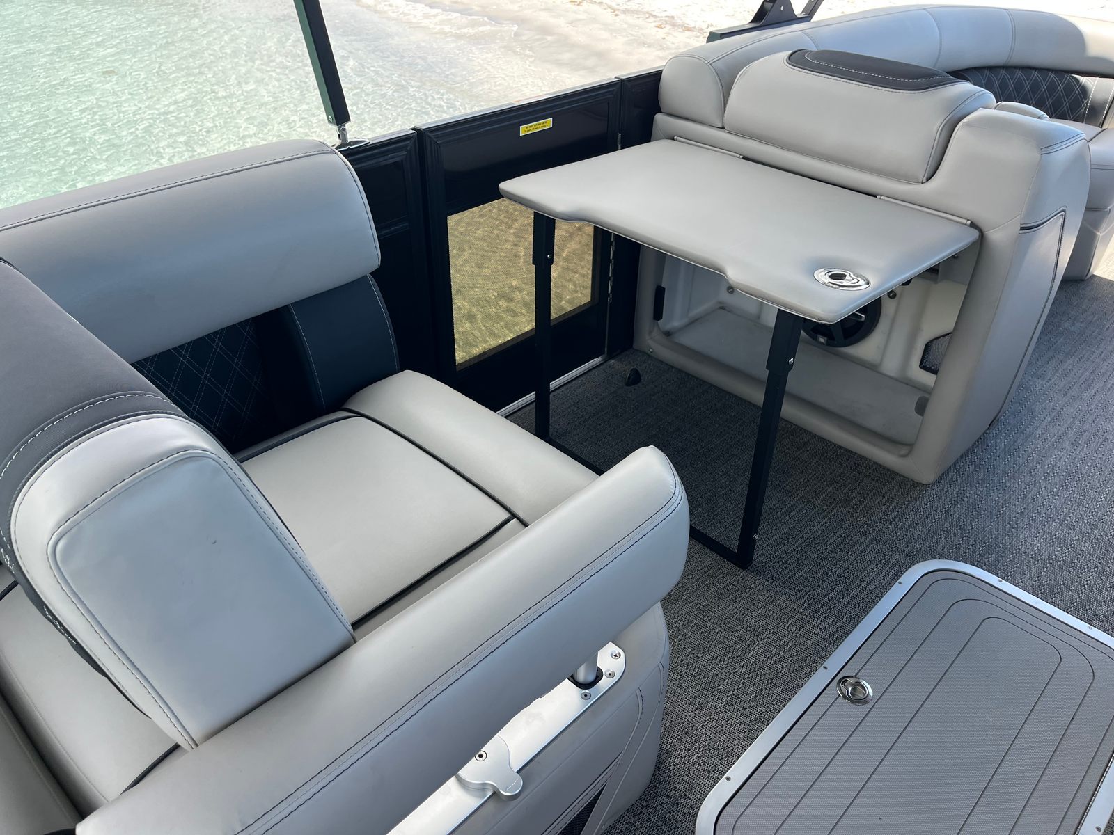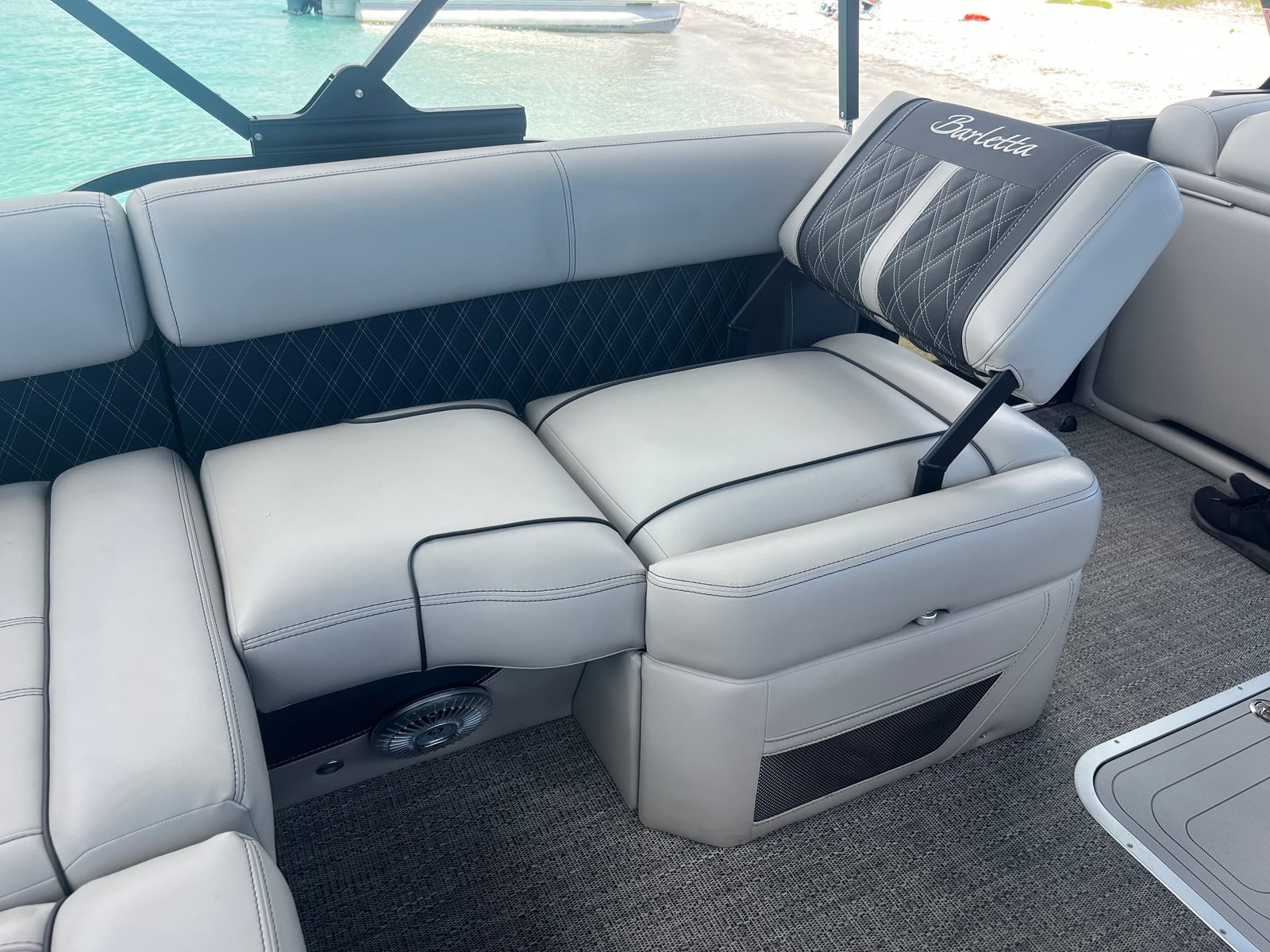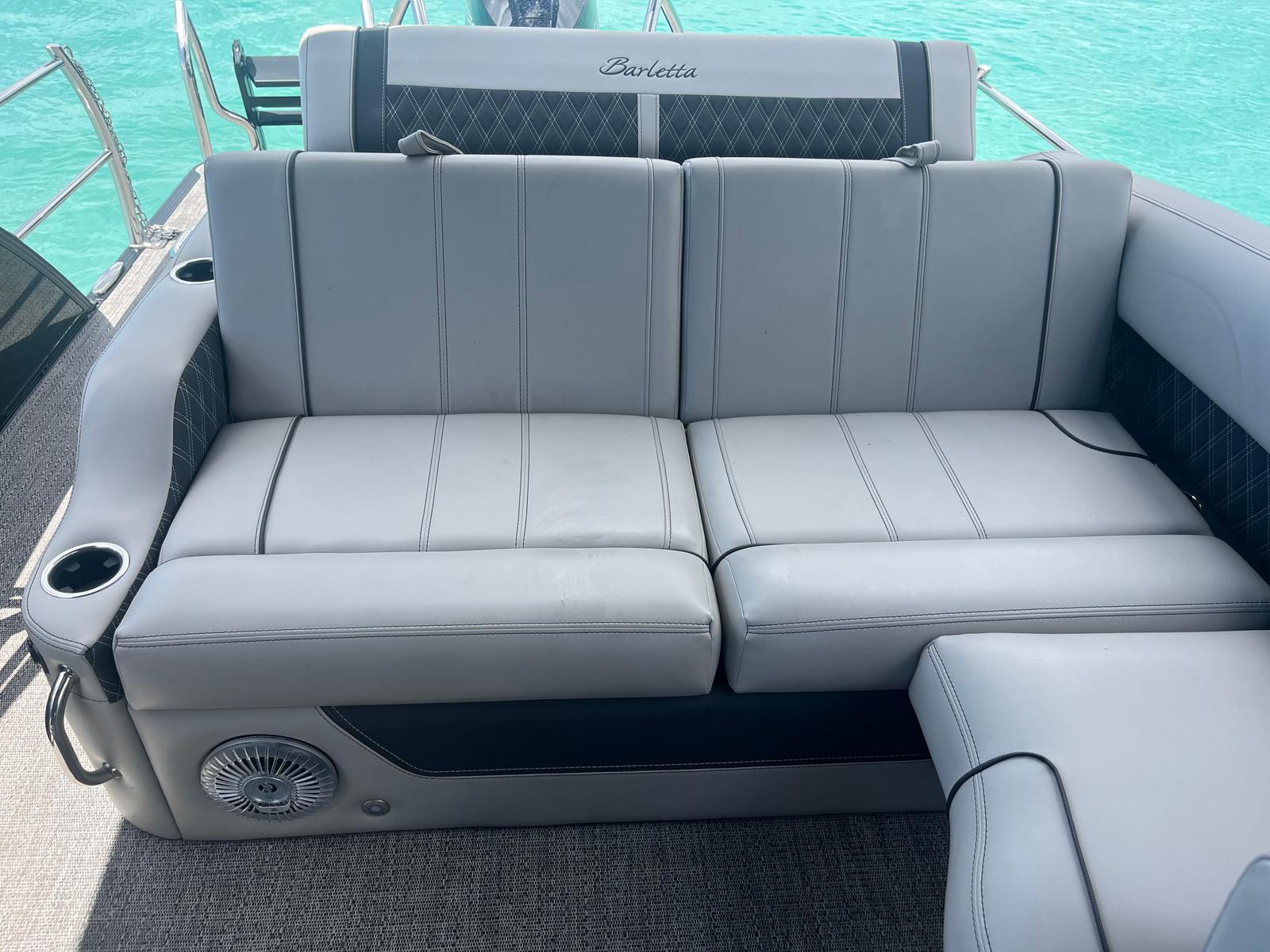 This Barletta boat for sale is packed with premium features designed to enhance comfort, convenience, and style. The Blackout Package Lusso adds a bold, modern touch to the railskin, while the Coastal Edition Lusso ensures durability and resilience in a variety of environments. The double bimini, including an additional power bimini, offers versatile shade options, allowing you to customize your comfort level throughout the day. The Marquesan Gray with Onyx furniture provides plush seating and a refined look, while the Amore Gray flooring is both stylish and easy to maintain. Every detail of the Lusso L23U is crafted to deliver a first-class boating experience.