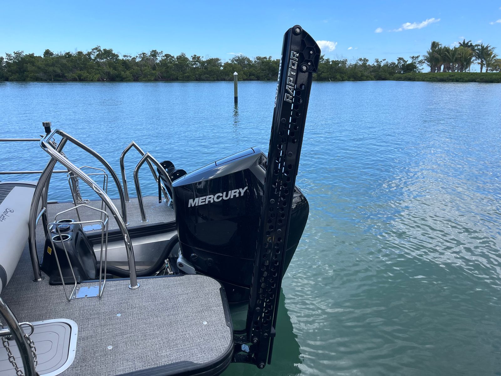 Power and precision come together in the Barletta Lusso L23U, thanks to its robust Mercury (D) 350L V10 Verado engine. With a commanding 350 horsepower at your fingertips, this pontoon delivers exhilarating acceleration and smooth cruising, making it ideal for a variety of water activities. The Mercury Digital Pre-Rig for V10 and the expertly rigged engine with V10 prop ensure optimal performance, responsiveness, and efficiency. Whether you are gliding across calm waters or picking up speed for watersports, the Lusso L23U’s advanced propulsion system provides a seamless and enjoyable ride.