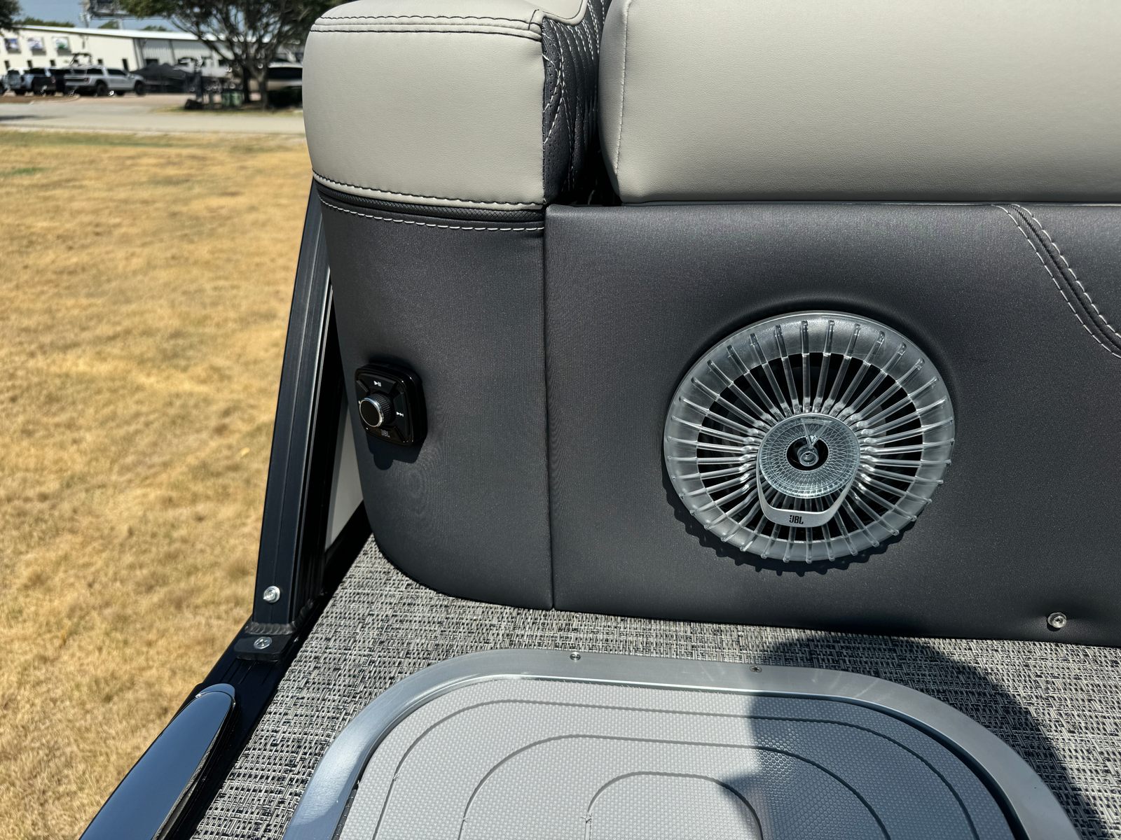 The Barletta Lusso L23UA is packed with special features designed to enhance your time on the water. The Metal Jacket Protectant safeguards your investment, preserving the boat’s pristine appearance for years to come. Exterior lighting, including white underdeck and underwater lights, not only adds a touch of elegance but also improves visibility and ambiance during evening cruises. The thoughtfully selected furniture in Marquesan Gray with Charcoal Accent offers plush seating and ergonomic support, while the Amore Gray flooring provides a stylish, slip-resistant surface that is both attractive and practical. The Blackout Package Lusso Railskin further elevates the boat’s aesthetic, creating a cohesive and upscale look that is sure to impress.