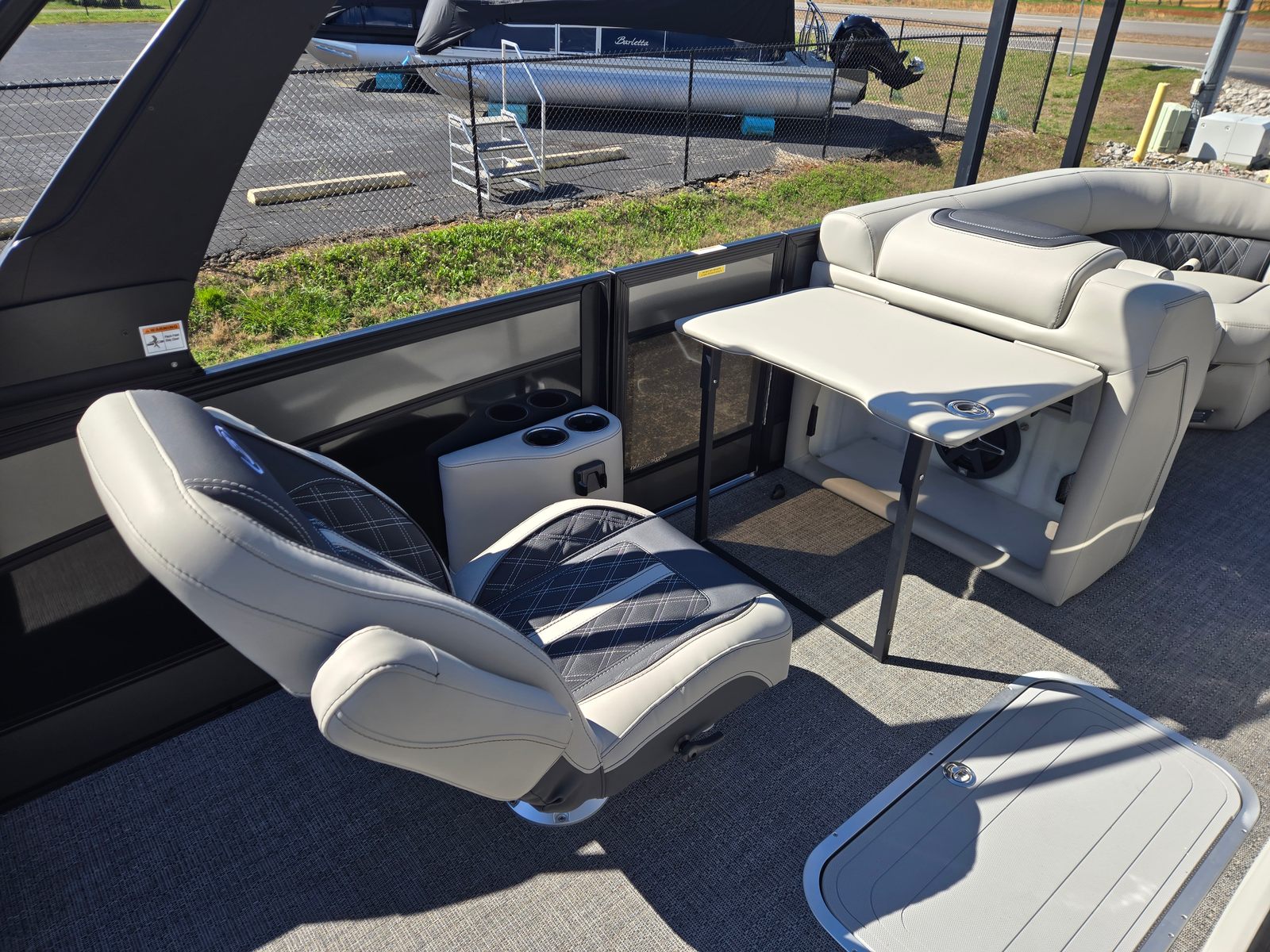 The 2026 Barletta Lusso L23UC is loaded with premium features that elevate your boating experience. The exterior boasts a sophisticated Sweep Color in Gray Moonstone, complemented by a striking Black Diamond accent color. The Blackout Package Lusso railskin adds a touch of modern elegance, while the Marquesan Gray furniture with Onyx accents creates a refined and inviting interior. The Amore Gray flooring is both stylish and durable, providing a comfortable surface underfoot.For those who appreciate advanced technology, the Lusso L23UC comes equipped with digital gauges for easy monitoring of vital stats. The Mercury Digital DTS Pre-Rig and Vessel Link system ensure seamless integration with the engine, offering real-time data and effortless control. The Sport Bimini, installed in place of the standard bimini, provides ample shade and protection from the sun, allowing you to enjoy long days on the water in comfort. Exterior lighting, including white underdeck and underwater lights, adds a touch of ambiance and enhances visibility during evening cruises.