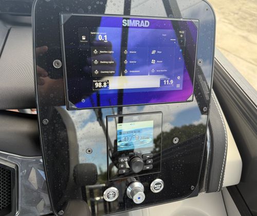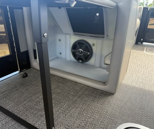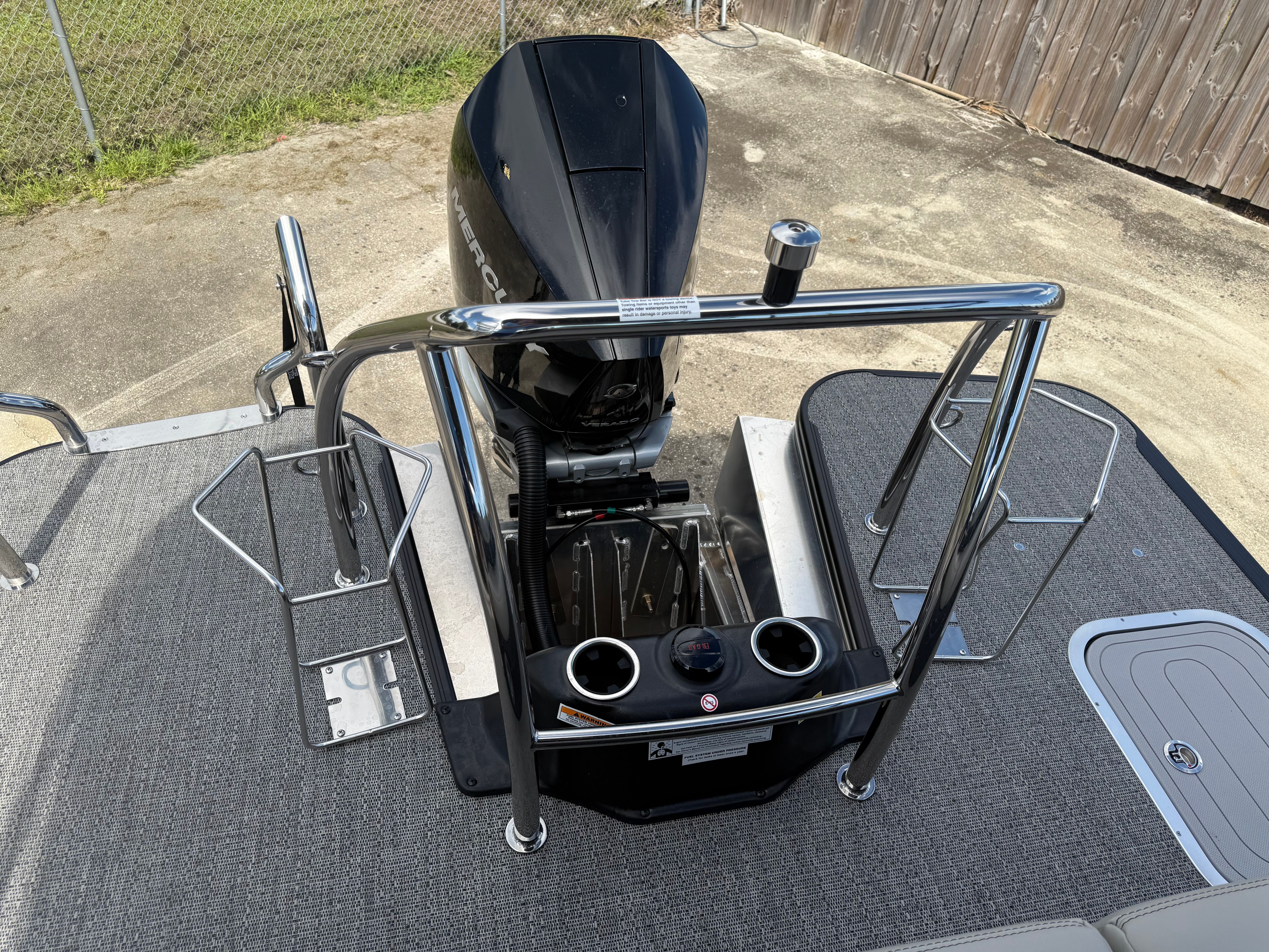 Powering this exceptional pontoon is a single Mercury (D) 300L Verado V8 engine, delivering a robust 300 horsepower for exhilarating acceleration and impressive cruising speeds. The Mercury Digital DTS Pre-Rig for VERADO engines with Vessel Link ensures seamless integration and precise control, while hydraulic and power assist steering make handling effortless, even in challenging conditions. With digital gauges providing real-time performance data, you’ll always be in command, whether you’re gliding across calm waters or navigating busy waterways. The rig engine features a stainless steel prop, optimizing efficiency and durability for long-lasting enjoyment.