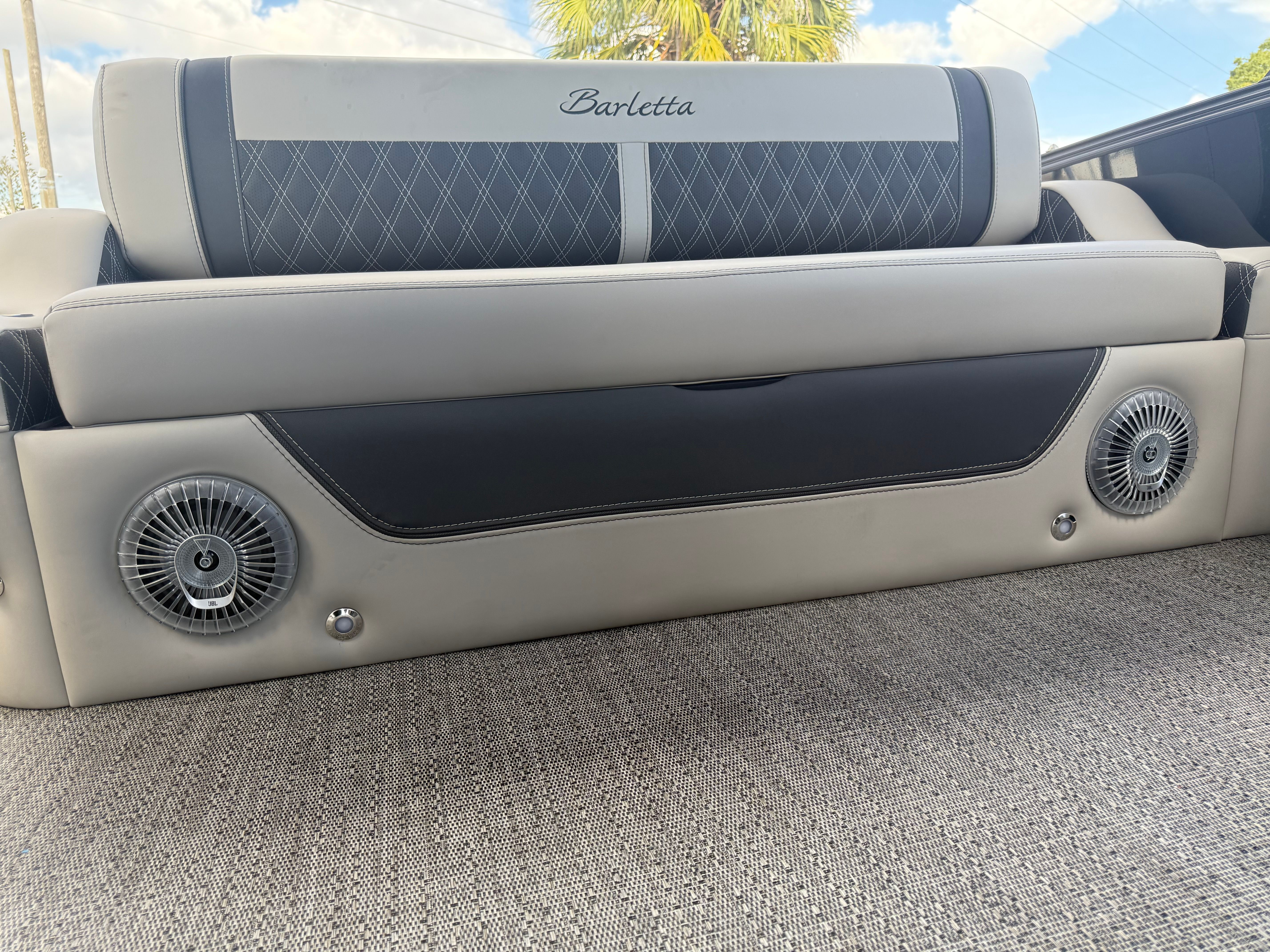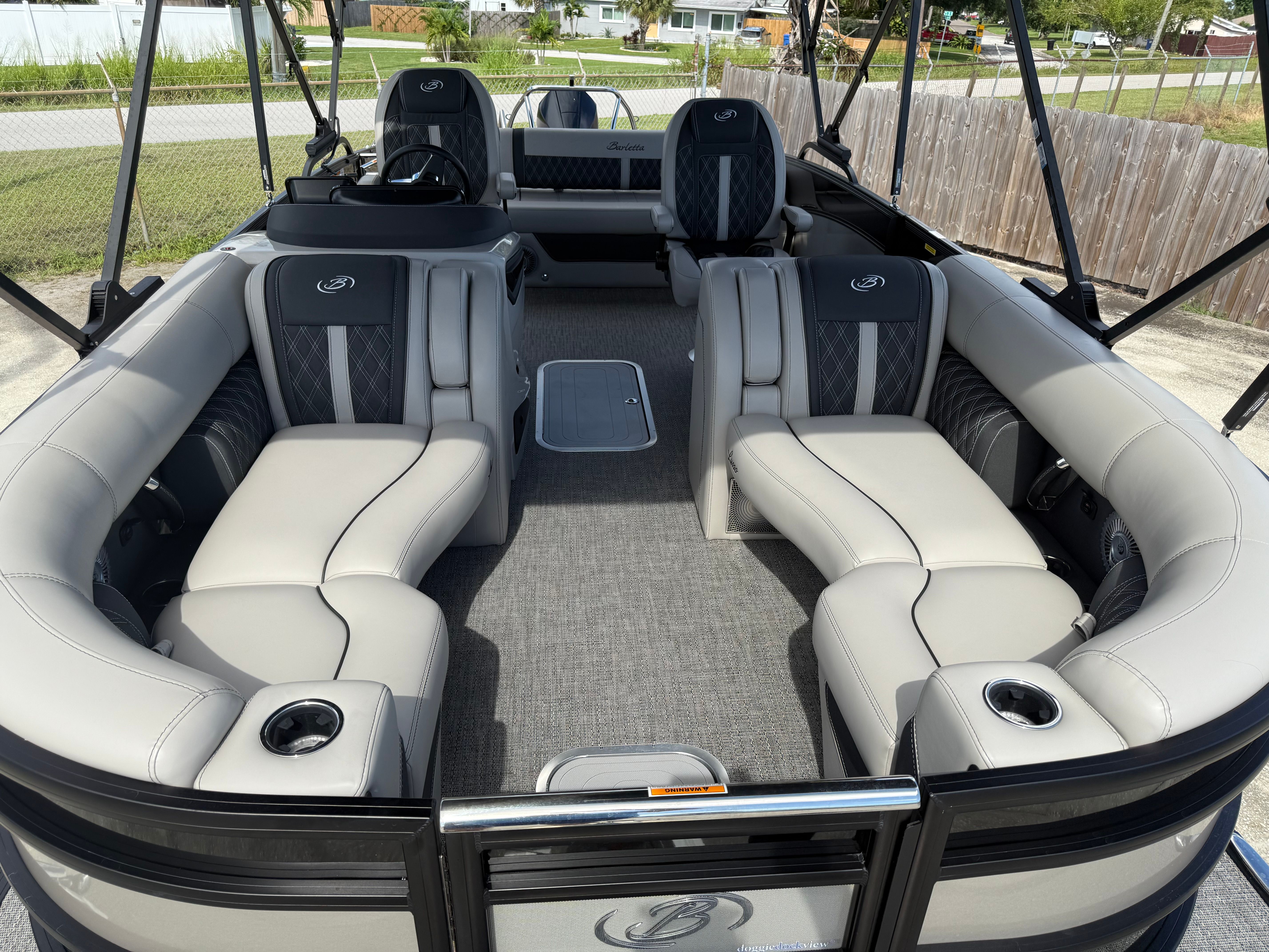 In summary, the 2026 Barletta Lusso L23UC Pontoon is a standout option for anyone seeking a pontoon boat for sale that delivers on every front. With its powerful Mercury Verado V8 engine, advanced steering and digital systems, luxurious Marquesan Gray/Onyx furniture, Amore Gray flooring, and exclusive Coastal Edition Lusso features, this Barletta boat for sale offers an unparalleled boating experience. The striking Black Diamond and Champagne color scheme, Blackout Package Lusso, and double bimini setup further enhance its appeal, making it a true masterpiece on the water.Don’t miss your chance to own this exceptional pontoon boat. Experience the perfect blend of luxury, performance, and versatility with the Barletta Lusso L23UC. Contact your local dealer today to learn more and take the first step toward unforgettable adventures on the water.