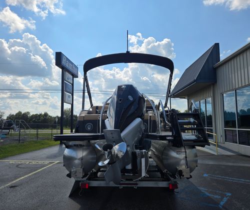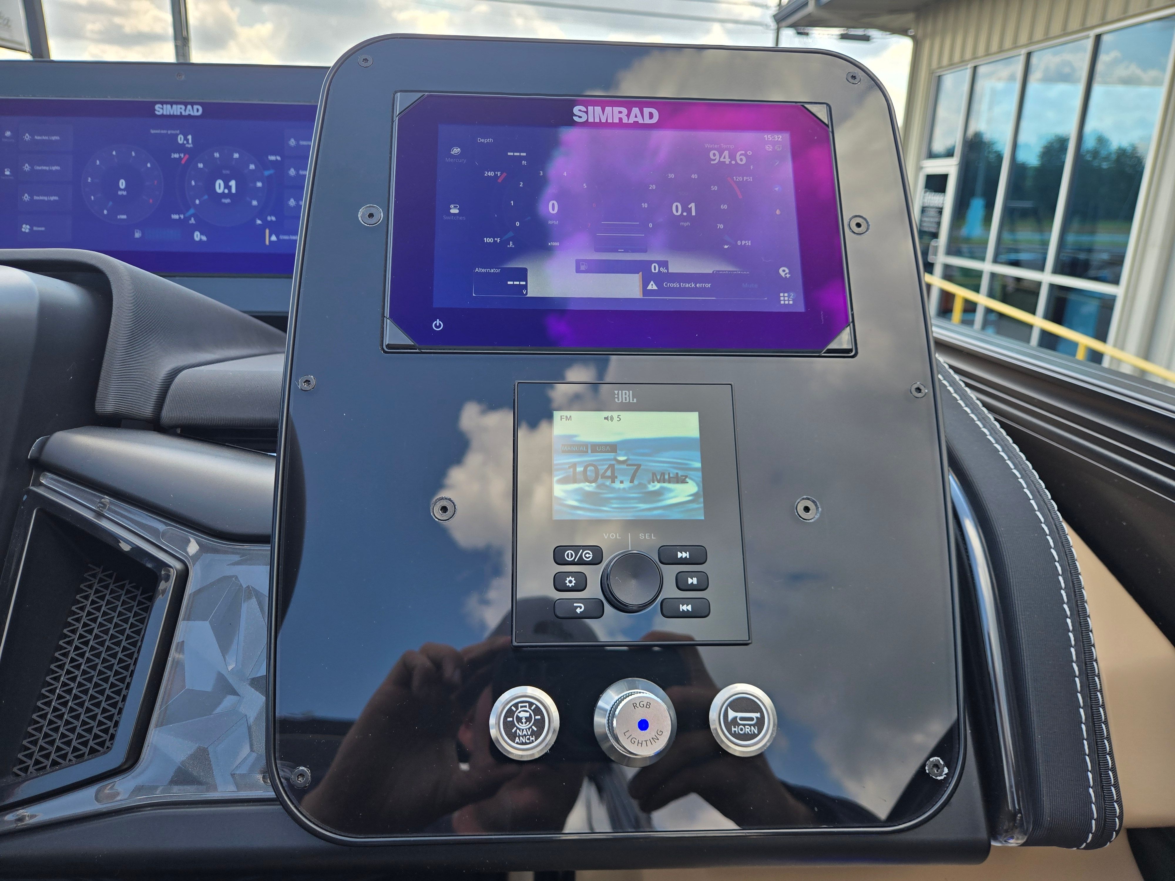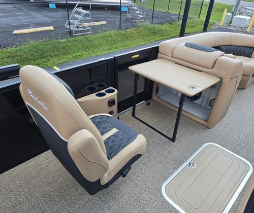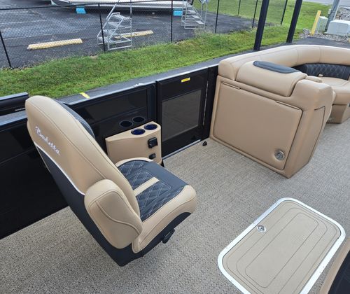 The 2026 Barletta Lusso L23UC is loaded with features designed to enhance your time on the water. The Blackout Package Lusso Railskin gives the exterior a bold, modern look, while the Black Diamond color scheme adds a touch of sophistication. Inside, the Carmella Tan with Onyx furniture offers plush seating and ergonomic support, ensuring comfort for all passengers. The Amore Tan flooring is both stylish and practical, providing a non-slip surface that’s easy to maintain.For those who appreciate advanced technology, the Lusso L23UC comes equipped with Mercury Digital DTS Pre-Rig for VERADO engines with Vessel Link, allowing for intuitive engine management and connectivity. The hydraulic and power assist steering makes docking and navigating tight spaces a breeze, while digital gauges provide clear, accurate information at a glance. Exterior lighting, including white underdeck and underwater lights, not only enhances the boat’s appearance but also improves visibility and safety during evening cruises.