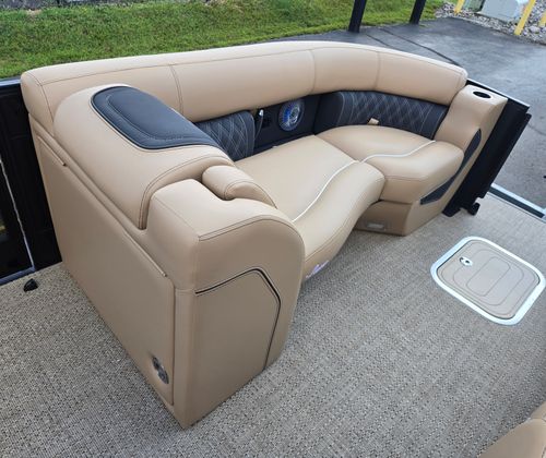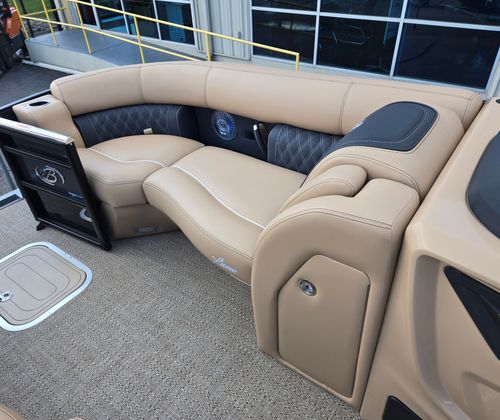 The 2026 Barletta Lusso L23UC stands out with its impressive 25.5-foot length, offering ample space for family, friends, and all your favorite water activities. As a brand-new pontoon boat, it showcases Barletta’s commitment to quality craftsmanship and attention to detail. The Lusso L23UC is designed to turn heads with its sleek Sweep Color and Accent Color in Black Diamond, complemented by the exclusive Blackout Package Lusso Railskin. The Carmella Tan with Onyx furniture and Amore Tan flooring create a warm, inviting atmosphere that exudes both comfort and style. This Barletta boat for sale is the perfect blend of elegance and functionality, making it a standout choice for those who demand the best.