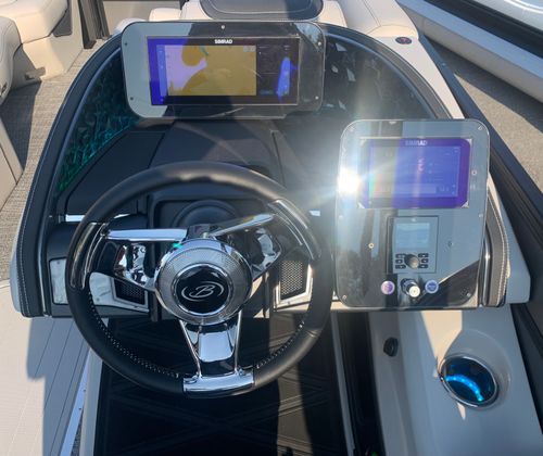Under the deck, the Barletta Lusso L23UC is powered by a single Mercury 300L Verado V8 engine, delivering an impressive 300 horsepower. This setup provides exhilarating acceleration, smooth cruising, and reliable power for all your water activities. The Mercury Digital DTS Pre-Rig for VERADO engines with Vessel Link ensures seamless integration and precise control, while hydraulic and power assist steering make handling effortless, even at higher speeds or in challenging conditions. Whether you’re gliding across calm waters or heading out for a day of watersports, this pontoon’s performance is sure to impress.