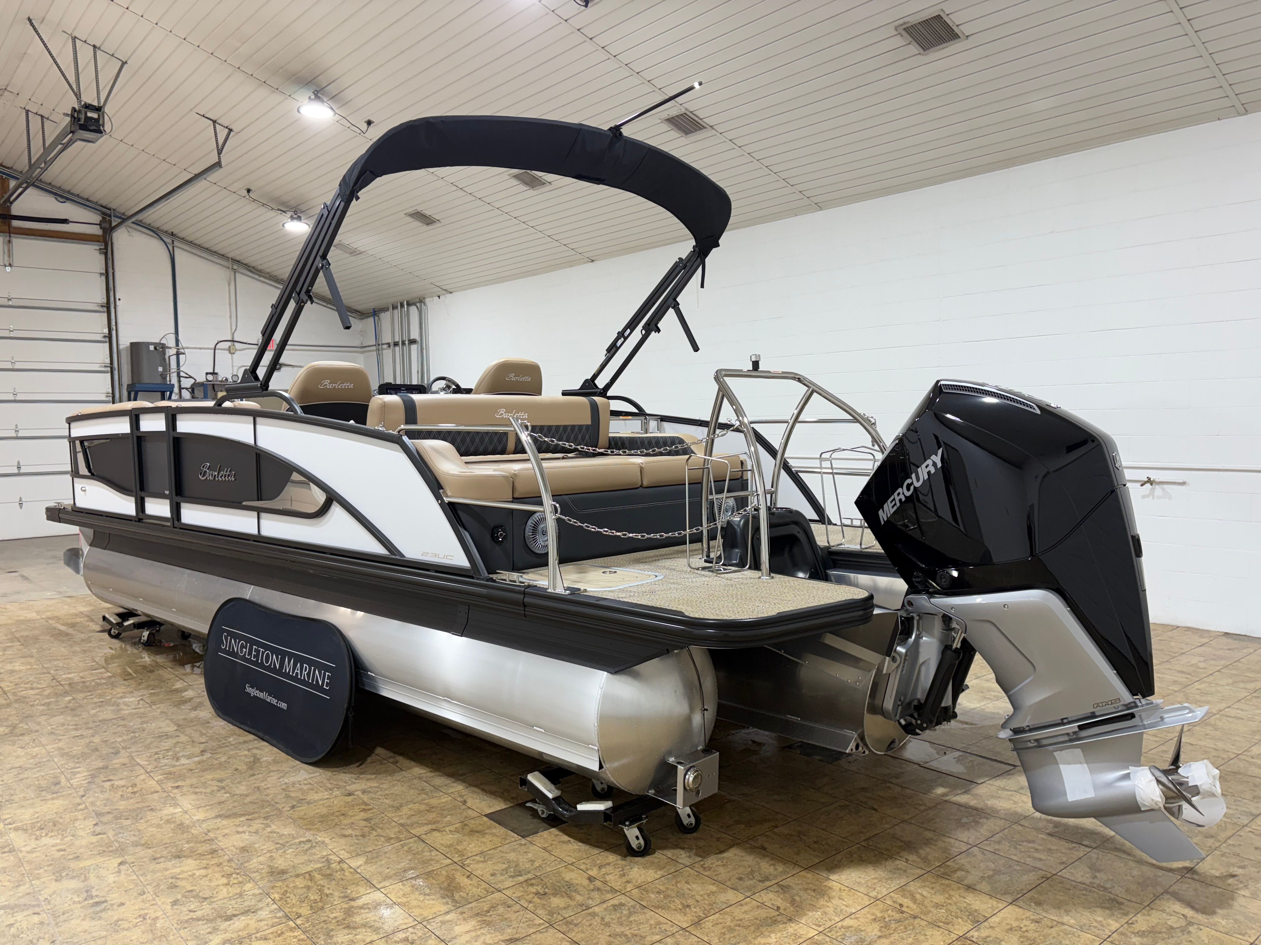 In summary, the 2026 Barletta Lusso L23UC is a premier pontoon boat for sale that combines cutting-edge performance, luxurious comfort, and striking design. With its Mercury 250L Verado V8 engine, advanced steering systems, and a host of premium features—including the Blackout Package Lusso, Carmella Tan with Onyx furniture, Amore Tan flooring, and protective exterior treatments—this Barletta boat for sale stands out as a top choice for discerning boaters. Whether you are looking to entertain, explore, or simply relax, the Lusso L23UC delivers an unparalleled boating experience. Do not miss your chance to own this exceptional pontoon—contact your local dealer today to learn more and start your next adventure on the water.