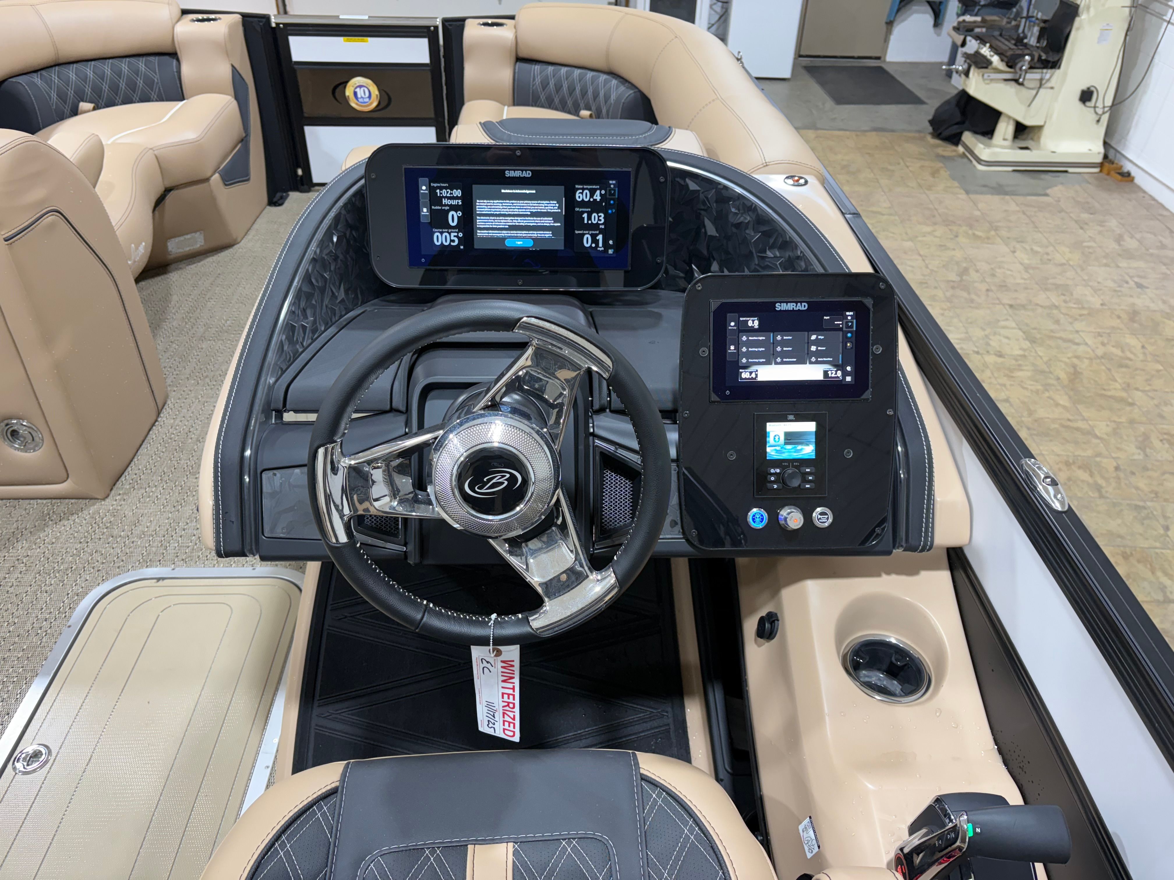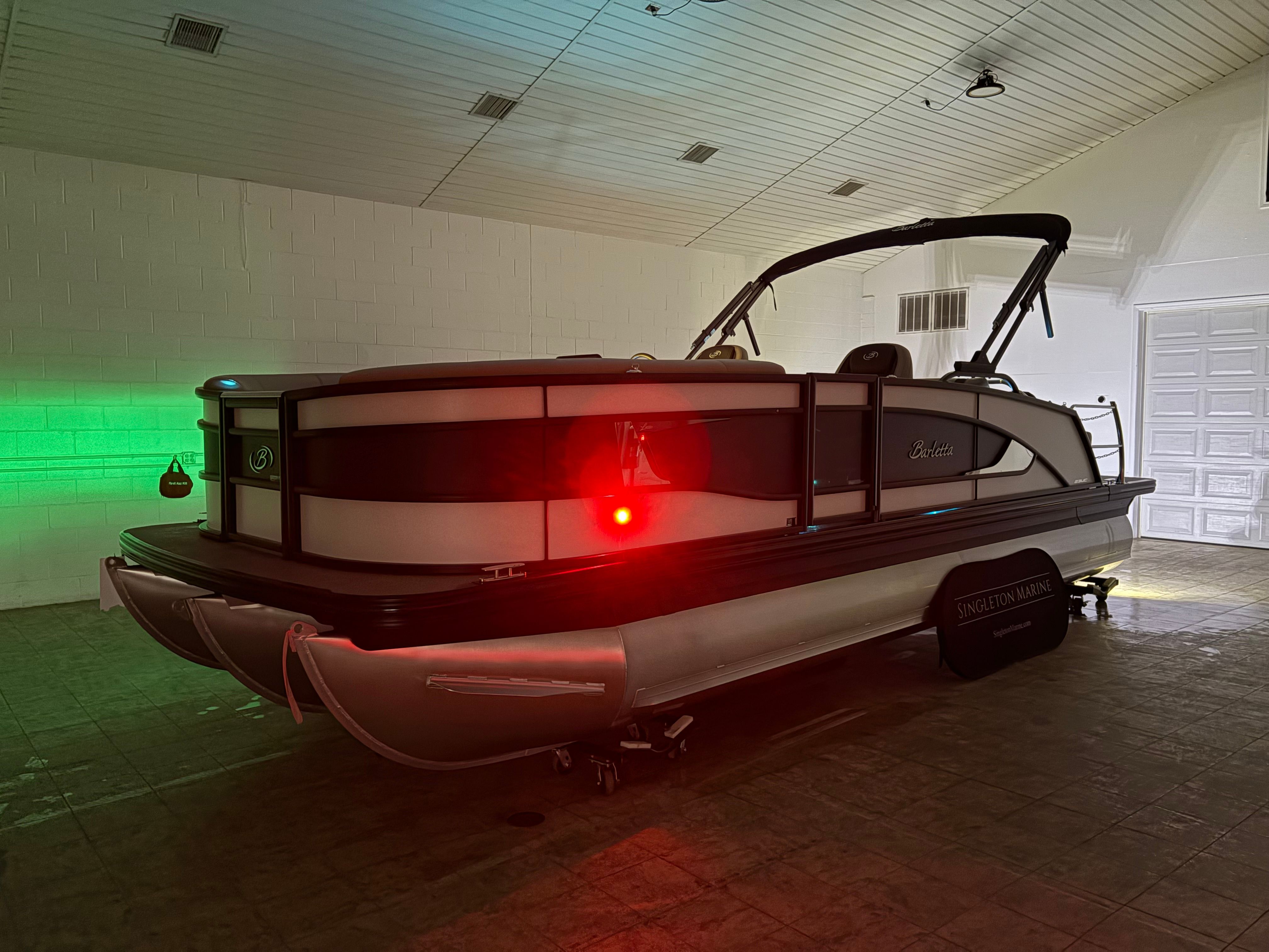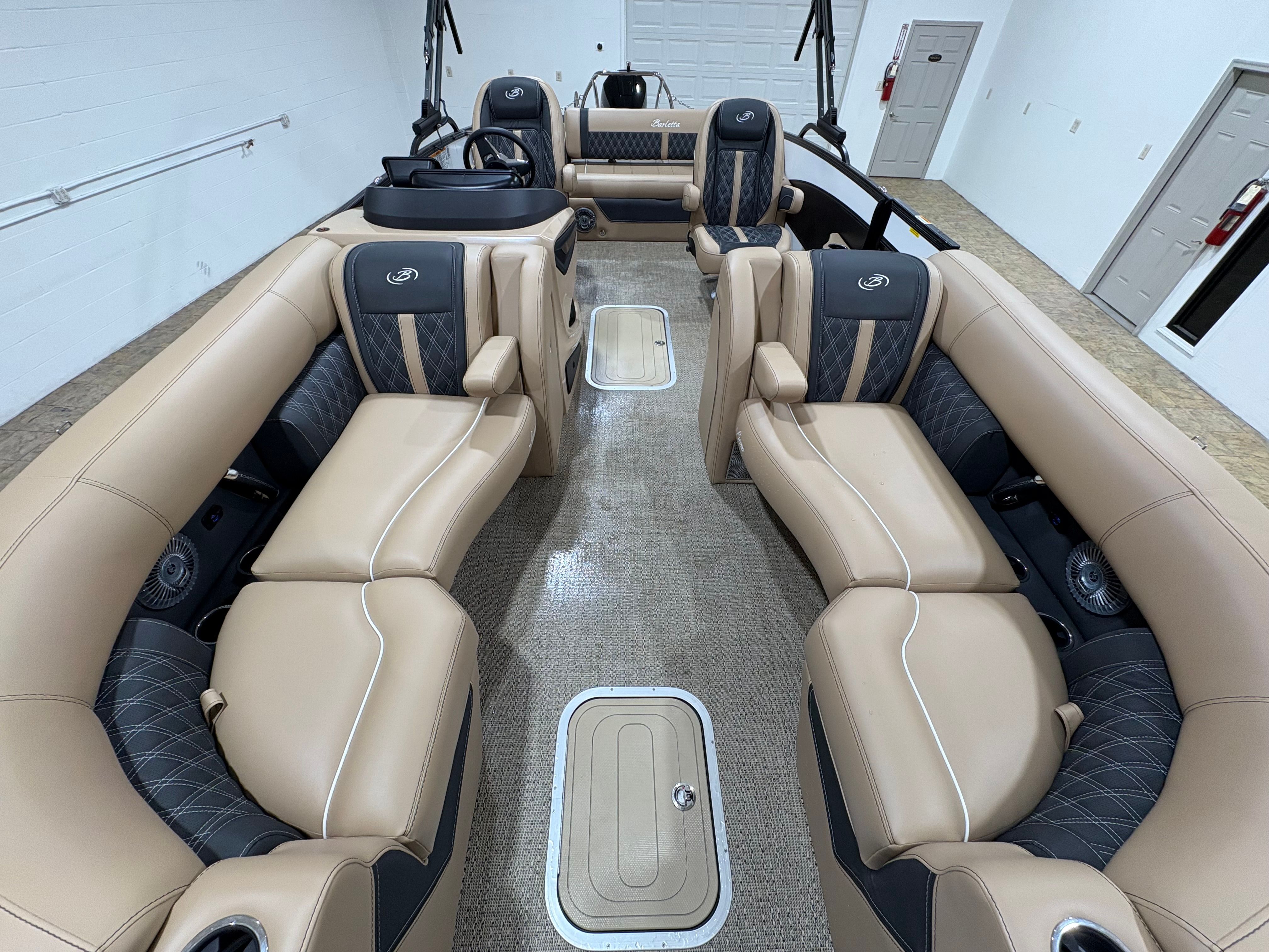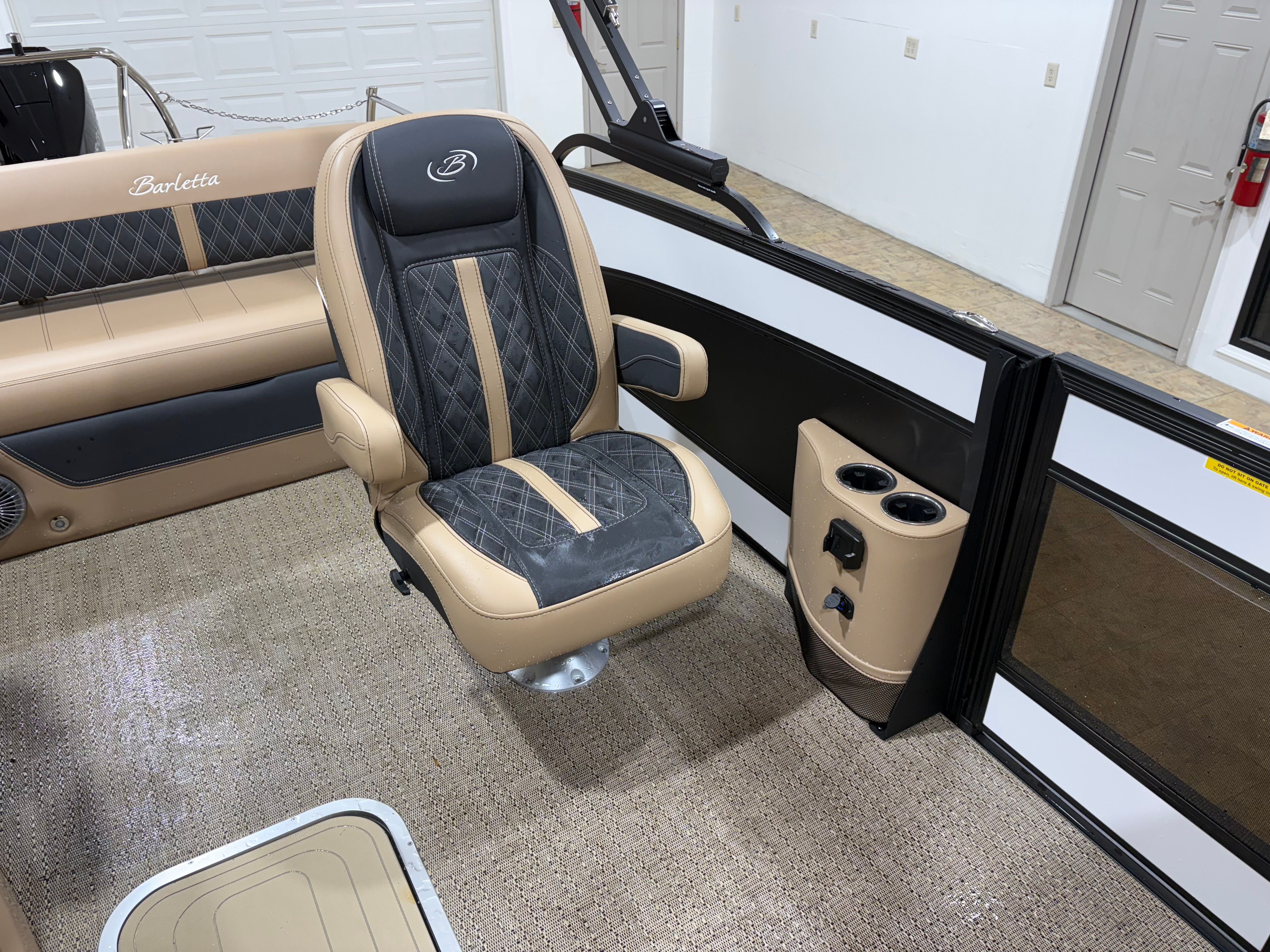 The 2026 Barletta Lusso L23UC is packed with premium features designed to enhance your boating lifestyle. The Blackout Package Lusso, paired with stainless steel safety stanchions and chains, not only adds to the boat’s visual appeal but also provides an extra layer of safety for all passengers. The exterior is protected by a Metal Jacket Protectant, ensuring your investment stays looking pristine season after season. Inside, the Carmella Tan with Onyx furniture offers plush, ergonomic seating, while the Amore Tan flooring is both stylish and easy to maintain. Digital gauges provide clear, real-time information at a glance, keeping you informed and in control at all times. Every element, from the rigging to the steering system, is engineered for maximum reliability and user-friendly operation, making this Barletta boat for sale a standout choice in its class.