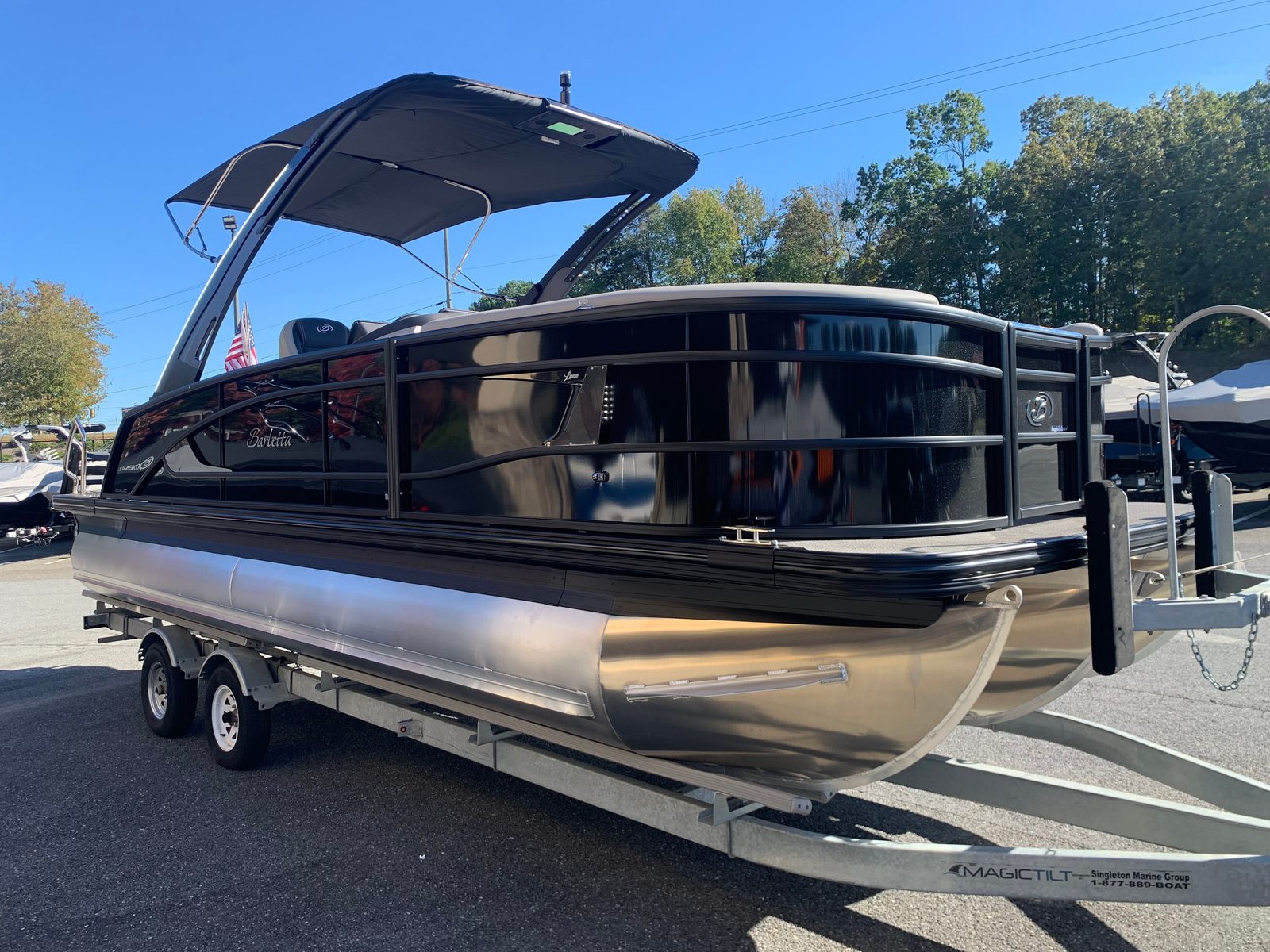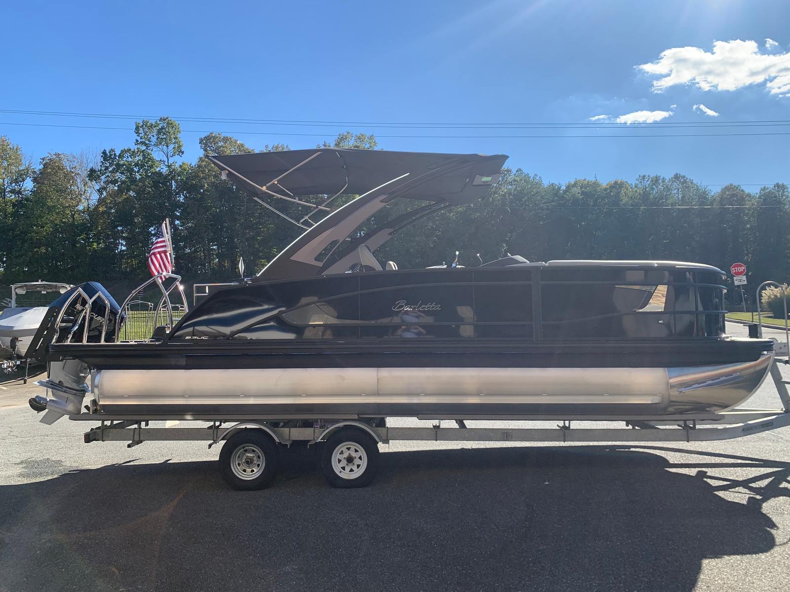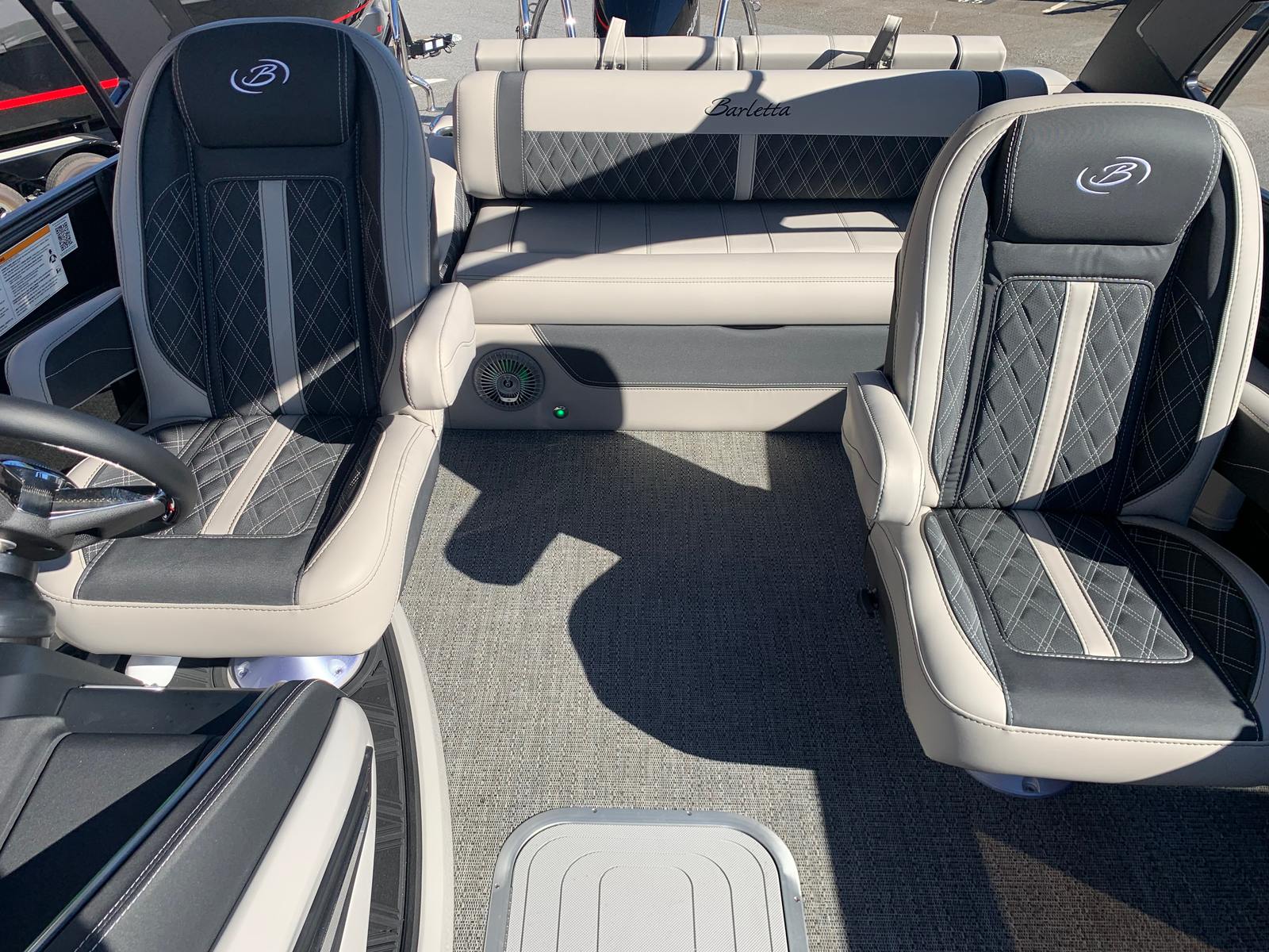 The Barletta Lusso L23UCA is a 25.5-foot pontoon boat that exudes sophistication and comfort. Built in 2026, this model showcases the latest advancements in pontoon design and technology. With its generous length, the Lusso L23UCA provides ample space for entertaining, relaxing, and enjoying the water in style. The sleek Black Diamond accent and sweep colors, paired with the Blackout Package Lusso railskin, create a bold and elegant exterior that turns heads at every dock and marina. Whether you’re hosting a lively gathering or seeking a peaceful escape, this Barletta boat for sale offers the perfect setting.