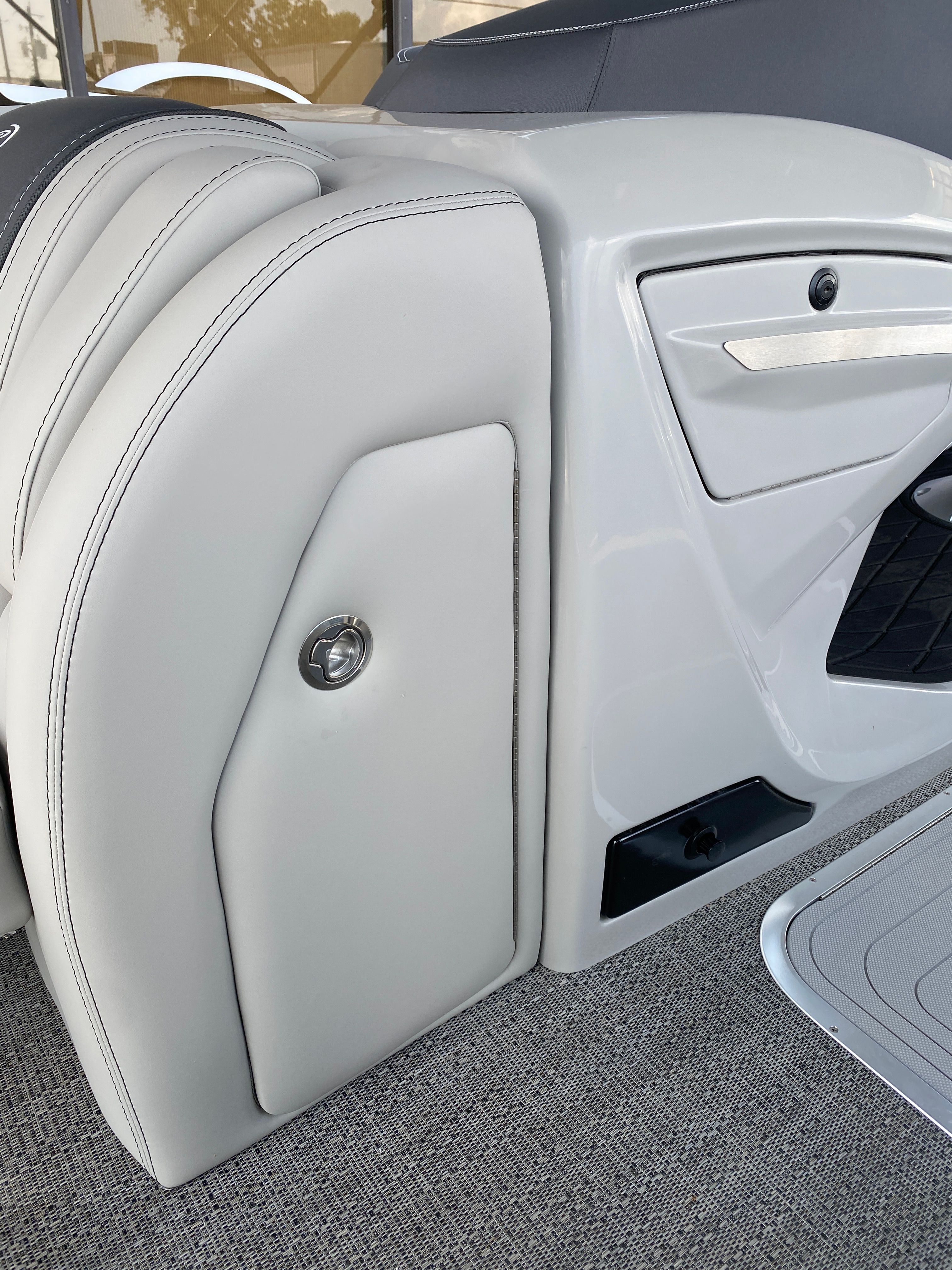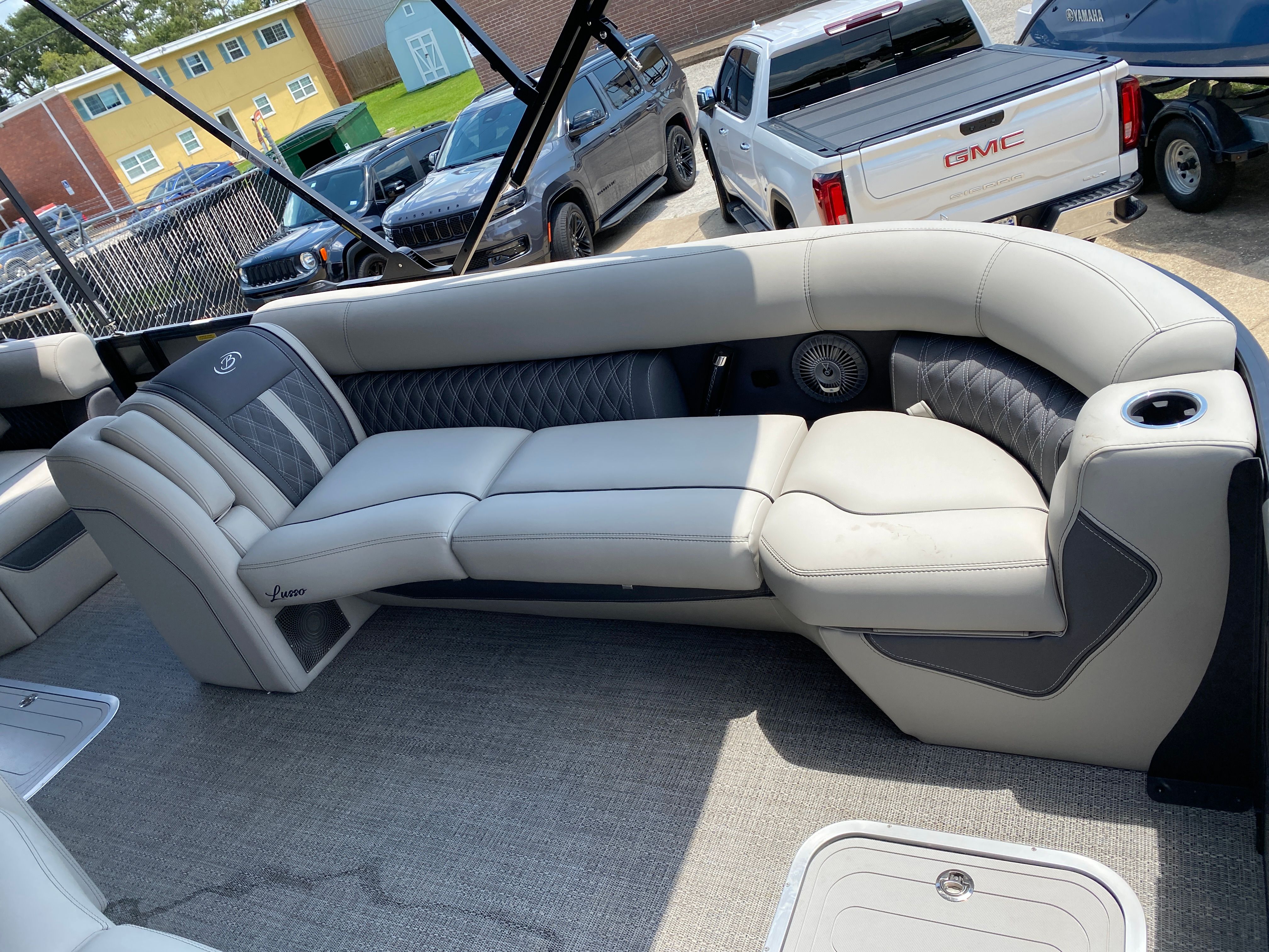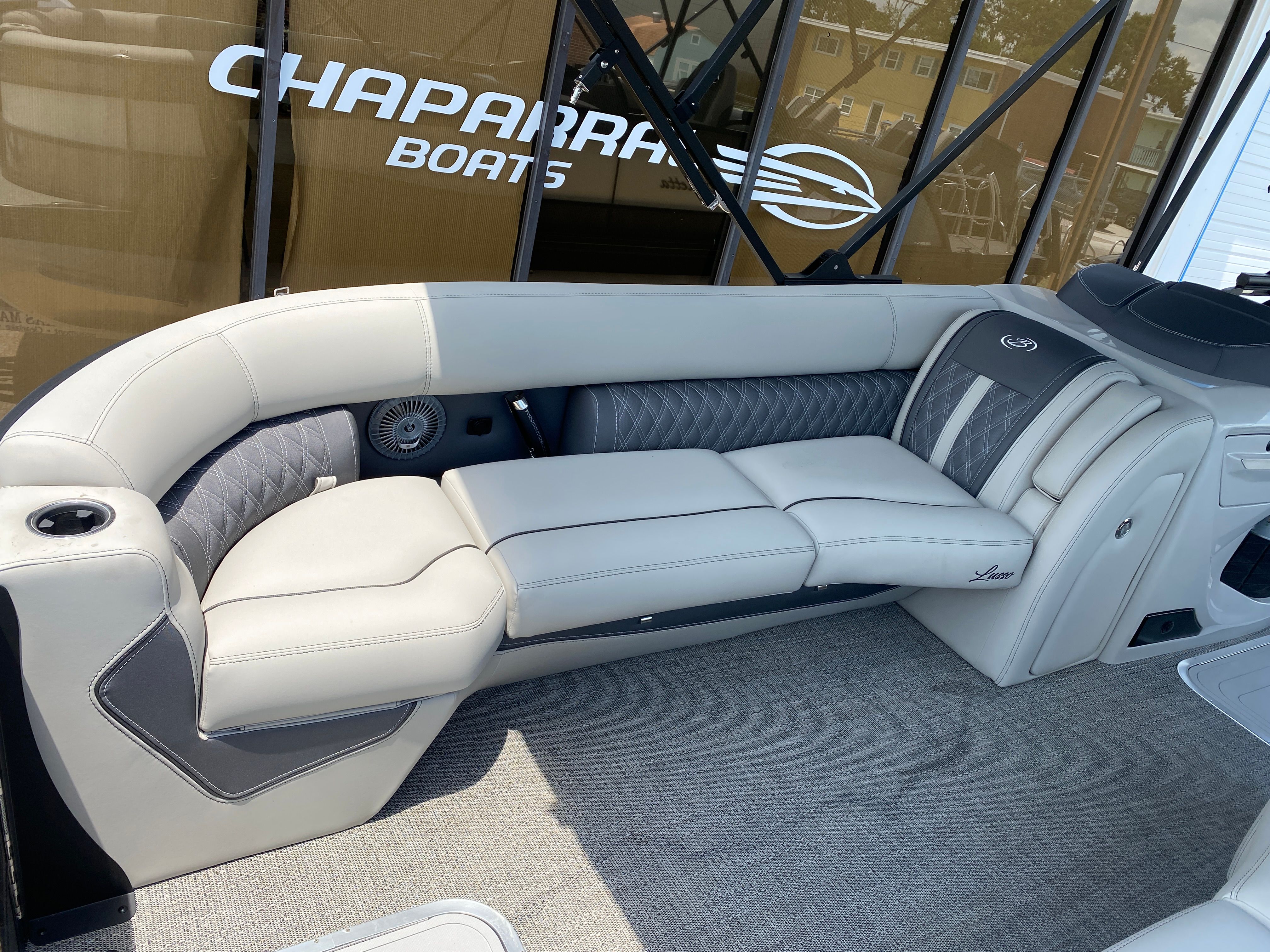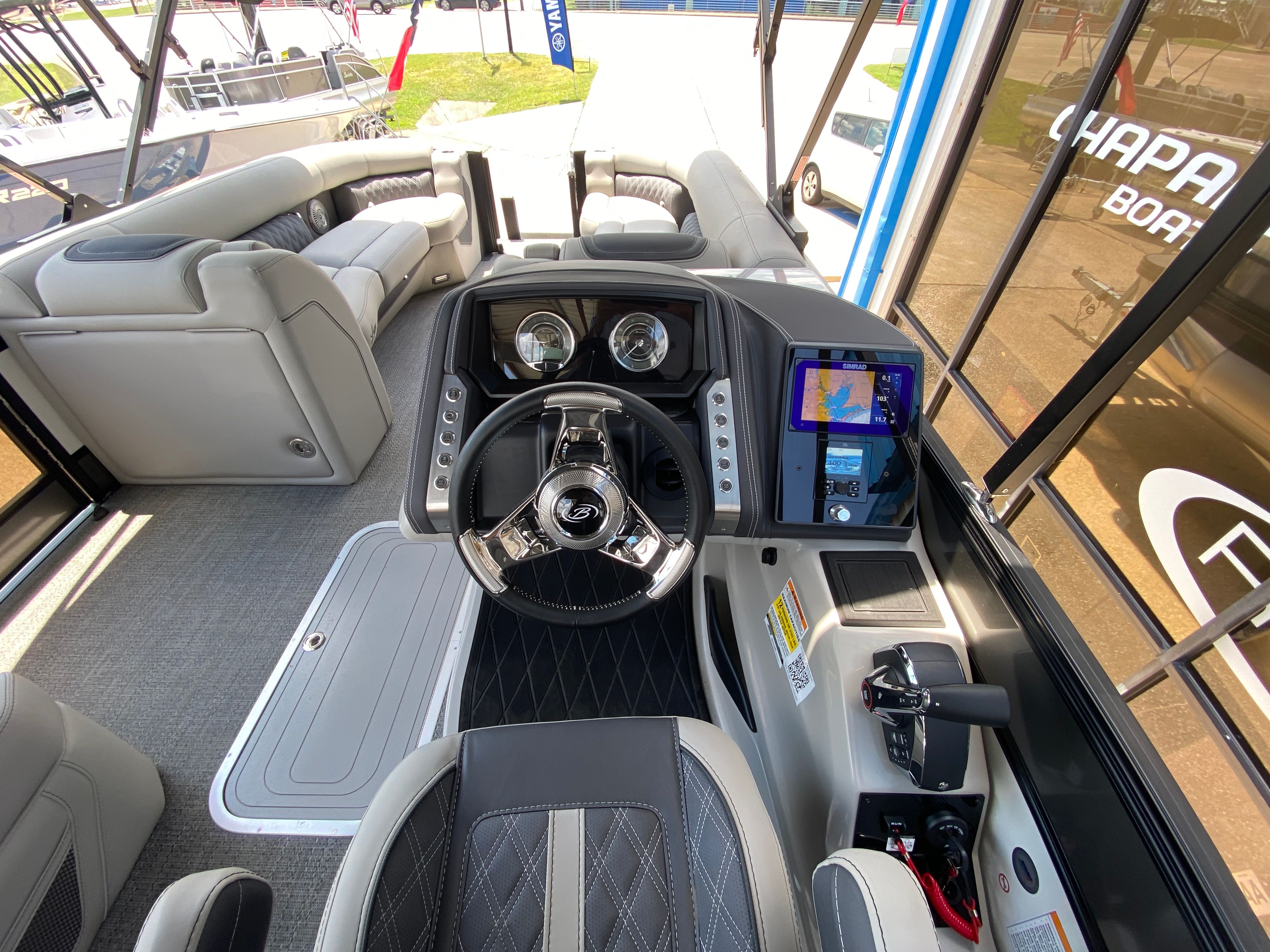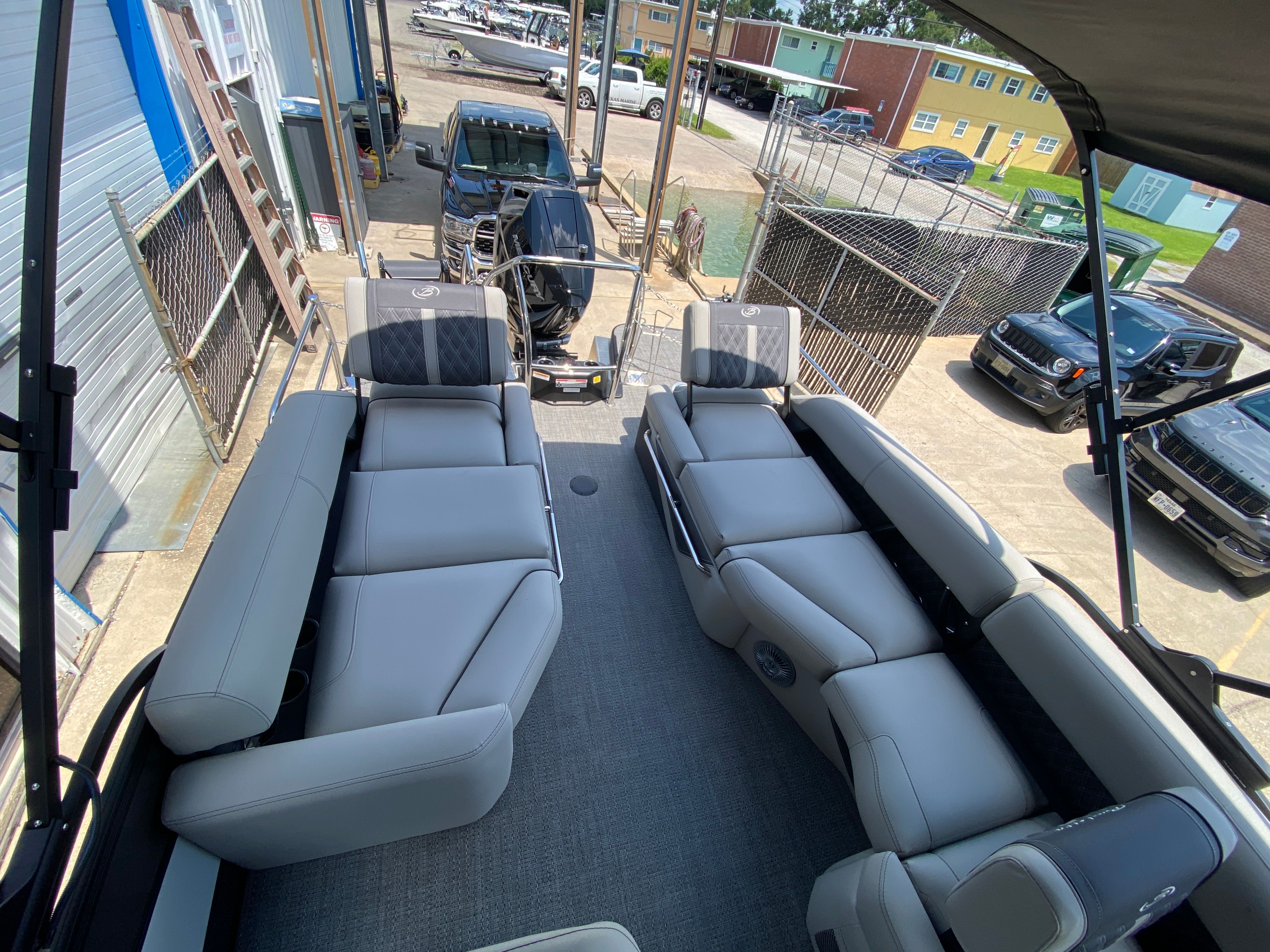 Practicality meets luxury in the Barletta Lusso L25M. The spacious layout makes it easy to store coolers, water toys, and other essentials, keeping the deck clutter-free and organized. The sturdy construction and protective coatings ensure that docking and undocking are hassle-free, while the efficient engine design helps you make the most of every gallon of fuel. The intuitive controls and responsive handling make this pontoon boat a pleasure to operate, whether you are a seasoned captain or a first-time owner.The table with pedestal and Yeti-ready cupholders adds convenience for meals and refreshments, while the ample seating ensures everyone has a comfortable spot to relax. The double bimini offers versatile shade coverage, making it easy to enjoy long days on the water without worrying about sun exposure. The Lusso L25M’s thoughtful design details make ownership easy and enjoyable, so you can focus on making memories with family and friends.