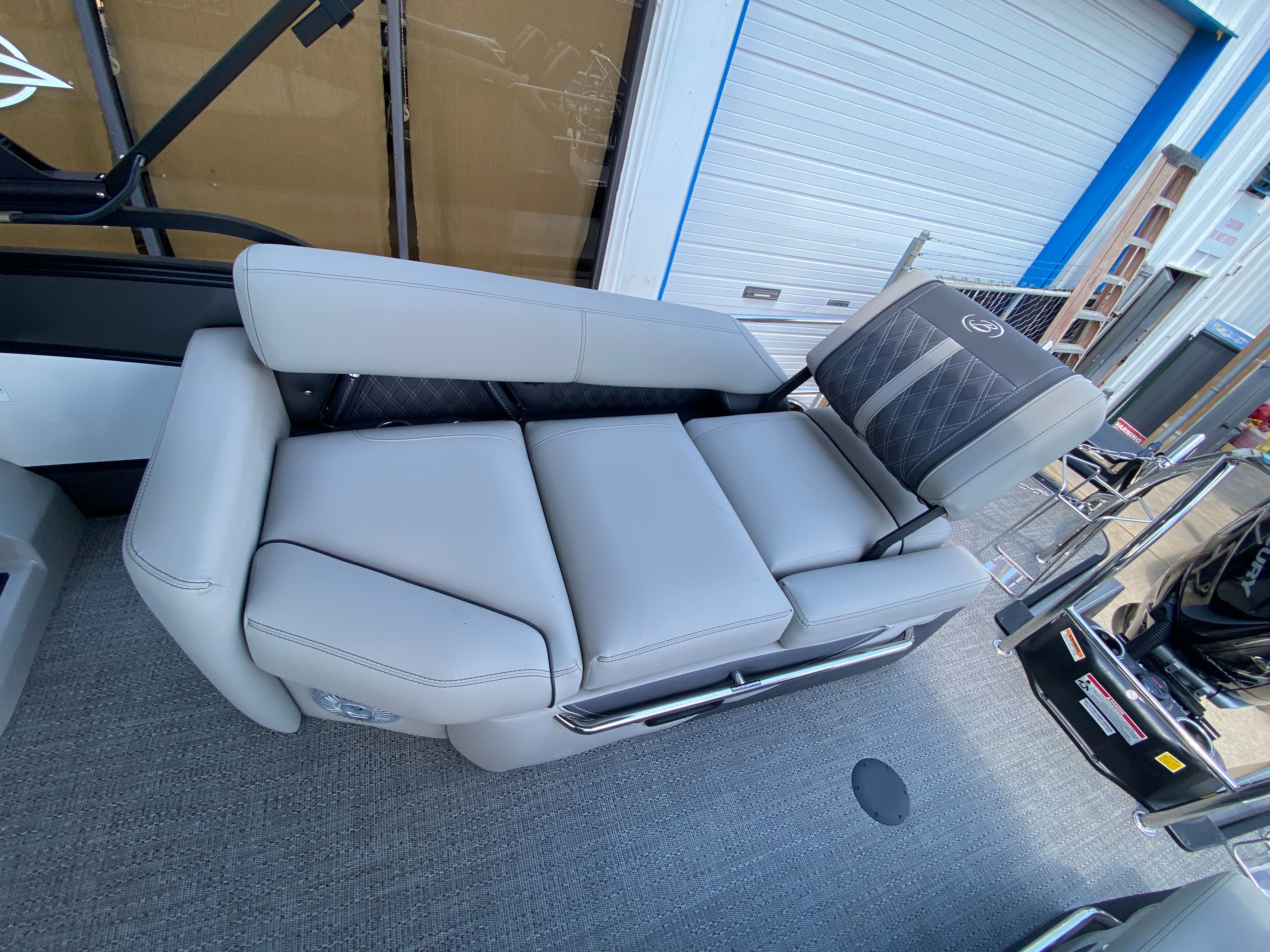 The 2025 Barletta Lusso L25M is packed with special features that elevate your boating experience to new heights. The Marquesan Gray furniture with Charcoal Accent creates a sophisticated and inviting atmosphere, while the Amore Gray flooring adds a touch of elegance and durability underfoot. The double bimini canvas provides generous shade, allowing you and your guests to stay cool and comfortable during sunny days.The exterior is protected by a Metal Jacket Protectant, ensuring your pontoon maintains its pristine appearance season after season. The striking White Opal accent color and Gray Moonstone sweep color enhance the boat’s visual appeal, making it a true head-turner on the water. For those who love to entertain, the interior features a table with a pedestal and base, complete with Yeti-ready cupholders, perfect for serving snacks and drinks while you cruise.The Lusso L25M also features exterior lighting, including white underdeck and underwater lights, creating a captivating ambiance for evening outings. The Blackout Package Lusso railskin package adds a bold, modern touch, while the expertly rigged engine with a V10 prop ensures peak performance every time you set out.