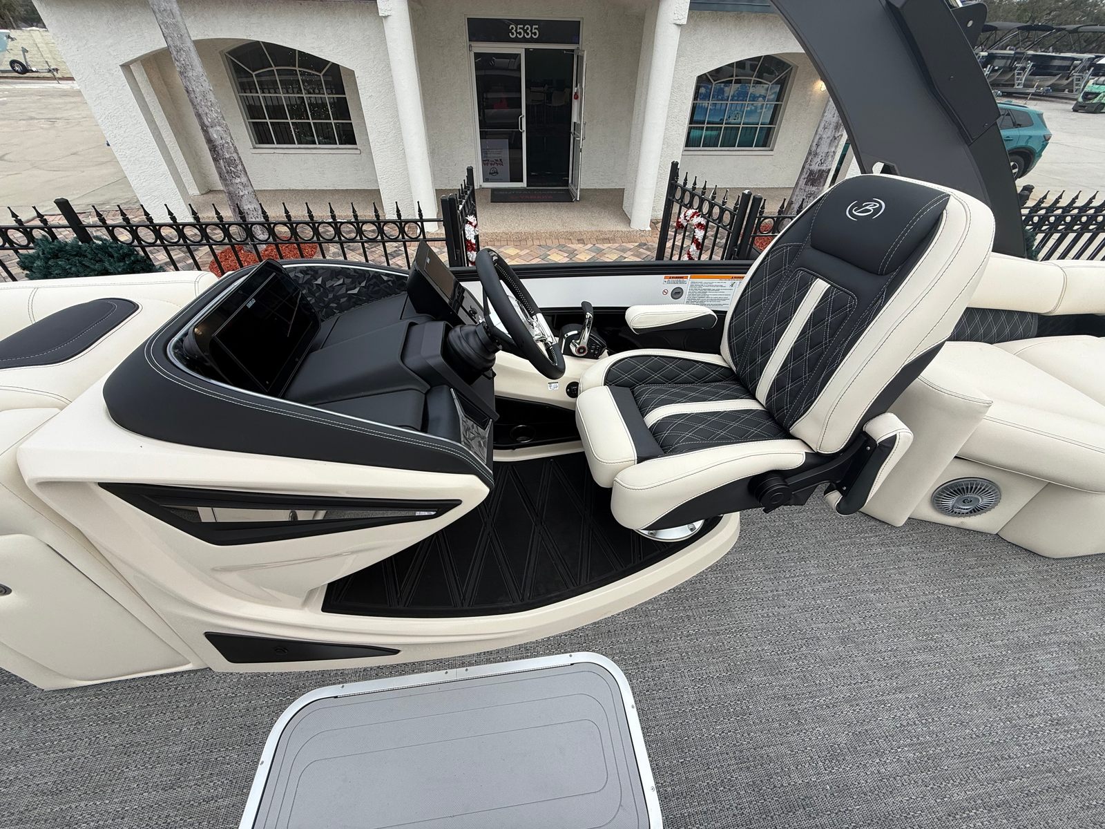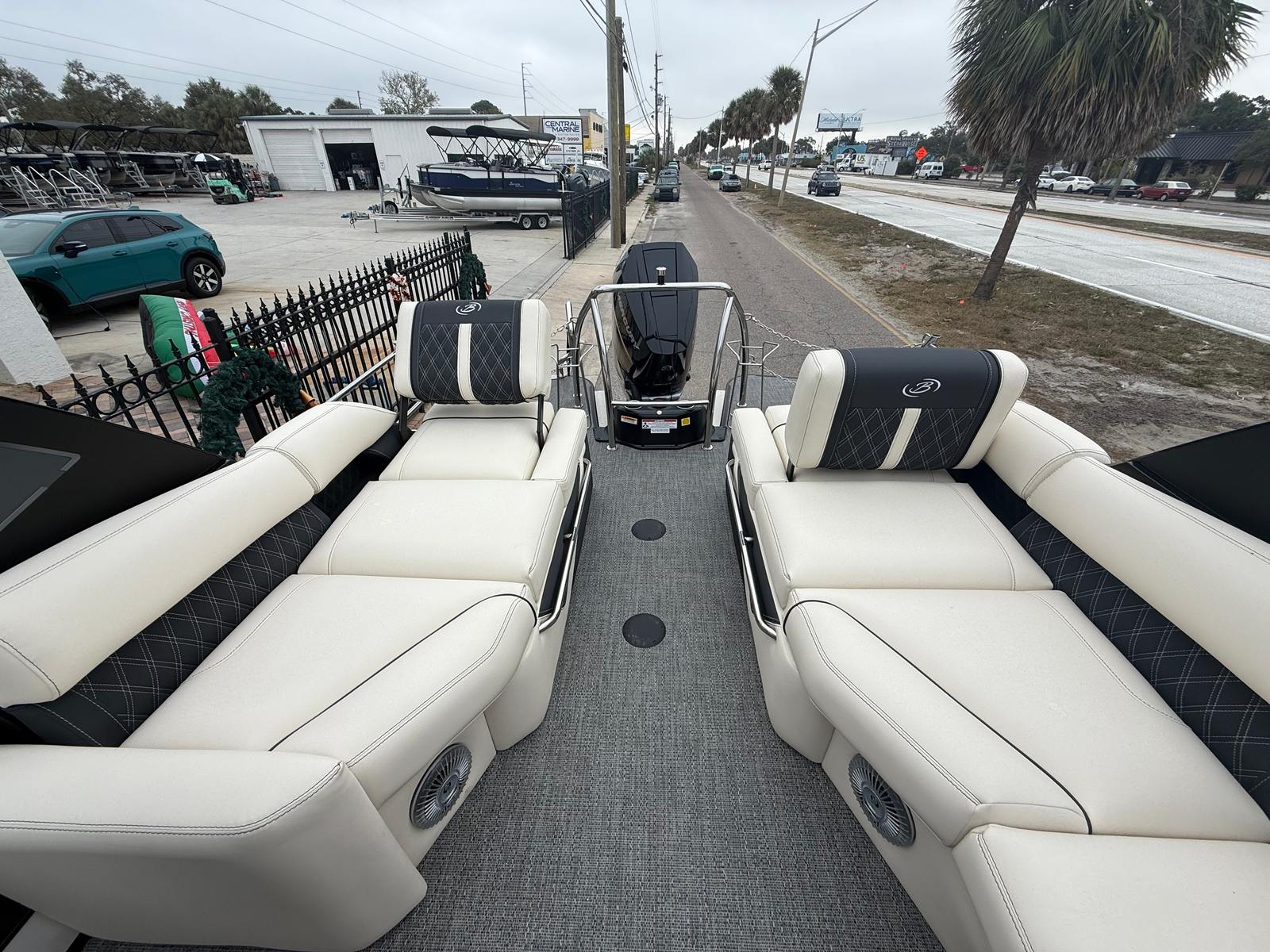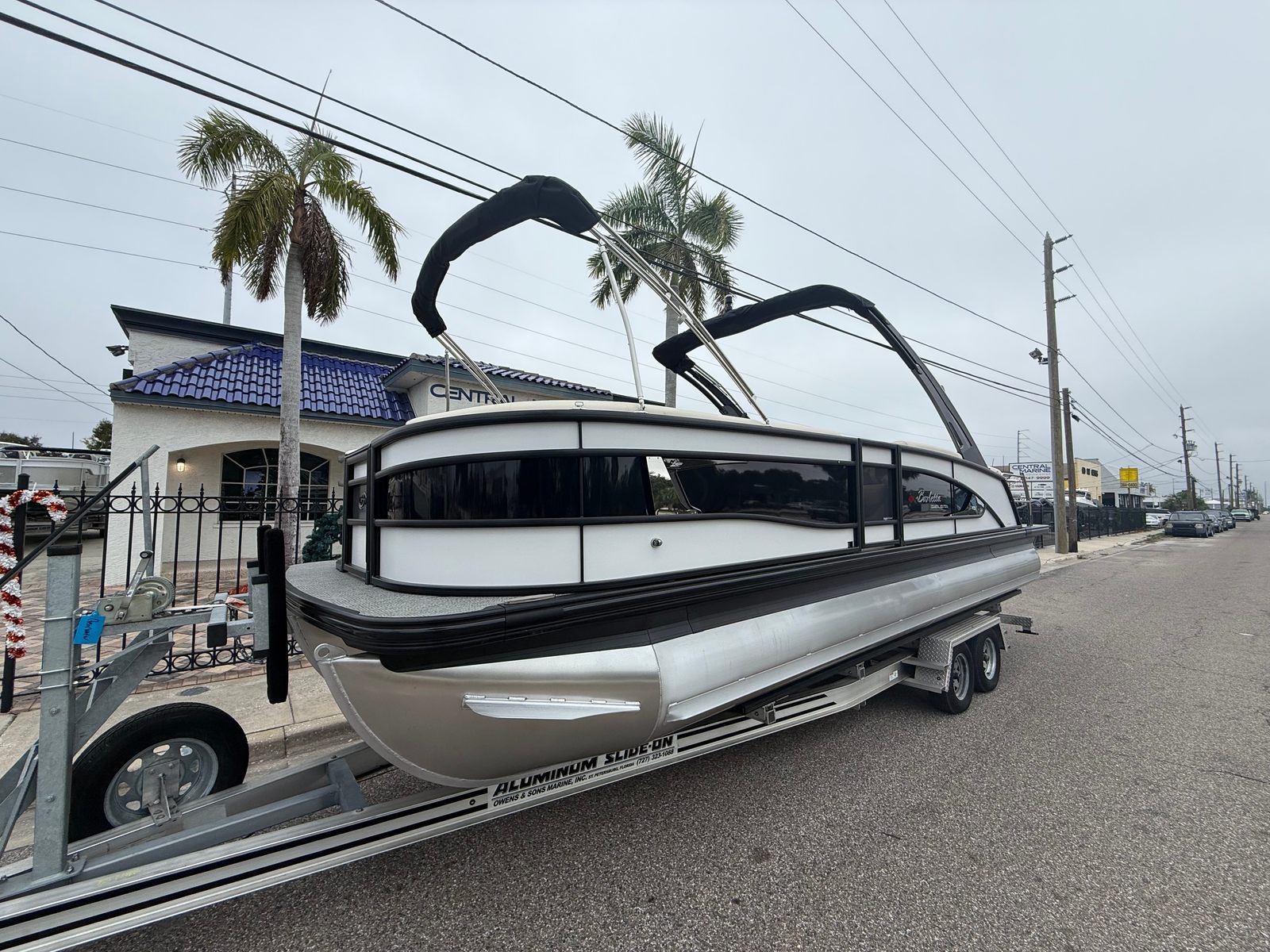 Step aboard and immerse yourself in the luxurious features that set the Barletta Lusso L25MA apart. The exterior boasts a striking Sweep Color in Winter White, complemented by the sophisticated Accent Color: Black Diamond. The Blackout Package Lusso adds a touch of elegance and modernity, ensuring you turn heads wherever you go. Inside, the furniture is upholstered in Linen with Onyx accents, creating a refined and inviting atmosphere. The flooring in Amore Gray is both stylish and practical, providing comfort underfoot and easy maintenance.The Coastal Edition Lusso enhances the boat’s durability and appeal, making it ideal for a variety of environments. The Double Bimini Arch Models offer versatile shade options, allowing you to enjoy sunny days or seek shelter when needed. Every detail is thoughtfully designed to maximize comfort, convenience, and enjoyment.