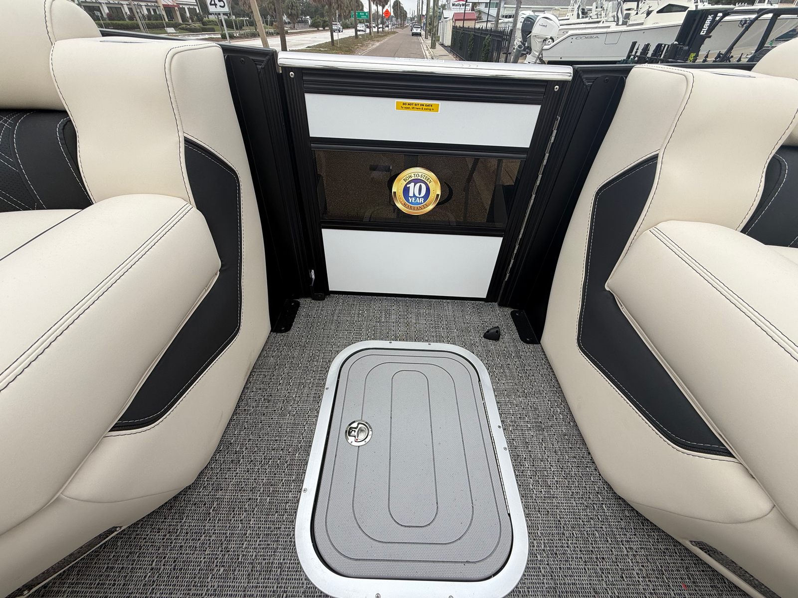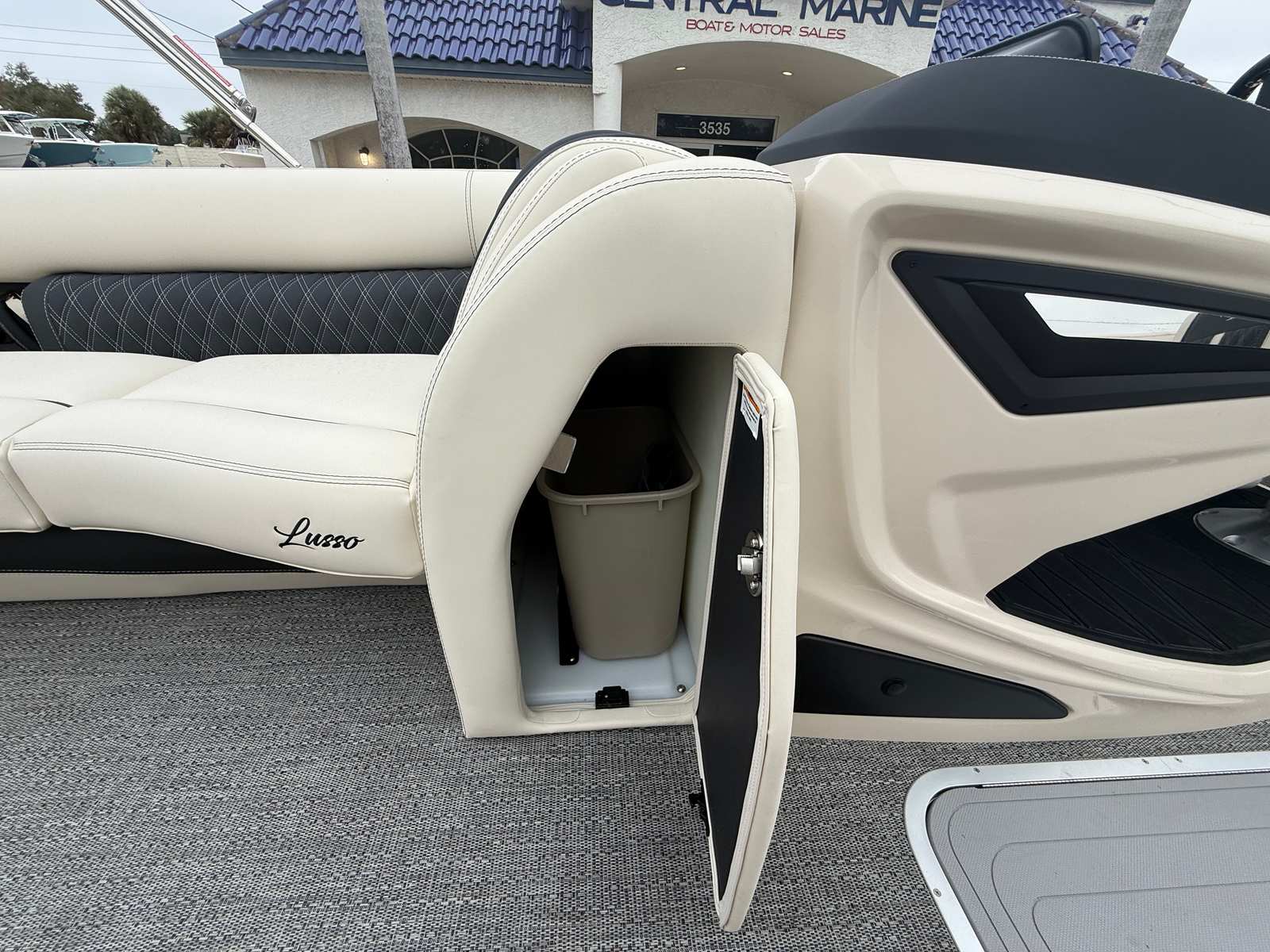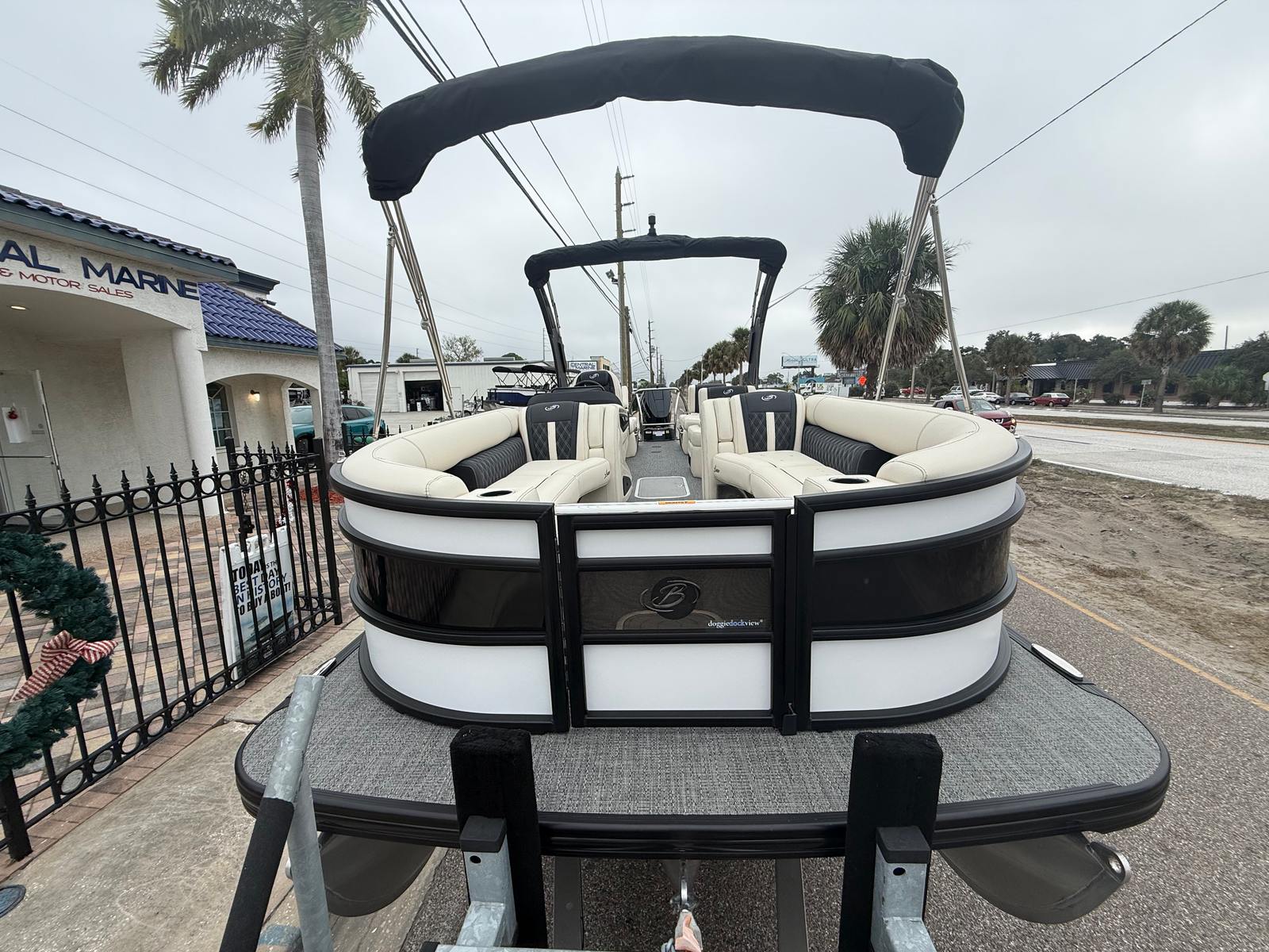 Step aboard and immerse yourself in the luxurious features that set the Barletta Lusso L25MA apart. The exterior boasts a striking Sweep Color in Winter White, complemented by the sophisticated Accent Color: Black Diamond. The Blackout Package Lusso adds a touch of elegance and modernity, ensuring you turn heads wherever you go. Inside, the furniture is upholstered in Linen with Onyx accents, creating a refined and inviting atmosphere. The flooring in Amore Gray is both stylish and practical, providing comfort underfoot and easy maintenance.The Coastal Edition Lusso enhances the boat’s durability and appeal, making it ideal for a variety of environments. The Double Bimini Arch Models offer versatile shade options, allowing you to enjoy sunny days or seek shelter when needed. Every detail is thoughtfully designed to maximize comfort, convenience, and enjoyment.