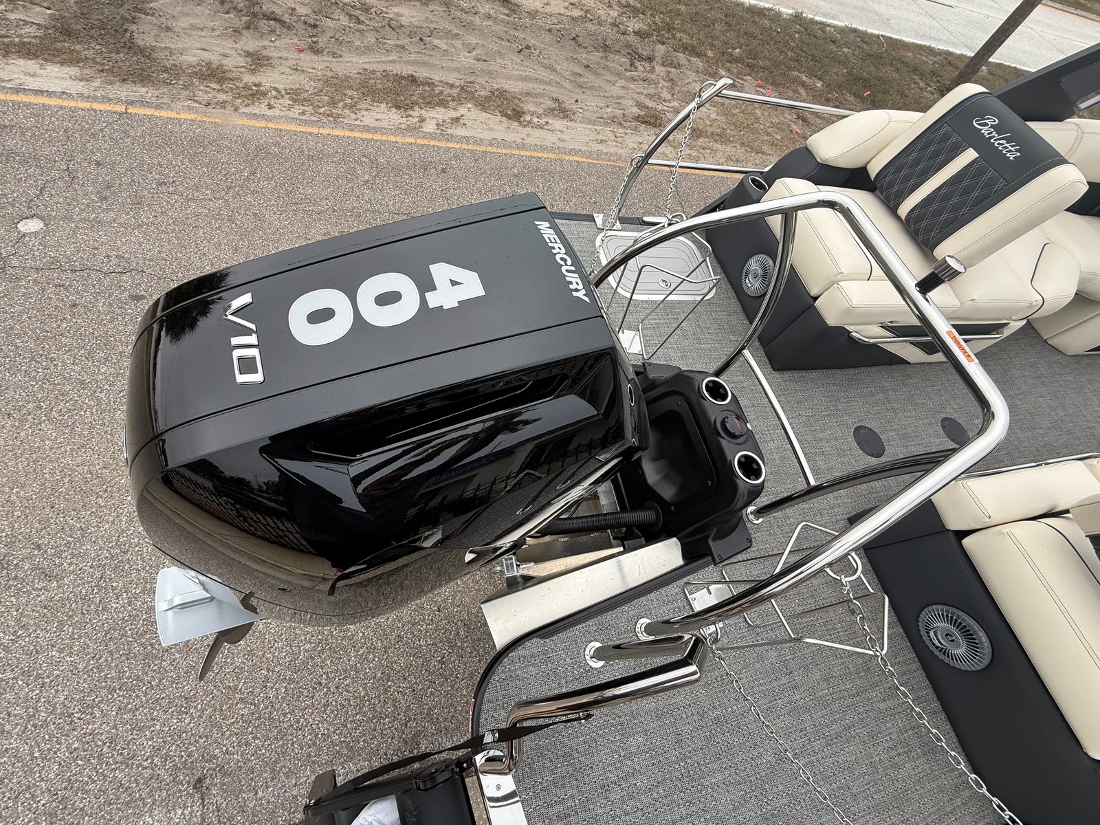 Powering the Barletta Lusso L25MA is a single Mercury (D) 400L V10 Verado engine, delivering a robust 400 horsepower. This state-of-the-art engine ensures smooth acceleration, impressive top speeds, and reliable performance in a variety of water conditions. The Mercury Digital Pre-Rig for V10 and the expertly rigged engine with a V10 prop guarantee optimal efficiency and responsiveness. Whether you’re cruising at a leisurely pace or seeking a thrilling ride, this pontoon boat offers the perfect balance of power and control.