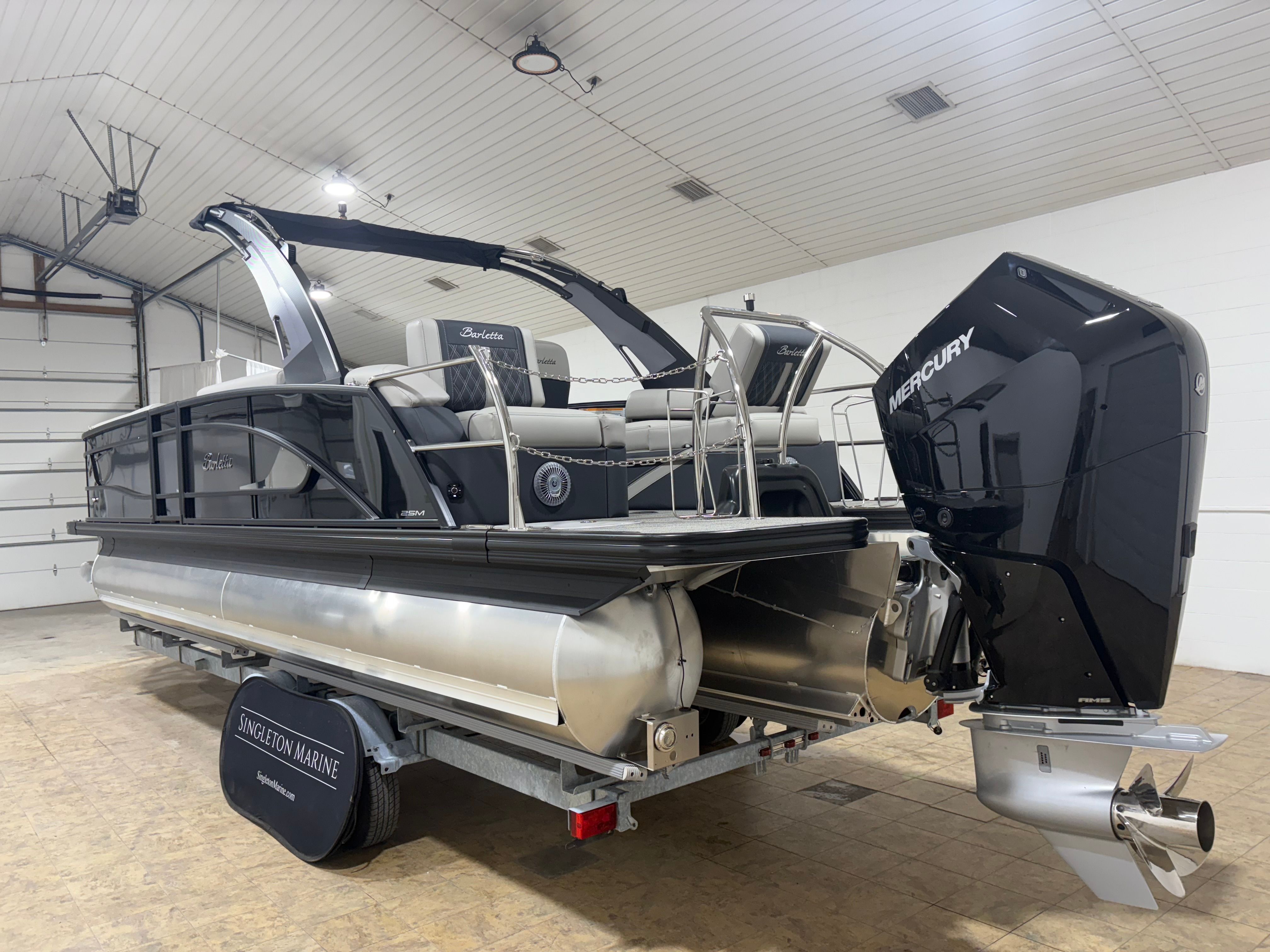 The 2026 Barletta Lusso L25MA stands out as a premier pontoon boat, boasting a generous length of 27.5 feet. This new Barletta boat for sale is meticulously engineered to deliver a spacious and inviting environment, ideal for entertaining family and friends or simply relaxing on the water. The Lusso L25MA’s sleek profile, enhanced by its Blackout Package Lusso railskin and elegant Gray Moonstone accent color, ensures you will turn heads at every dock and marina.