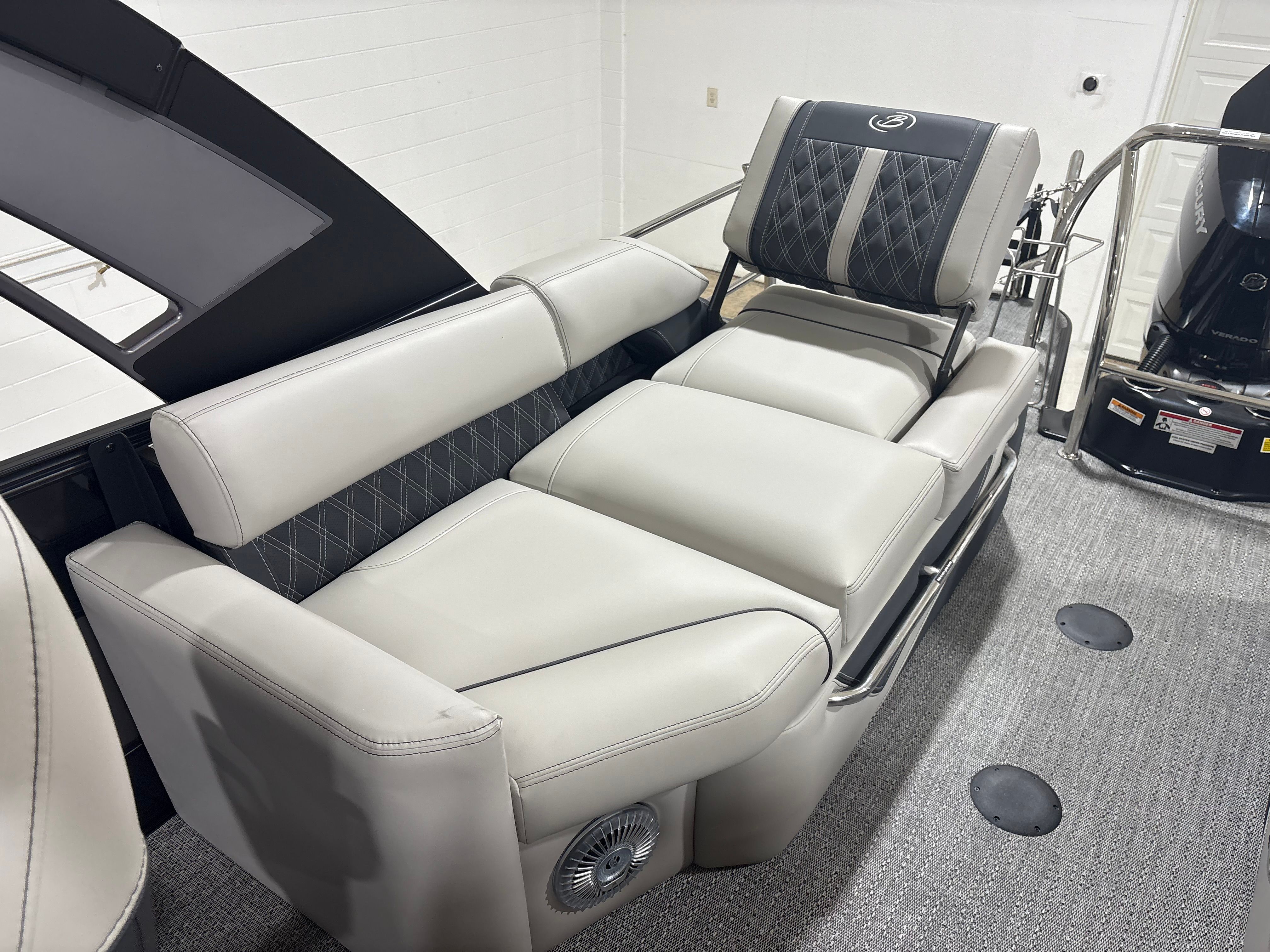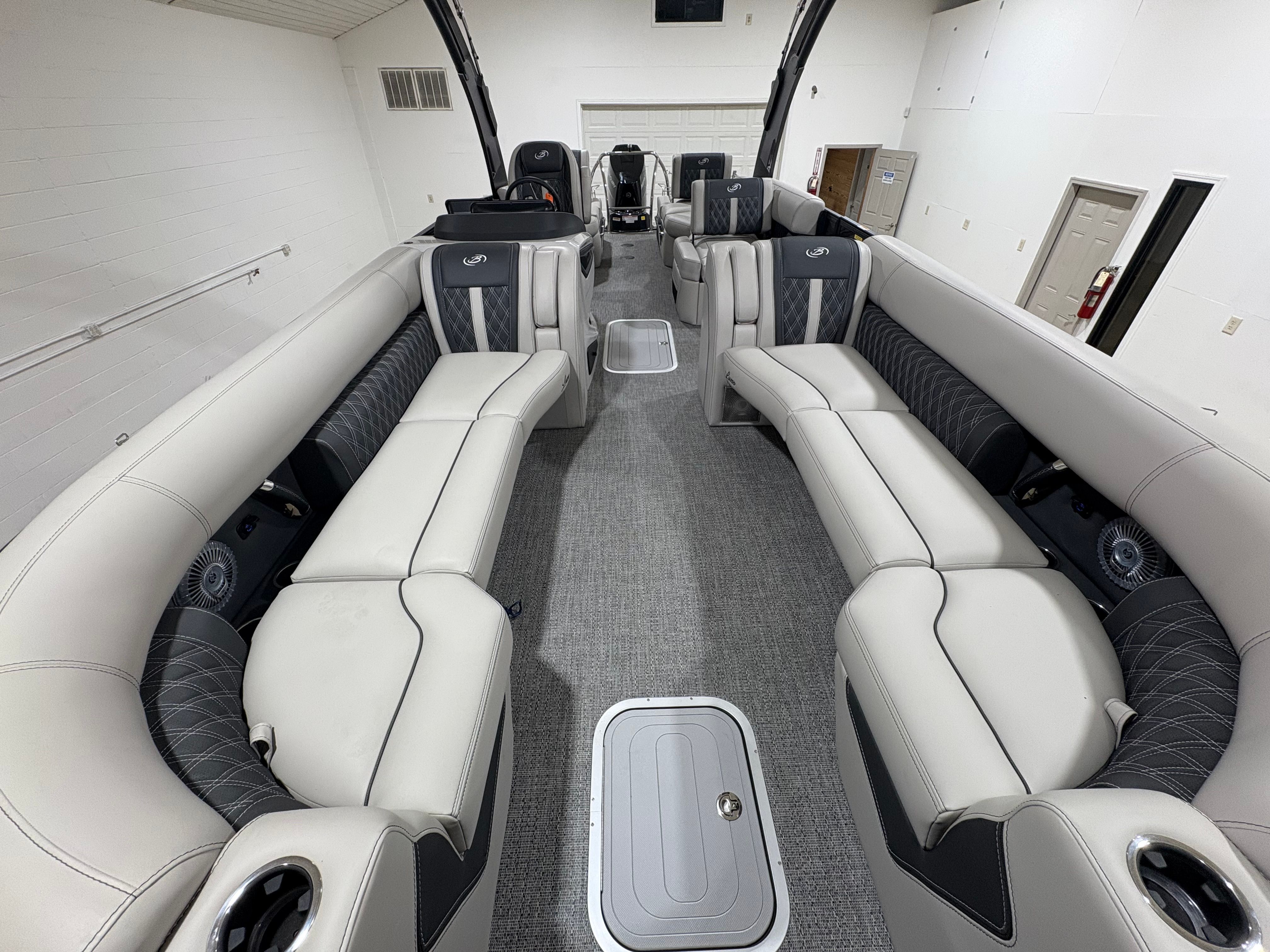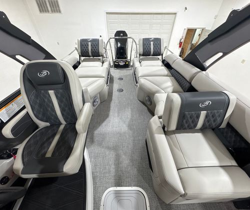 At the heart of the Barletta Lusso L25MA is the powerful Mercury 350L V10 Verado engine, delivering an impressive 350 horsepower. This state-of-the-art engine is expertly paired with Mercury Digital Pre-Rig for V10 and a V10 prop, ensuring seamless integration and optimal performance. Whether you are cruising across the lake or accelerating for watersports, the Lusso L25MA provides exhilarating speed, smooth handling, and reliable power. The advanced rigging and digital controls offer precise maneuverability, making every journey effortless and enjoyable.