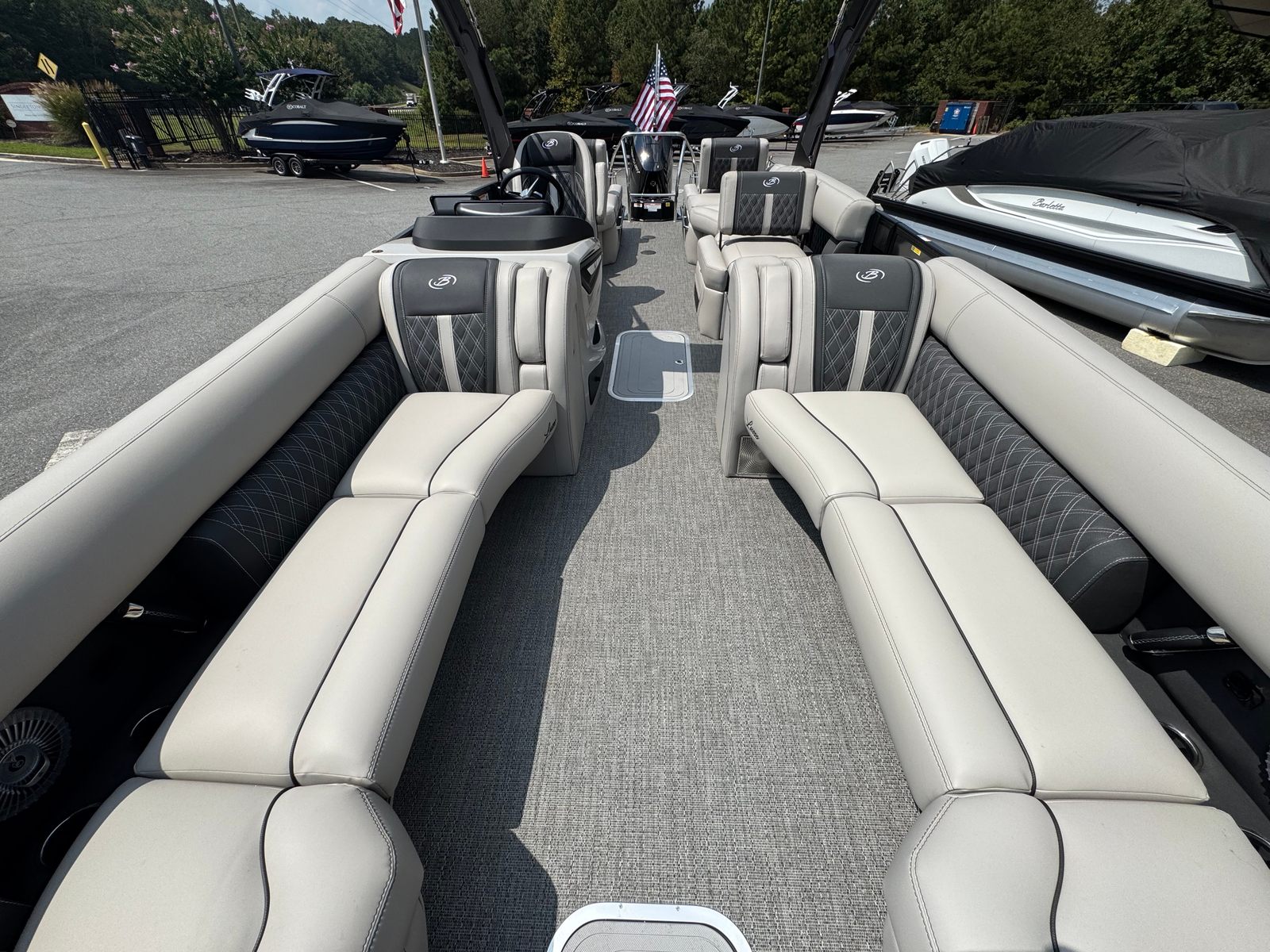 Owning the Barletta Lusso L25MA means embracing a lifestyle of fun, relaxation, and adventure. The spacious deck layout offers ample room for lounging, dining, and entertaining, making it the perfect setting for memorable days on the water. The plush seating and premium materials ensure that every guest enjoys the utmost comfort, while the modern design and high-end finishes create an inviting and luxurious atmosphere.The powerful Mercury 400L V10 Verado engine provides the performance you need for water sports, fast cruising, or simply exploring new destinations. The advanced rigging and digital controls make operating the boat intuitive and enjoyable, even for those new to boating. With its combination of power, elegance, and versatility, the Lusso L25MA is designed to deliver endless hours of enjoyment for you and your loved ones.
