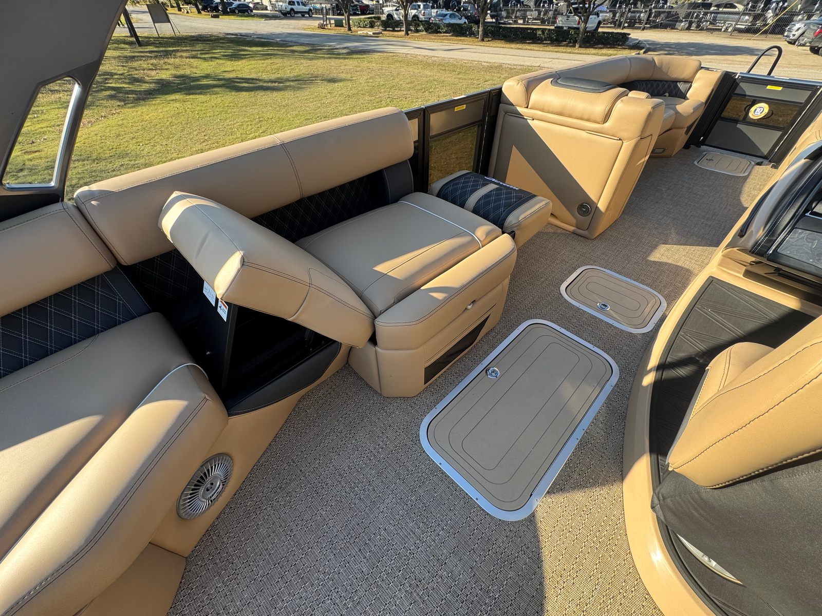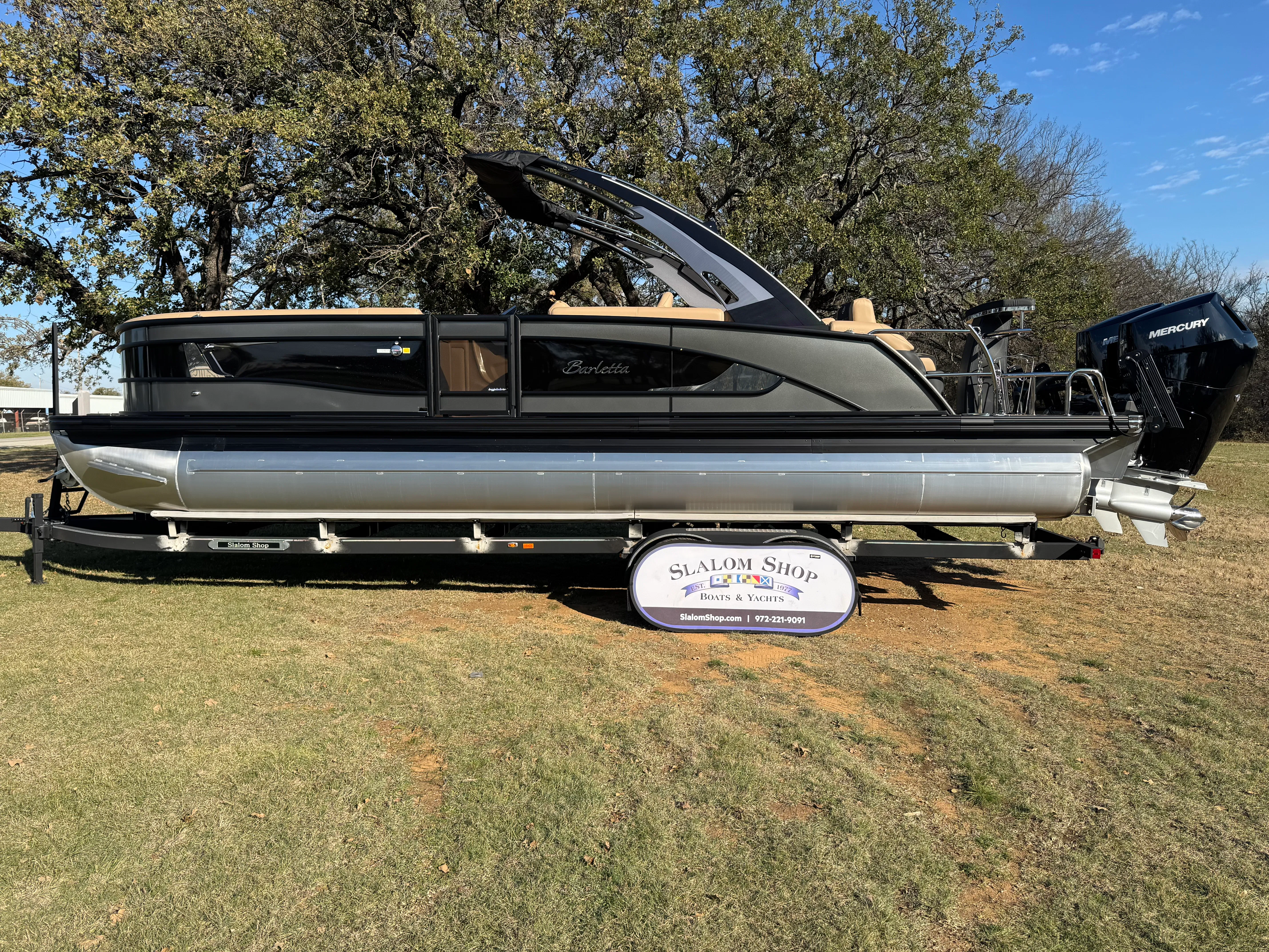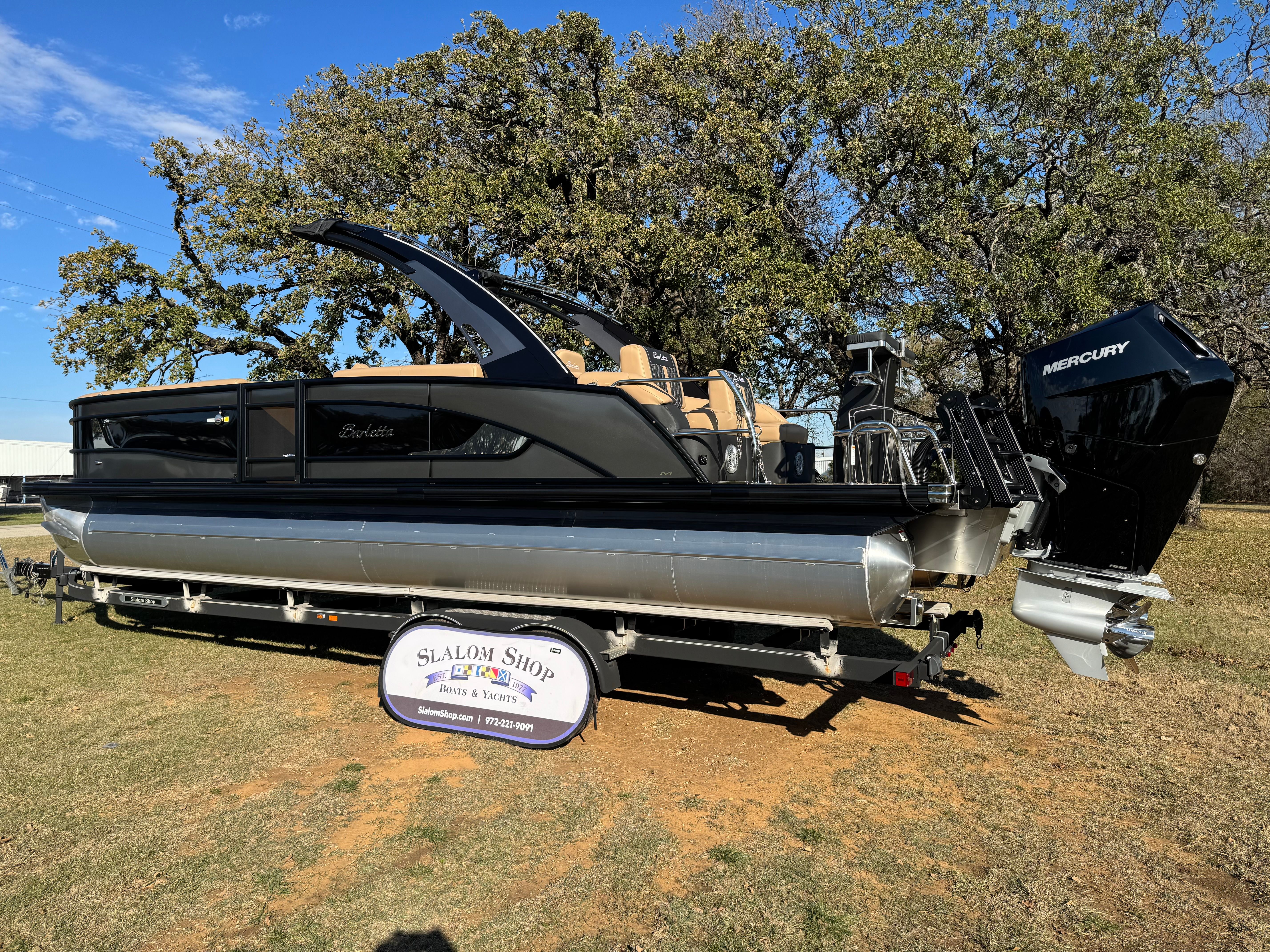In summary, the 2026 Barletta Lusso L25MAT is a remarkable pontoon boat for sale that combines luxury, performance, and practicality in one stunning package. With its impressive 28.25-foot length, twin Mercury 400L V10 Verado engines delivering 800 horsepower, and a host of premium features—including Gray Moonstone and Black Diamond exterior colors, Carmella Tan with Onyx furniture, Amore Tan flooring, and elegant white underdeck and underwater lighting—this Barletta boat for sale offers an unparalleled boating experience.Whether you are looking to entertain, relax, or explore, the Lusso L25MAT is designed to exceed your expectations at every turn. Don’t miss the opportunity to own this exceptional pontoon and elevate your time on the water. Contact the dealer today to learn more about the Barletta Lusso L25MAT and make your boating dreams a reality.