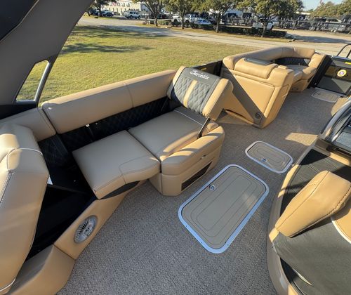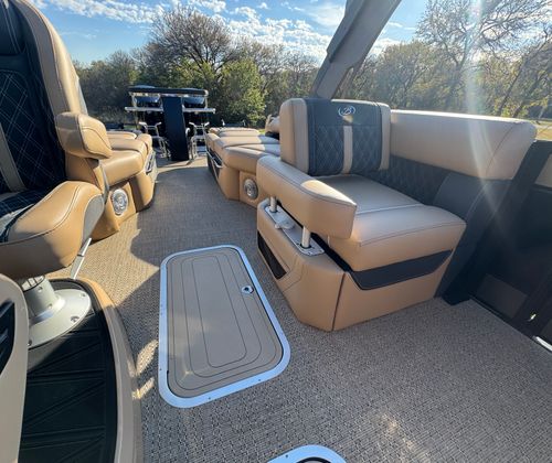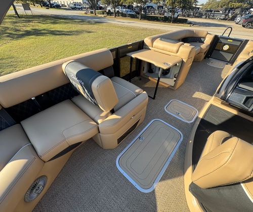 The Barletta Lusso L25MAT is as practical as it is luxurious. Its generous length and smart design provide ample storage for all your gear, from water toys to picnic supplies. The intuitive layout makes it easy to move about the deck, ensuring safety and convenience for passengers of all ages. Docking is a breeze thanks to the advanced twin engine setup and joystick piloting system, allowing you to maneuver with precision even in crowded marinas.Fuel efficiency is another highlight, with the Mercury V10 Verado engines engineered for optimal performance without compromising on power. This means you can spend more time enjoying the water and less time refueling. The durable flooring and high-quality materials are built to withstand the elements, ensuring your investment remains in top condition for years to come.