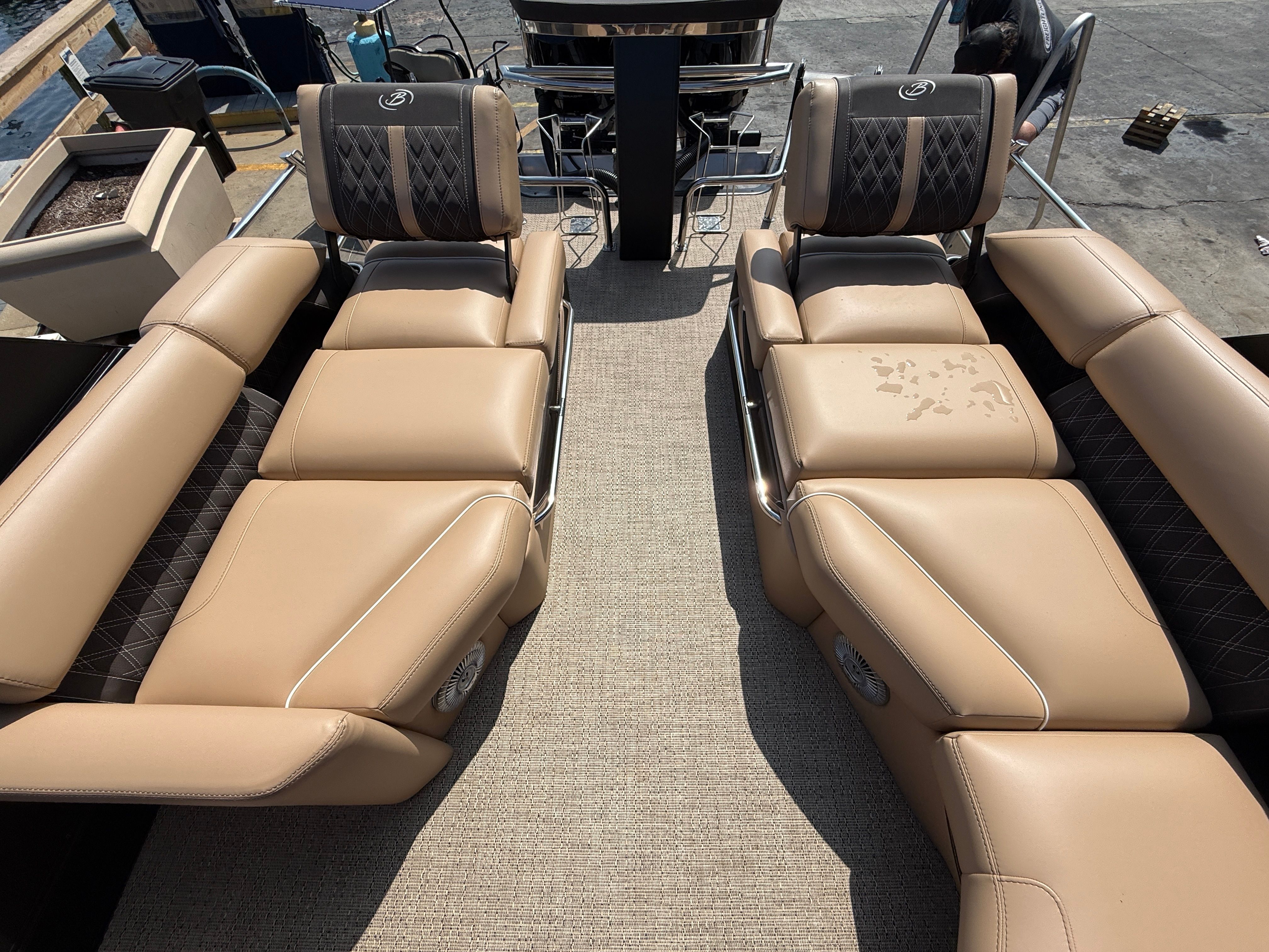 The 2025 Barletta Lusso L25MAT is a used pontoon boat that measures an impressive 28.25 feet in length, providing ample space for entertaining, lounging, and enjoying the water. With its sleek design and premium construction, this Barletta boat for sale is built to turn heads and deliver lasting memories. The Lusso L25MAT’s spacious deck layout ensures everyone on board has room to relax, socialize, and soak up the sun, making it ideal for large gatherings or intimate outings.
