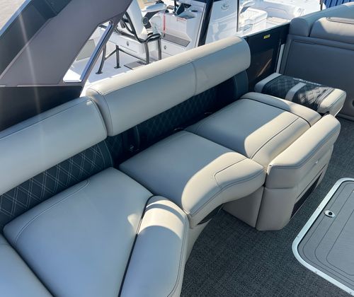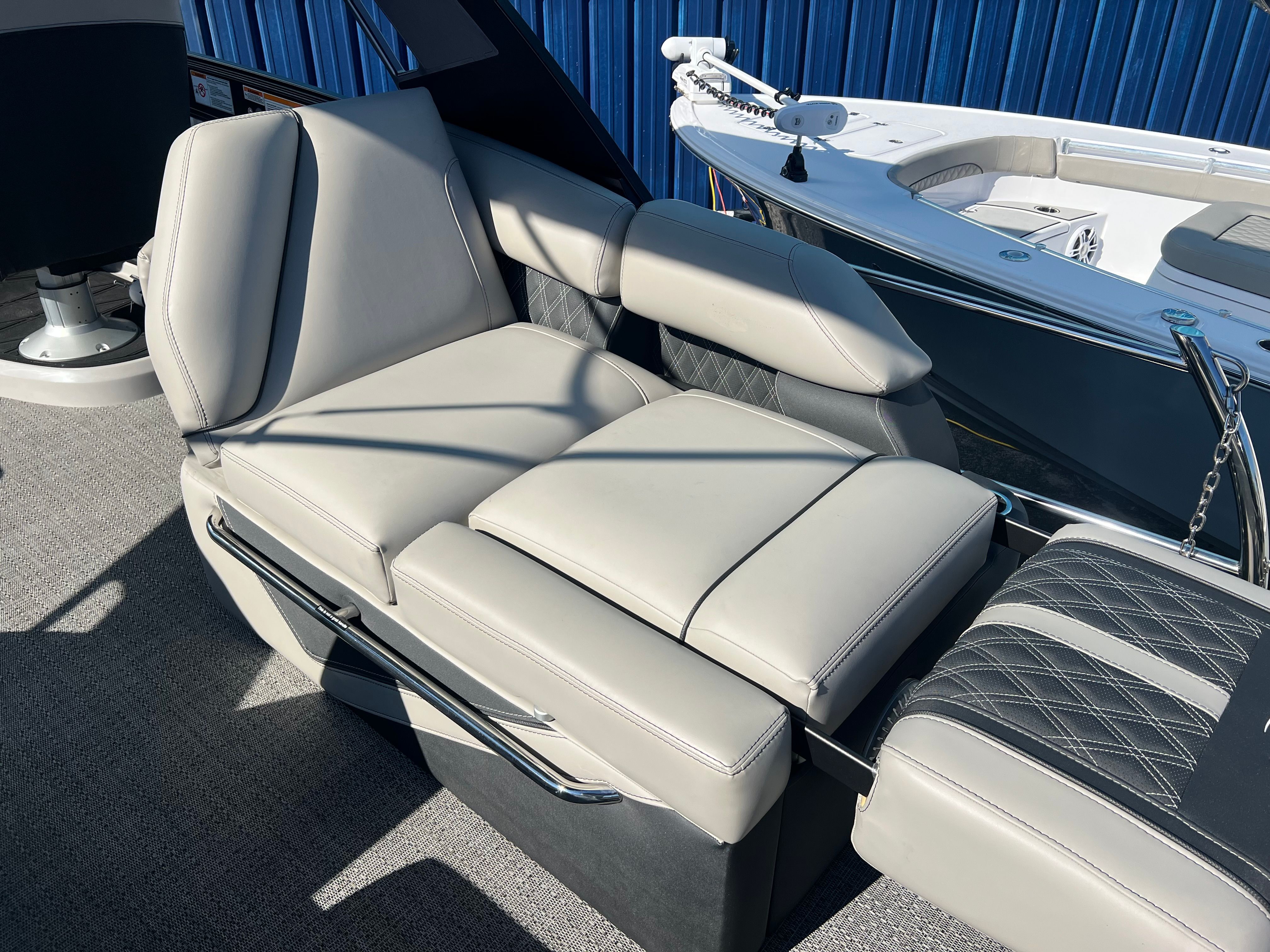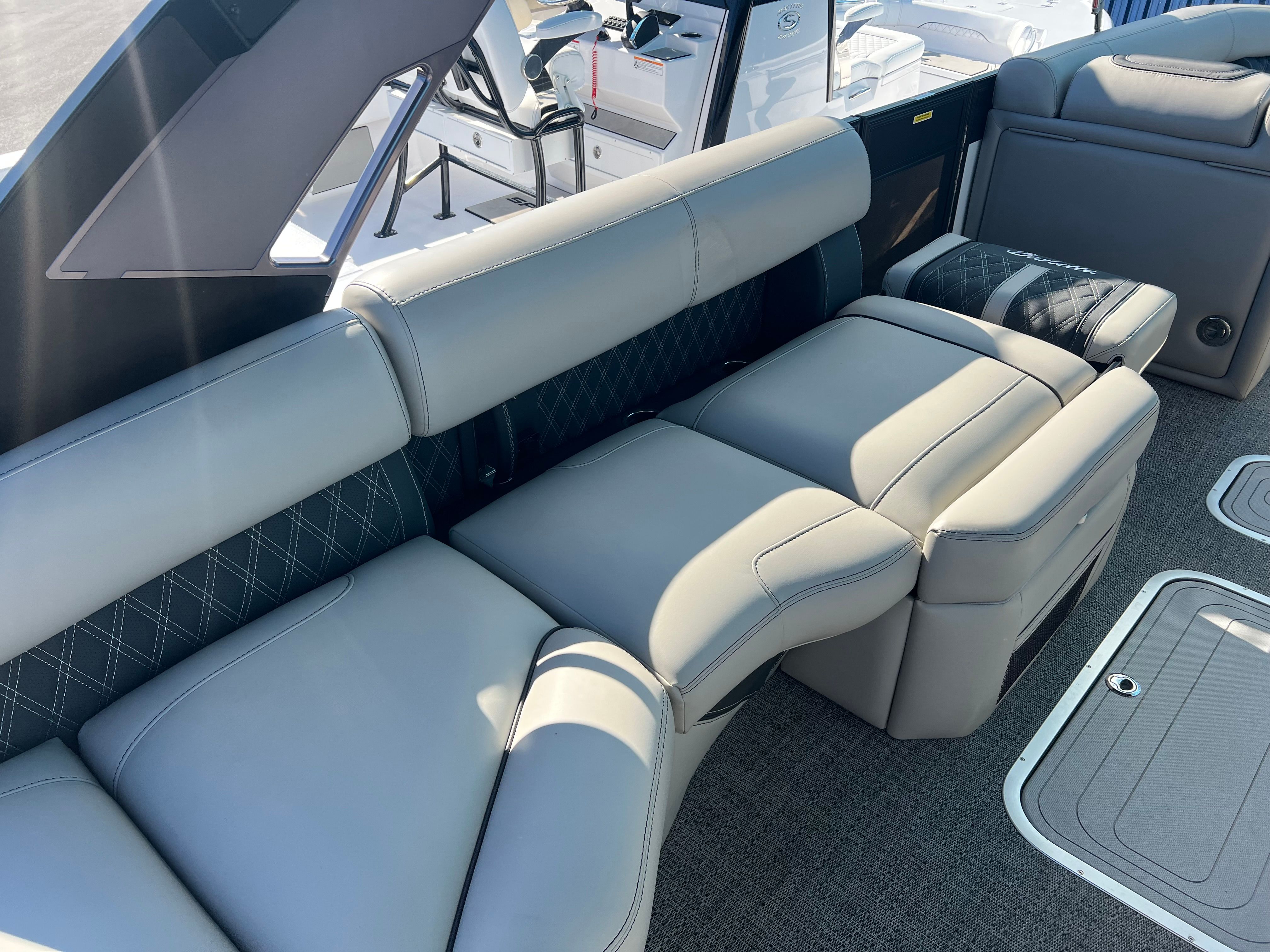 Practicality meets luxury in the Barletta Lusso L25MAT. The spacious layout allows for easy movement and plenty of storage for gear, snacks, and water toys, making it perfect for extended outings. The twin-engine setup not only boosts performance but also simplifies docking and maneuvering, giving you greater control in tight spaces. Fuel efficiency is enhanced by the advanced Mercury Verado engines, allowing you to spend more time on the water and less time refueling. The durable flooring and furniture are designed to withstand the elements, ensuring your investment remains in top condition for years to come. Exterior lighting adds safety and style, illuminating your path during nighttime adventures and creating a welcoming atmosphere for evening gatherings.