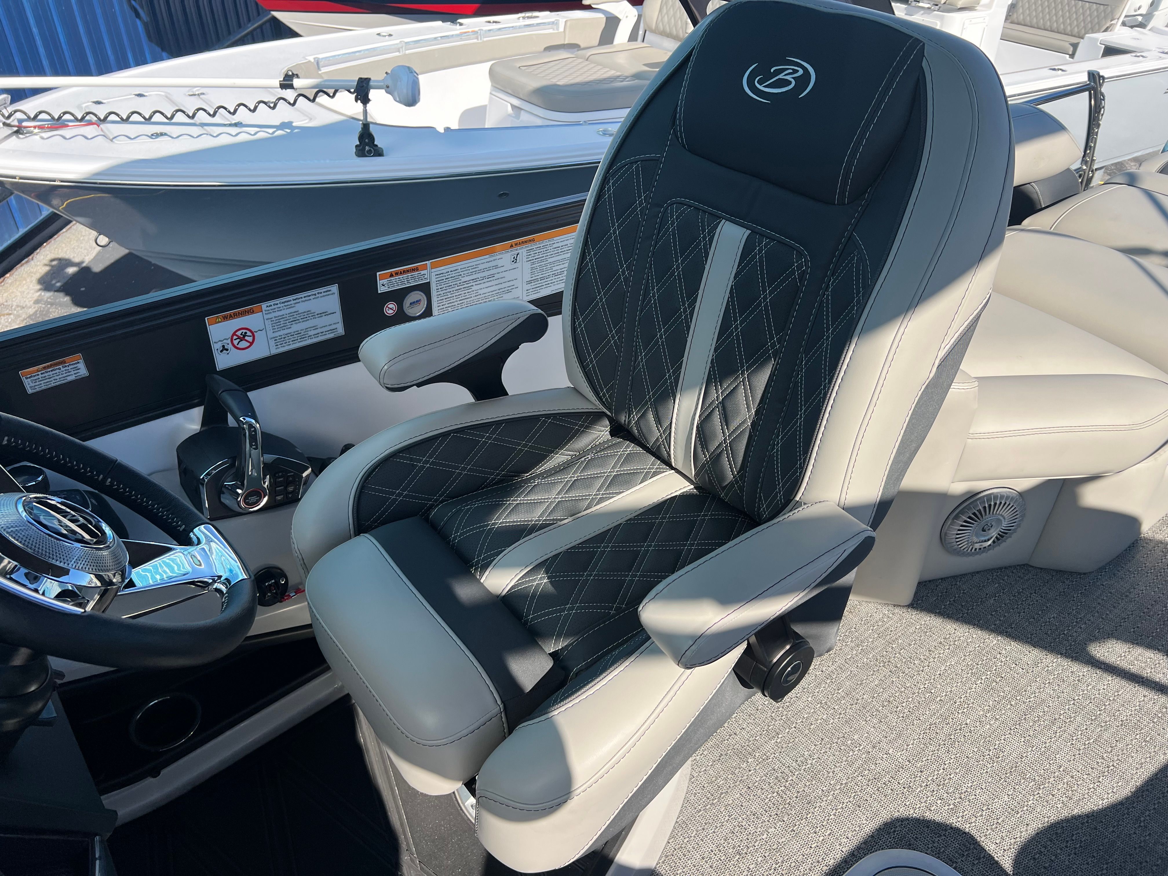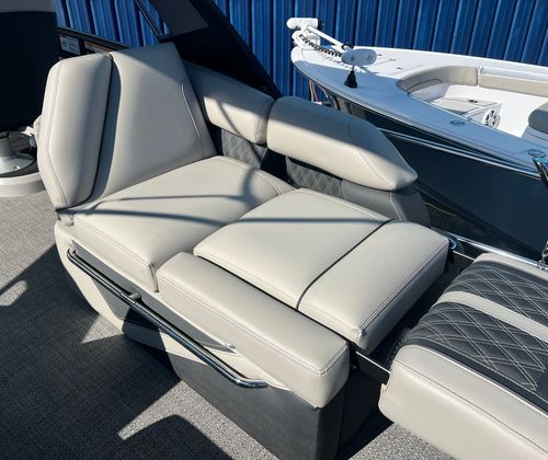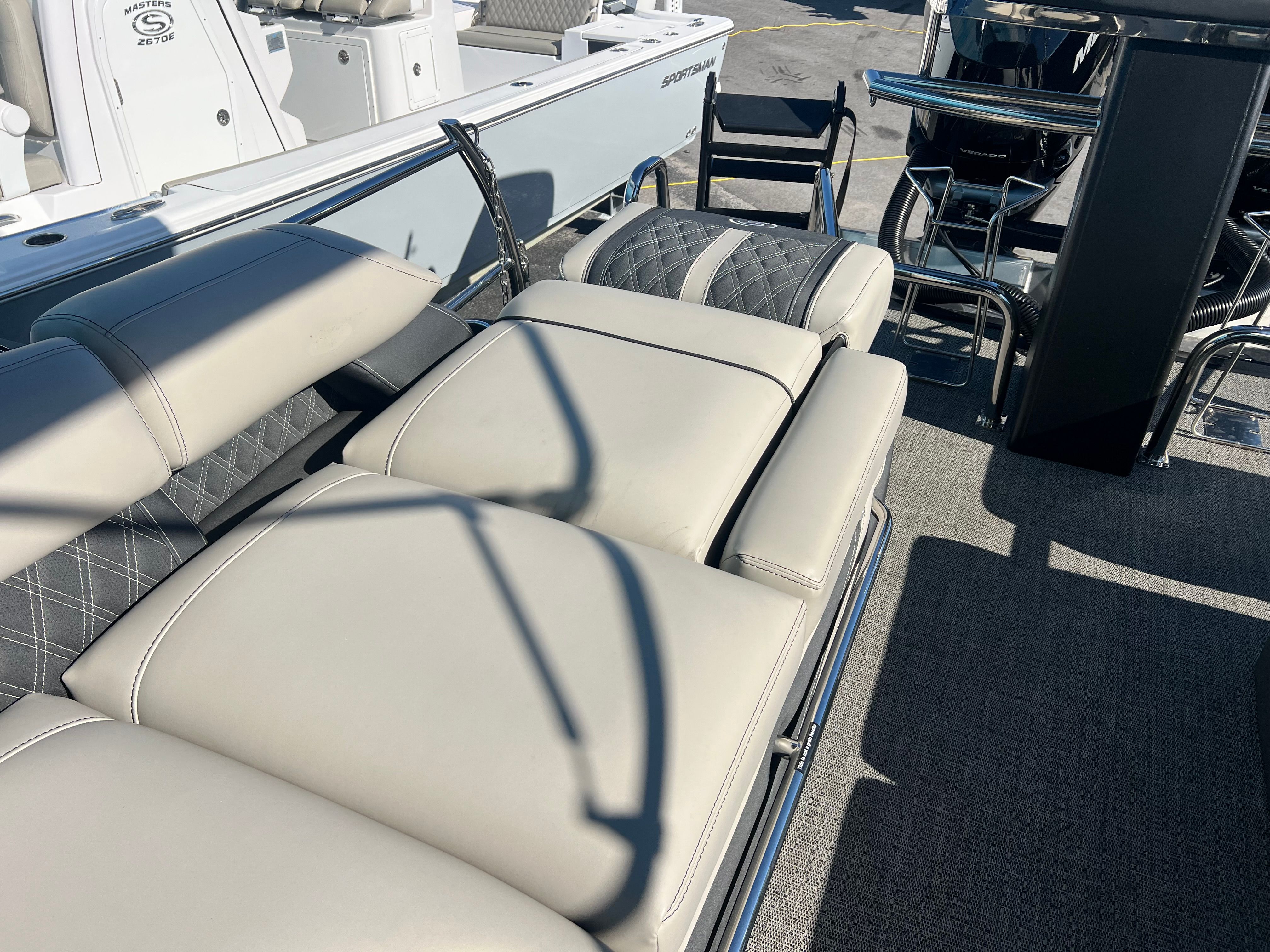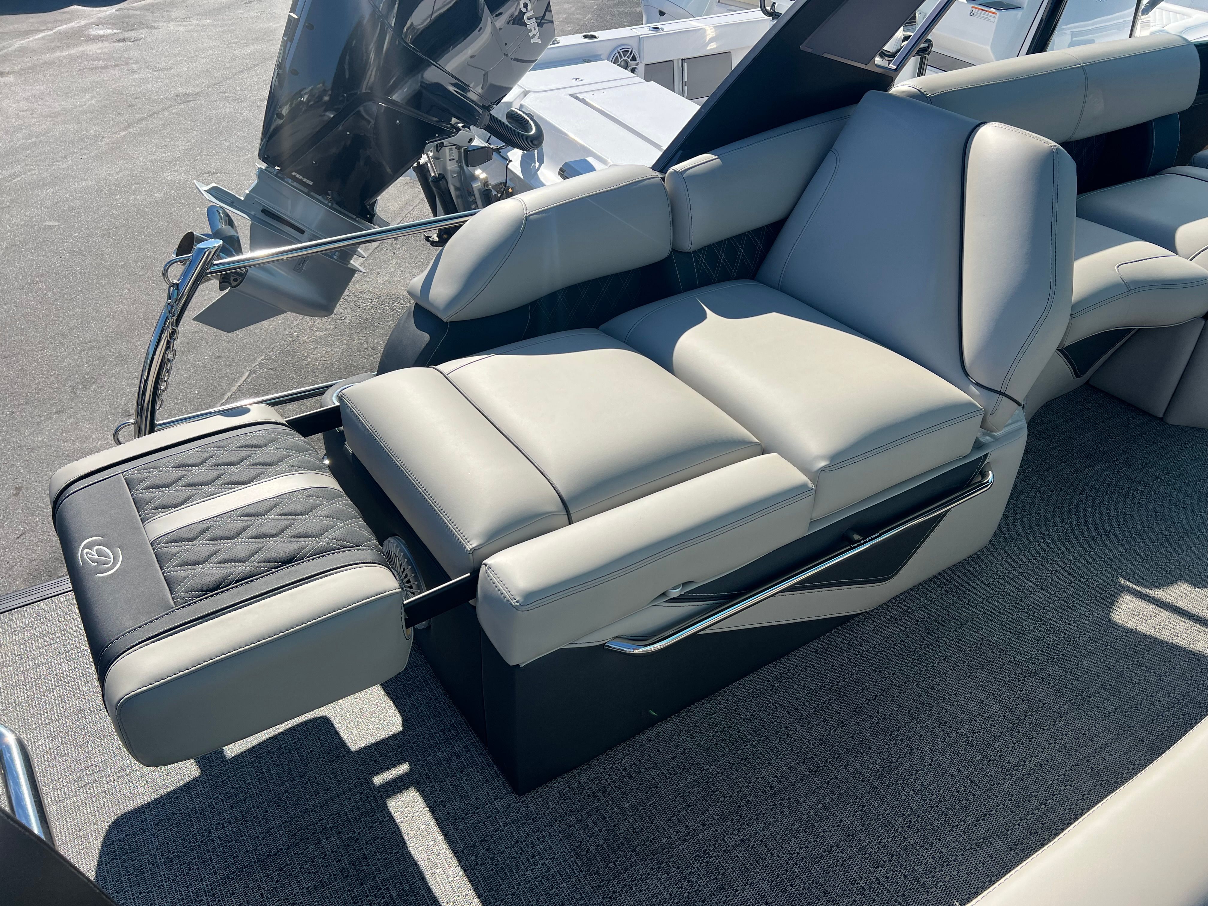Practicality meets luxury in the Barletta Lusso L25MAT. The spacious layout allows for easy movement and plenty of storage for gear, snacks, and water toys, making it perfect for extended outings. The twin-engine setup not only boosts performance but also simplifies docking and maneuvering, giving you greater control in tight spaces. Fuel efficiency is enhanced by the advanced Mercury Verado engines, allowing you to spend more time on the water and less time refueling. The durable flooring and furniture are designed to withstand the elements, ensuring your investment remains in top condition for years to come. Exterior lighting adds safety and style, illuminating your path during nighttime adventures and creating a welcoming atmosphere for evening gatherings.