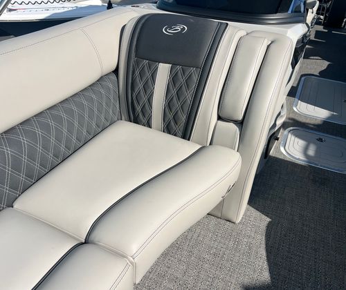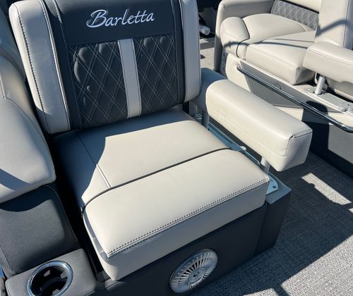 The Barletta Lusso L25MAT is a 2026 model, measuring an impressive 28.25 feet in length. This spacious pontoon offers ample room for family, friends, and all your favorite activities, making it an ideal vessel for both relaxing cruises and lively gatherings. With its sleek Matte Black sweep color and Winter White accent, the Lusso L25MAT stands out in any marina, exuding a modern and elegant aesthetic. The Marquesan Gray/Onyx furniture and Amore Gray flooring further enhance the boat’s upscale appeal, ensuring every moment onboard is enjoyed in style and comfort.