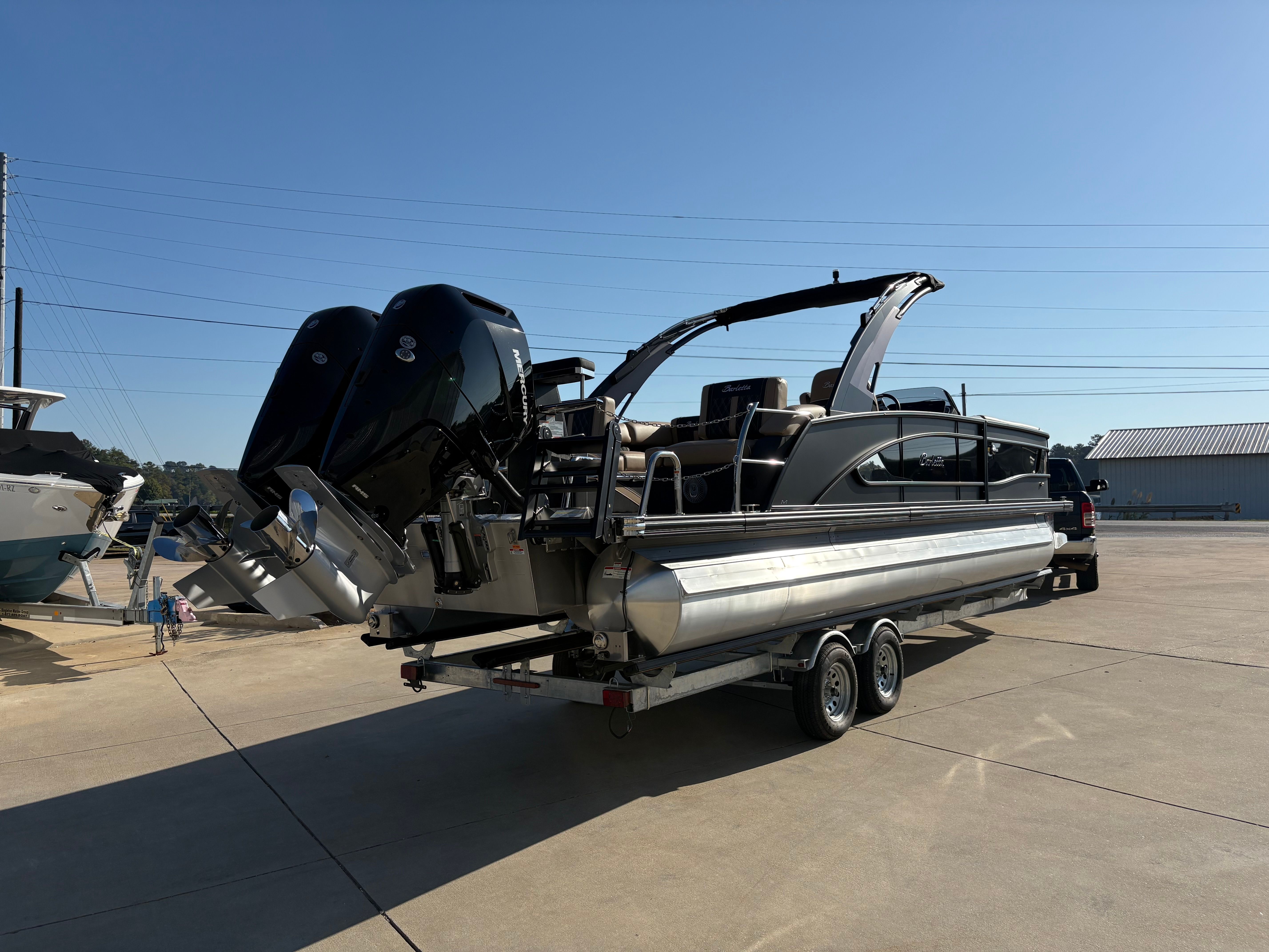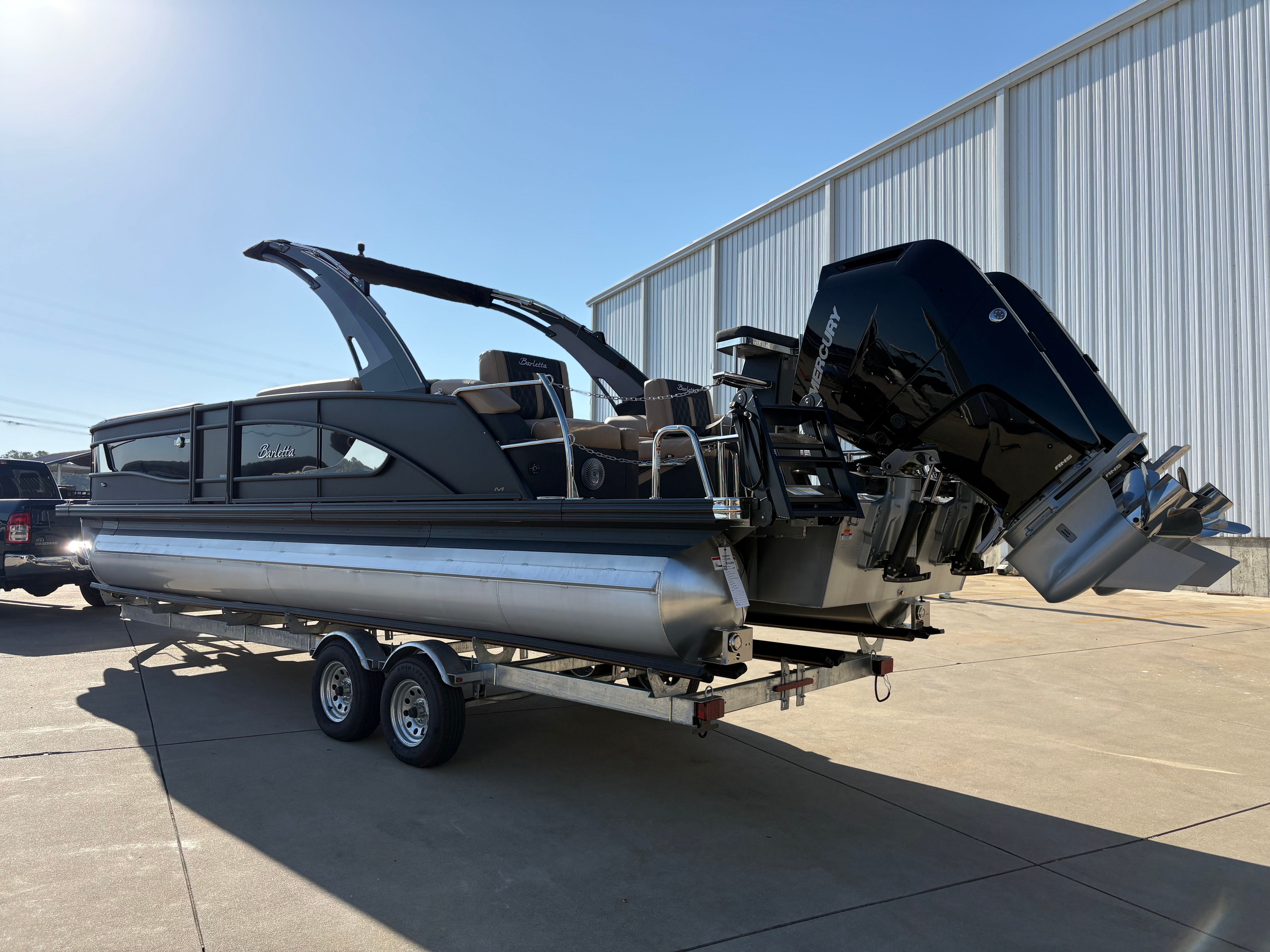 The 2026 Barletta Lusso L25MAT is more than just a pontoon boat for sale; it is an invitation to elevate your boating lifestyle. With its impressive length, twin Mercury 400L V10 Verado JPO engines, and a host of premium features—including white underdeck and underwater lighting, Amore Tan flooring, enhanced metal jacket protectant, and luxurious Carmella Tan with Onyx furniture—this Barletta boat for sale is designed to impress at every turn.If you are searching for a new pontoon that combines cutting-edge performance, sophisticated design, and unmatched comfort, the Barletta Lusso L25MAT is the ultimate choice. Don’t miss your opportunity to own this extraordinary vessel and create lasting memories on the water. Contact the dealer today to learn more about this exceptional pontoon and take the first step toward your next great adventure.