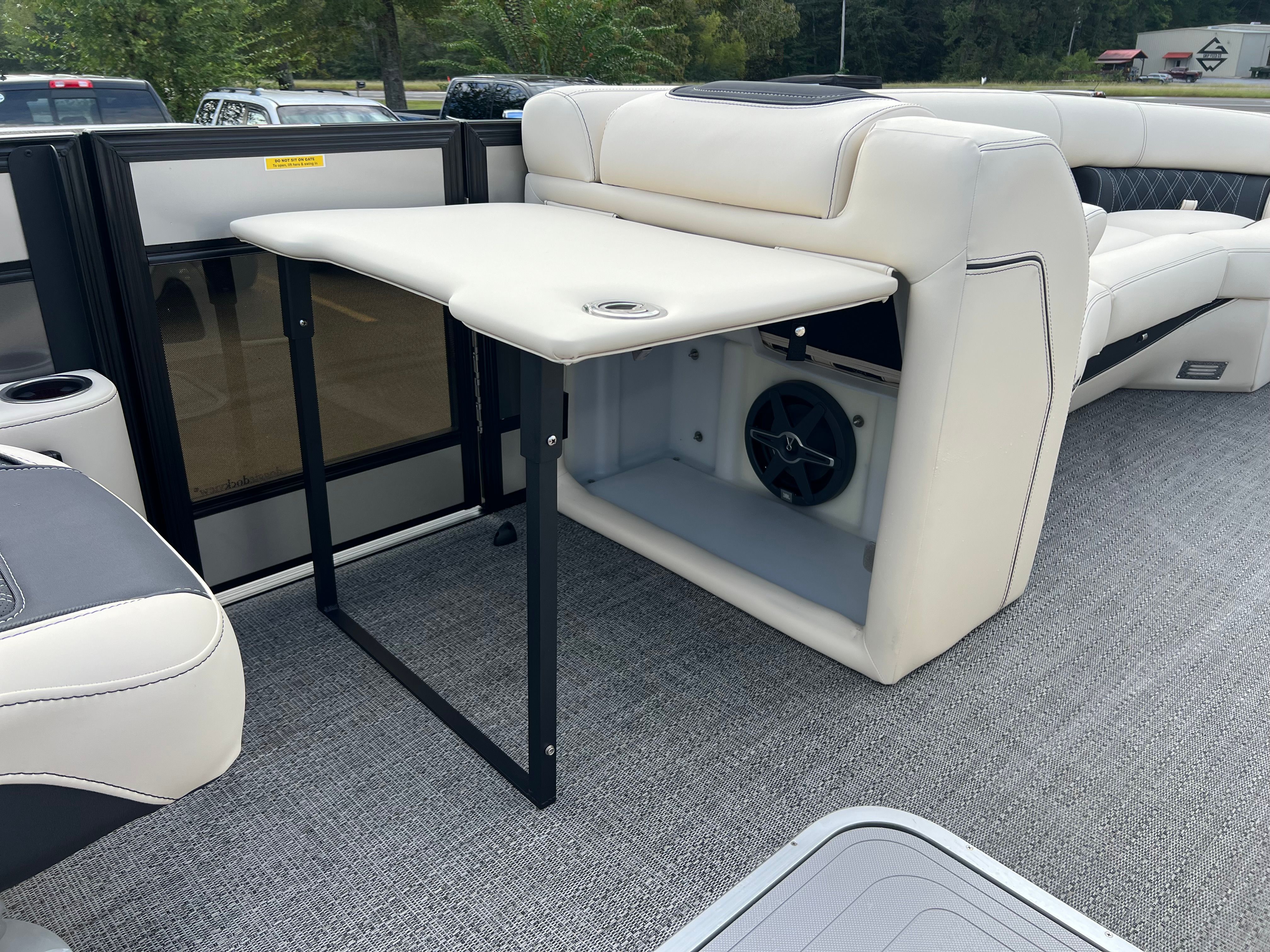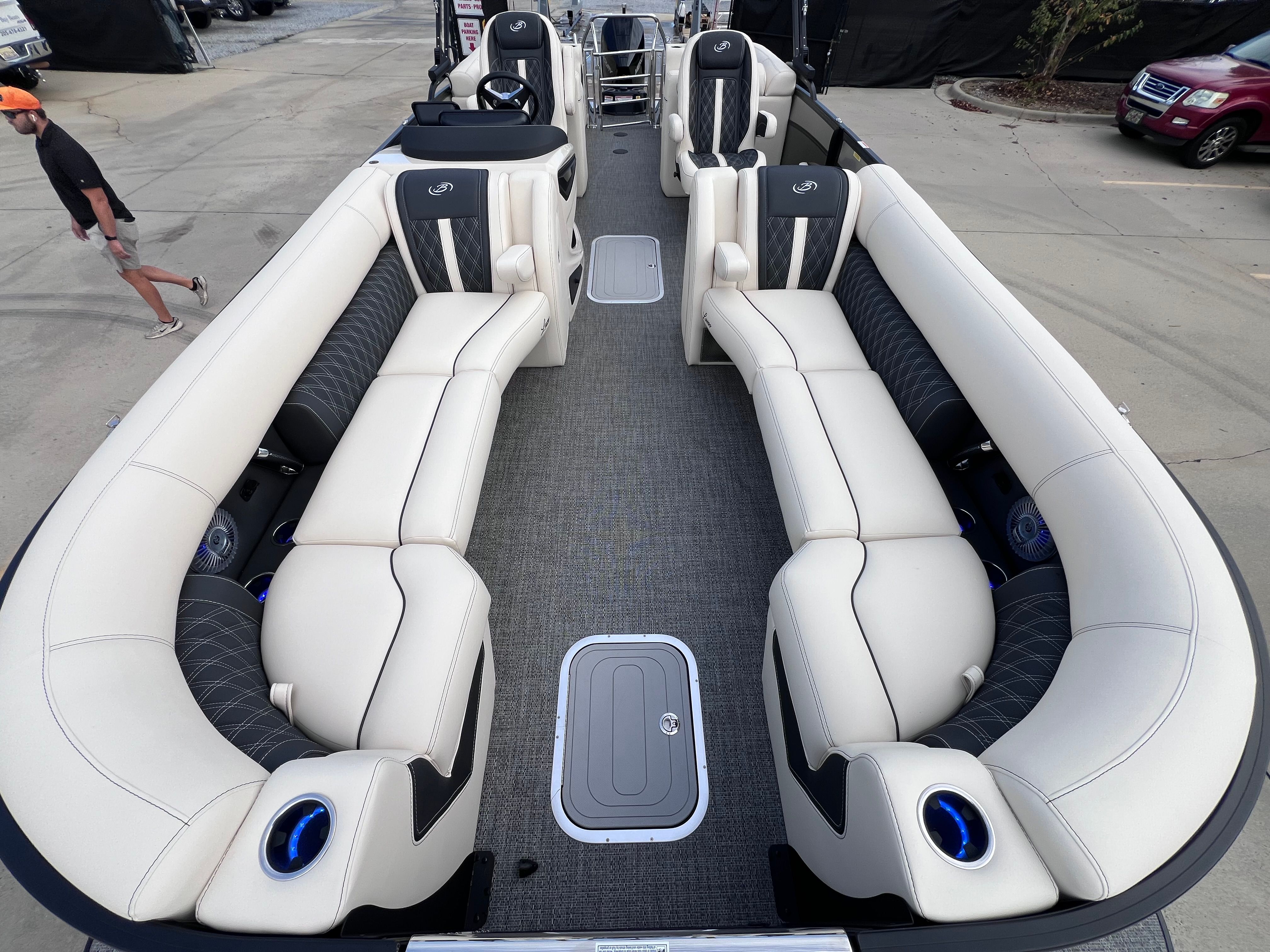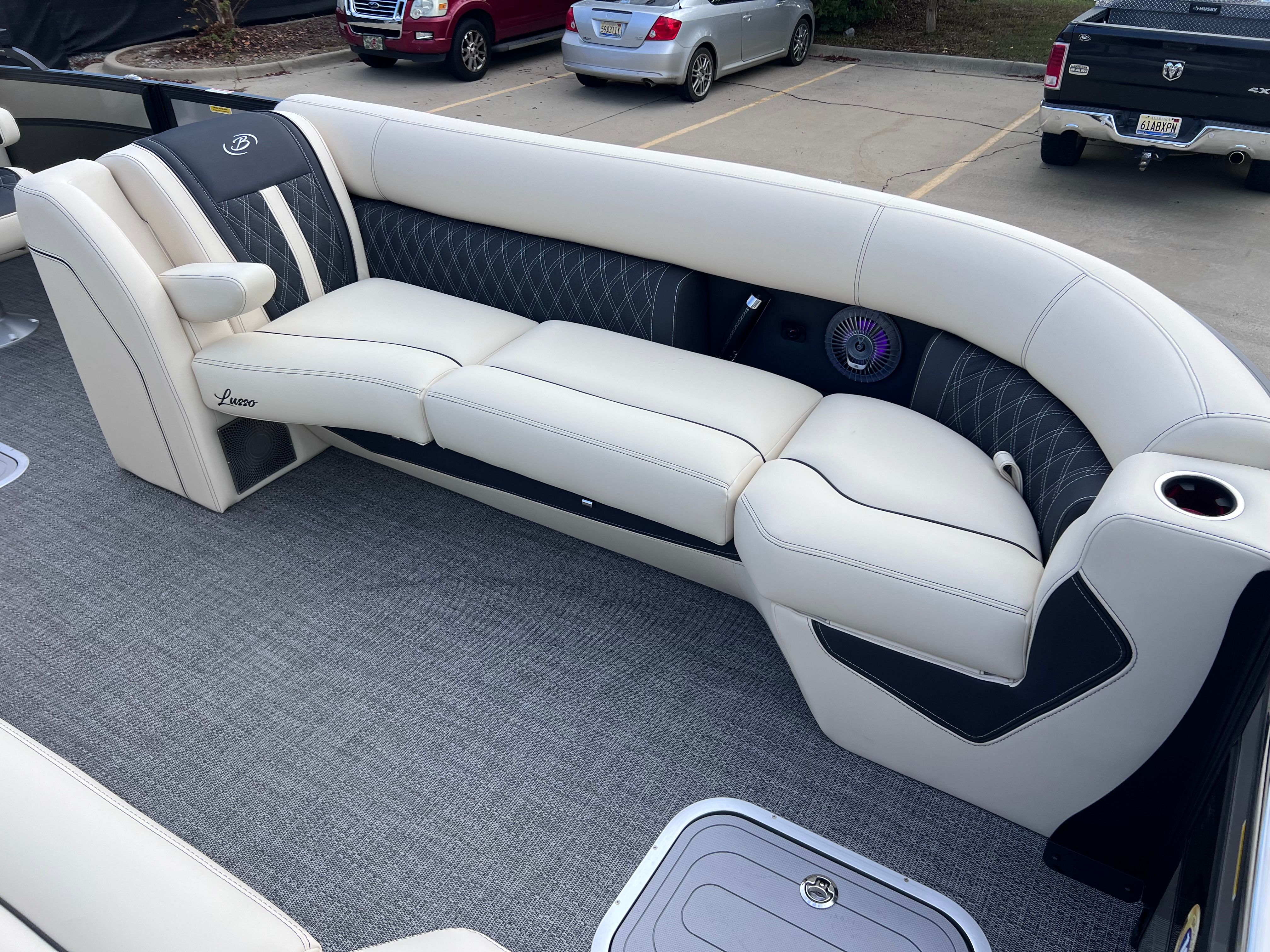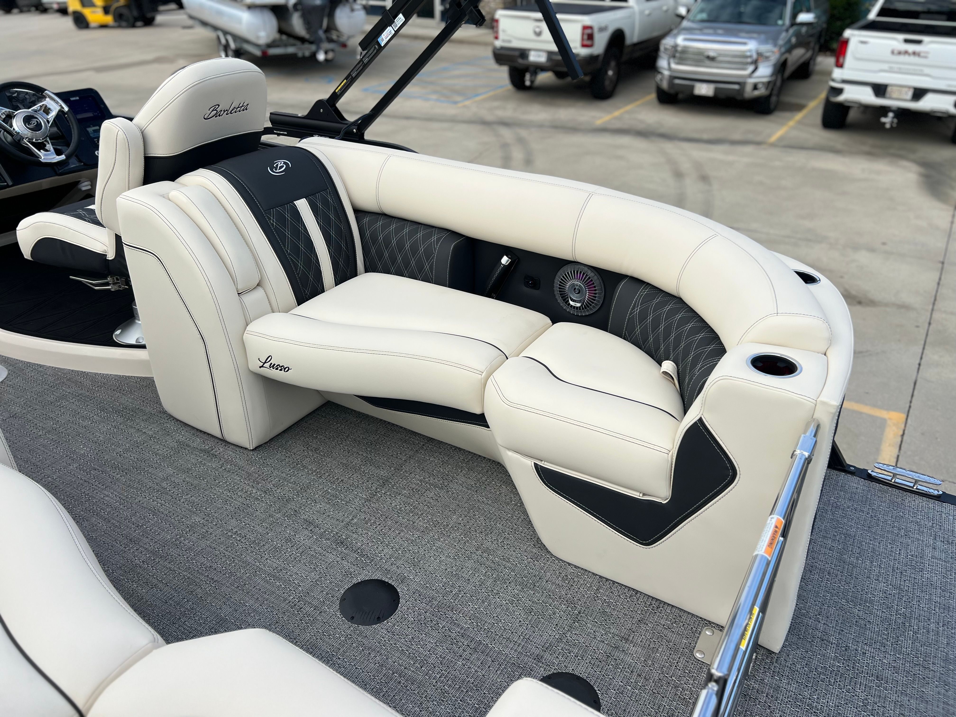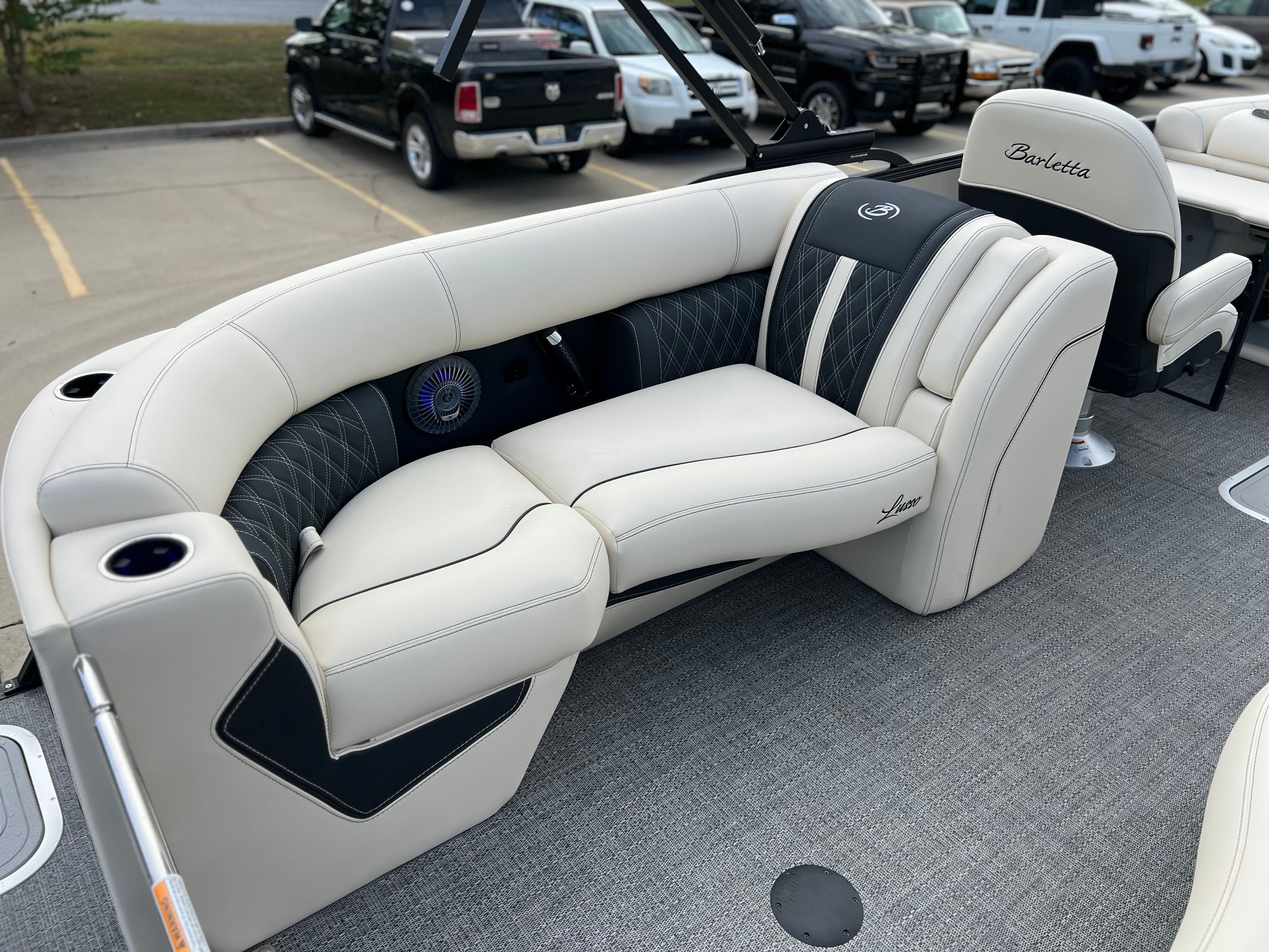 The Barletta Lusso L25QCSS is packed with premium features designed to elevate your time on the water. The Blackout Package Lusso railskin adds a bold, modern touch to the exterior, while the Linen with Onyx furniture creates a sophisticated and inviting atmosphere for you and your guests. The Amore Gray flooring is both stylish and practical, providing a comfortable surface that is easy to maintain.Digital gauges offer clear, real-time information at a glance, keeping you informed and in command. The rigging includes a stainless steel prop, ensuring durability and optimal performance. For added convenience, the onboard battery charger supports two batteries, so you can enjoy extended outings without worry. The Metal Jacket Protectant on the exterior helps preserve the boat’s pristine appearance, shielding it from the elements and reducing maintenance needs.