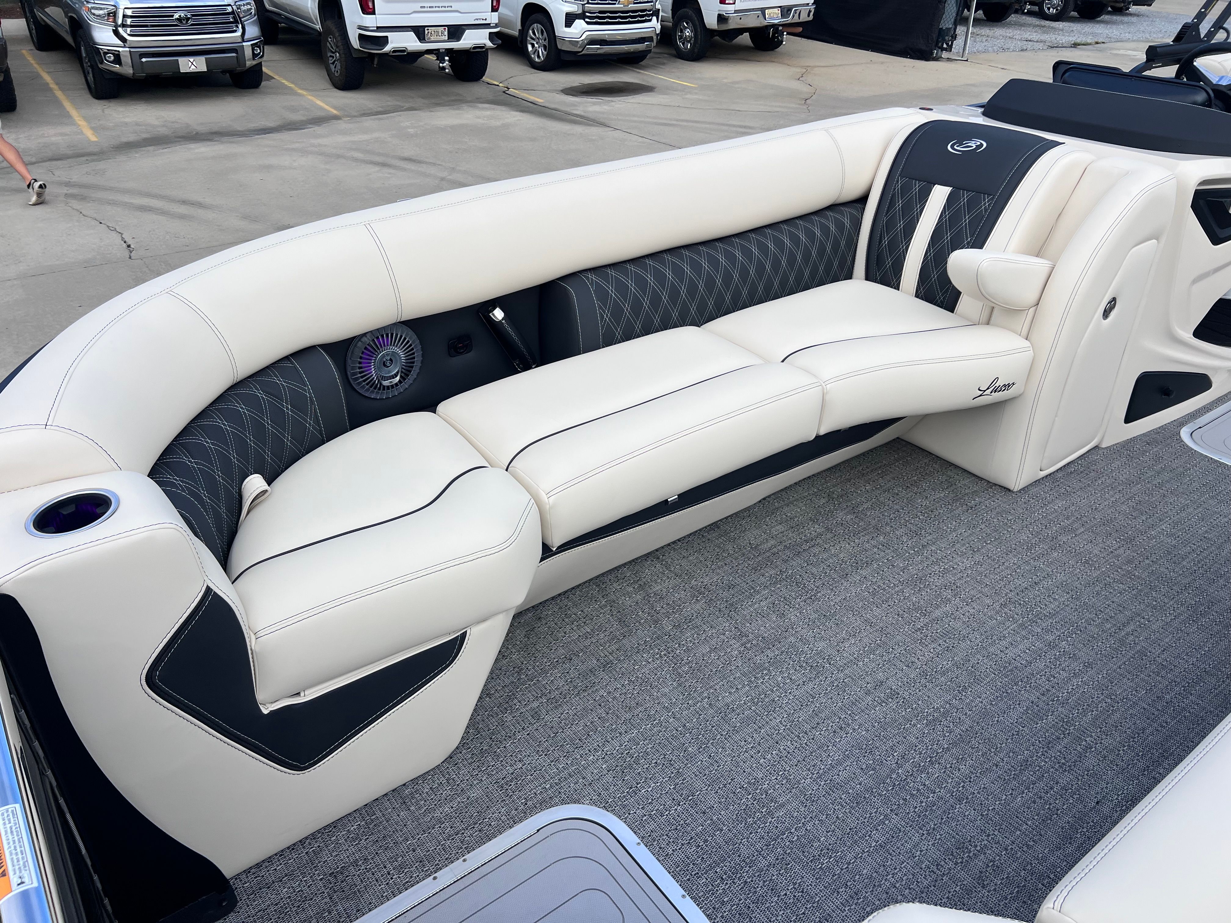 The 2026 Barletta Lusso L25QCSS is more than just a pontoon boat for sale—it is an invitation to elevate your time on the water. With its powerful Mercury 300L Verado V8 engine, striking Champagne and Gray Moonstone color scheme, luxurious Linen with Onyx furniture, and advanced features like digital gauges, hydraulic steering, and onboard battery charging, this Barletta boat for sale sets a new standard for comfort, style, and performance.Whether you are seeking adventure, relaxation, or unforgettable moments with loved ones, the Lusso L25QCSS is ready to deliver. Don’t miss your chance to own this exceptional pontoon—contact your local dealer today to learn more and start your next chapter on the water.