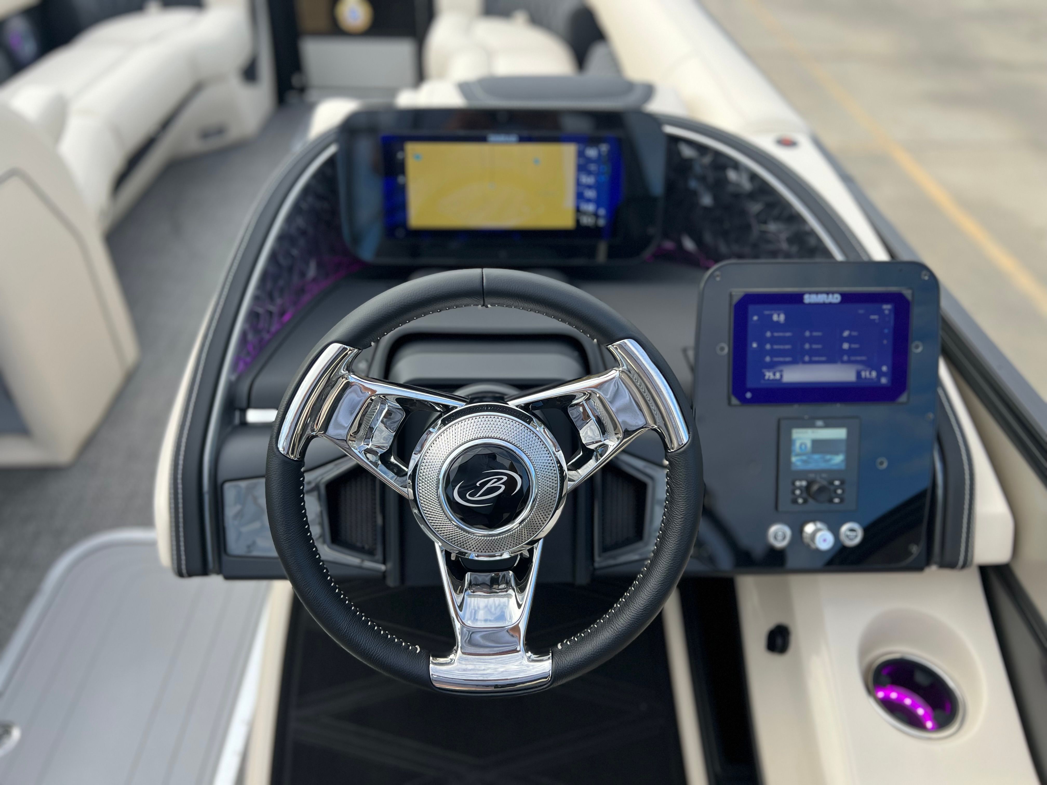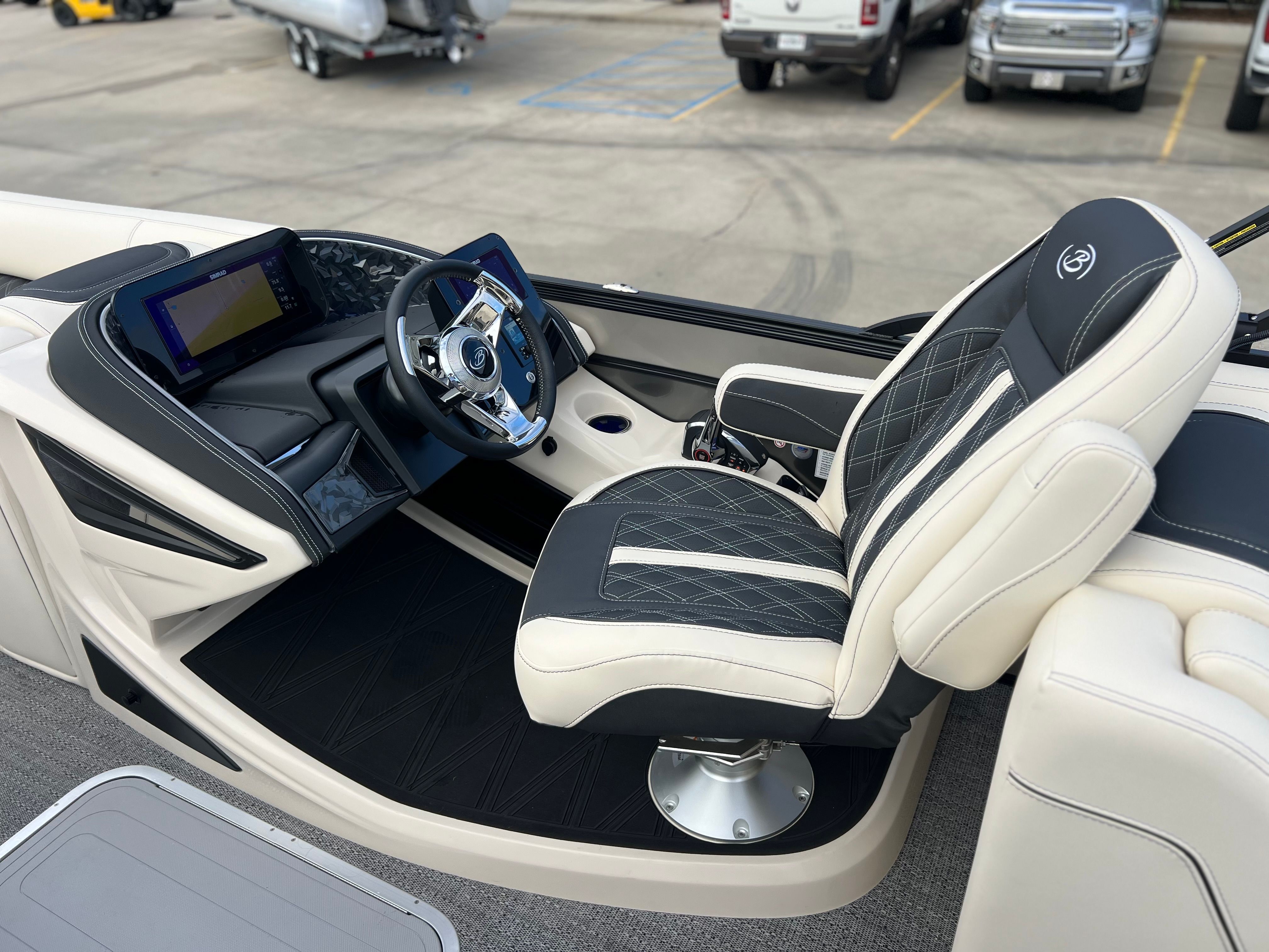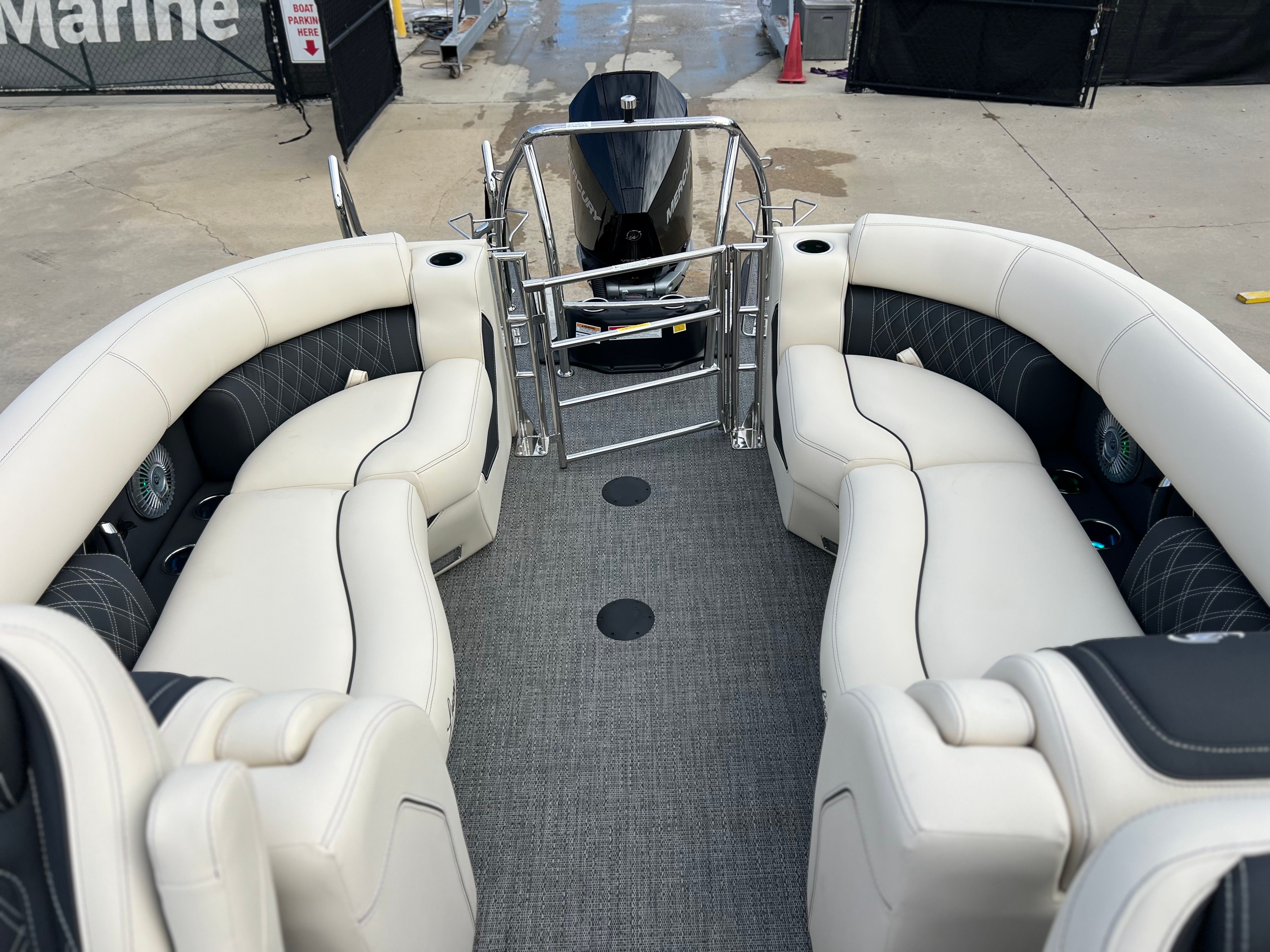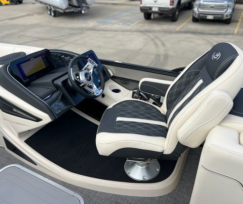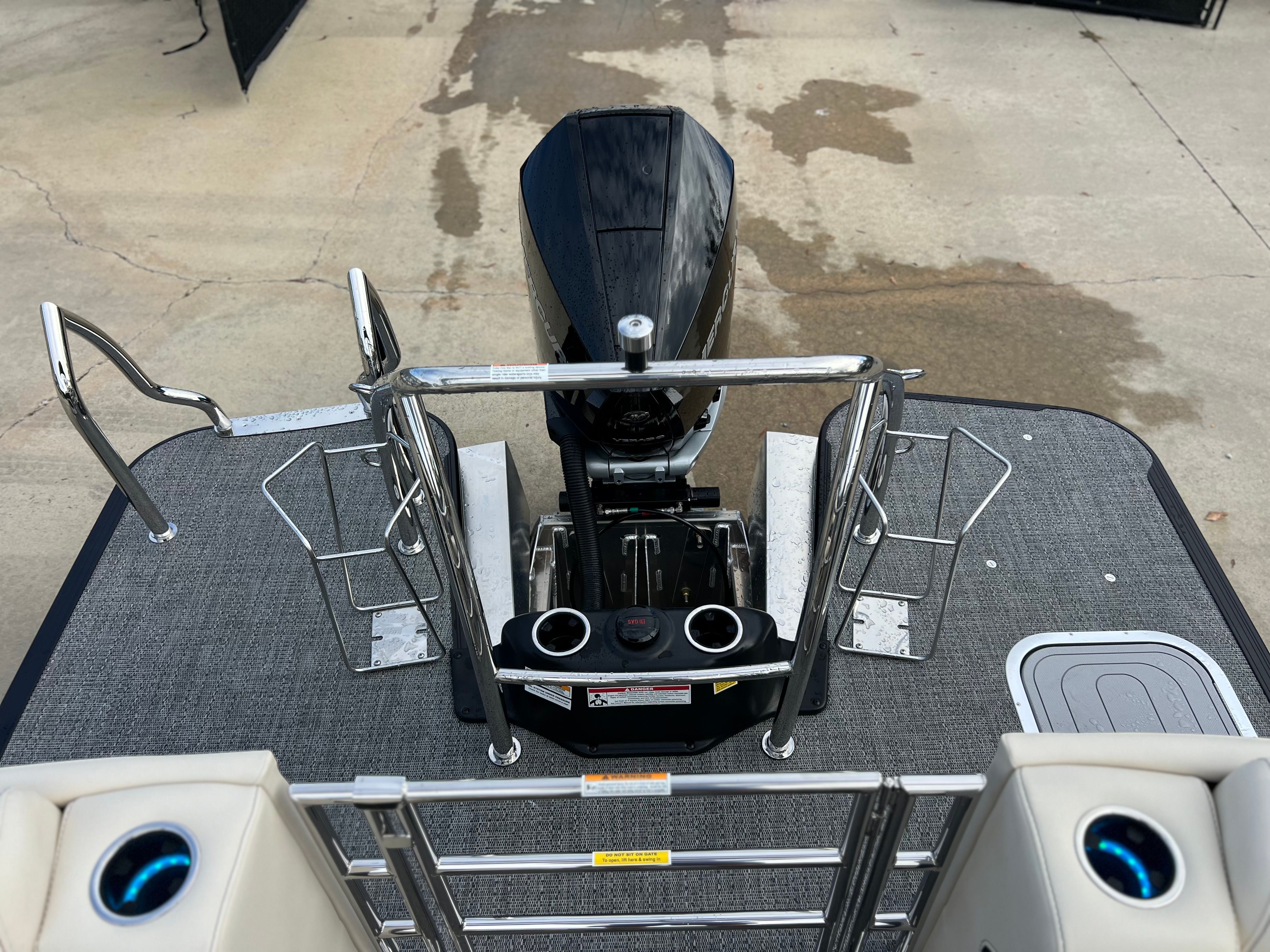 Powering the Barletta Lusso L25QCSS is a robust Mercury 300L Verado V8 engine, delivering an impressive 300 horsepower. This state-of-the-art engine is engineered for smooth acceleration, quiet operation, and exceptional reliability, ensuring you have the power and confidence to explore new horizons. The Mercury Digital DTS Pre-Rig for VERADO engines with Vessel Link provides seamless digital throttle and shift control, enhancing your boating experience with precise handling and effortless maneuverability. Hydraulic and power assist steering further contribute to the Lusso’s responsive and agile performance, making it easy to navigate tight spaces or cruise at higher speeds with total control.