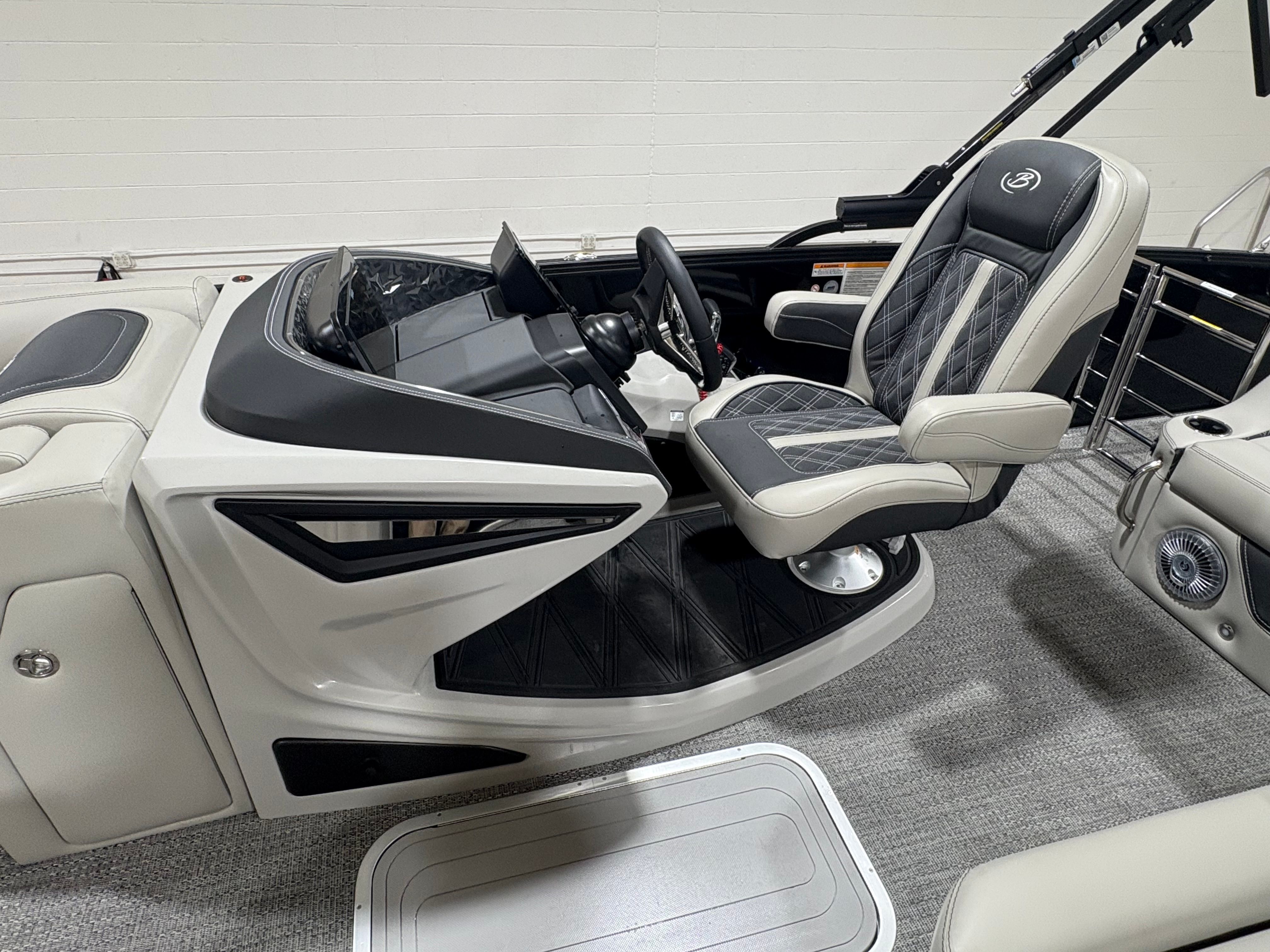 Powering the Barletta Lusso L25U is a single Mercury 300L Verado V8 engine, renowned for its smooth operation and impressive horsepower. With 300 HP at your command, this pontoon boat delivers exhilarating acceleration and reliable cruising speed, whether you’re exploring open water or towing water toys. The Mercury Digital DTS Pre-Rig for VERADO engines with Vessel Link ensures seamless integration and precise control, while hydraulic and power assist steering make handling effortless. The stainless steel prop enhances durability and performance, allowing you to navigate with confidence and agility.