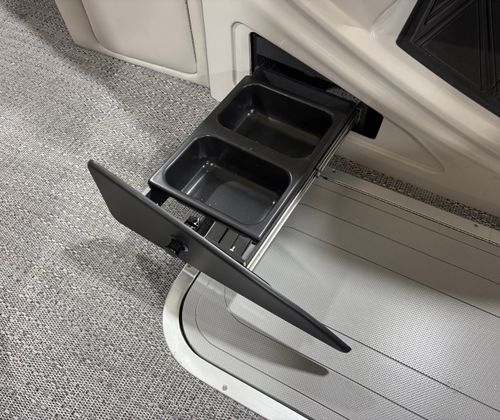 The Barletta Lusso L25U is as practical as it is beautiful. Its generous length provides ample storage for gear, water toys, and personal items, keeping the deck clutter-free and organized. The sturdy construction and reliable Mercury engine ensure peace of mind during every outing. Docking is simplified thanks to the responsive steering and power assist features, making it easy to navigate tight spaces or busy marinas. The efficient engine and digital controls contribute to fuel savings, allowing you to spend more time on the water and less at the pump. Exterior lighting enhances safety and visibility, making evening adventures both enjoyable and secure.