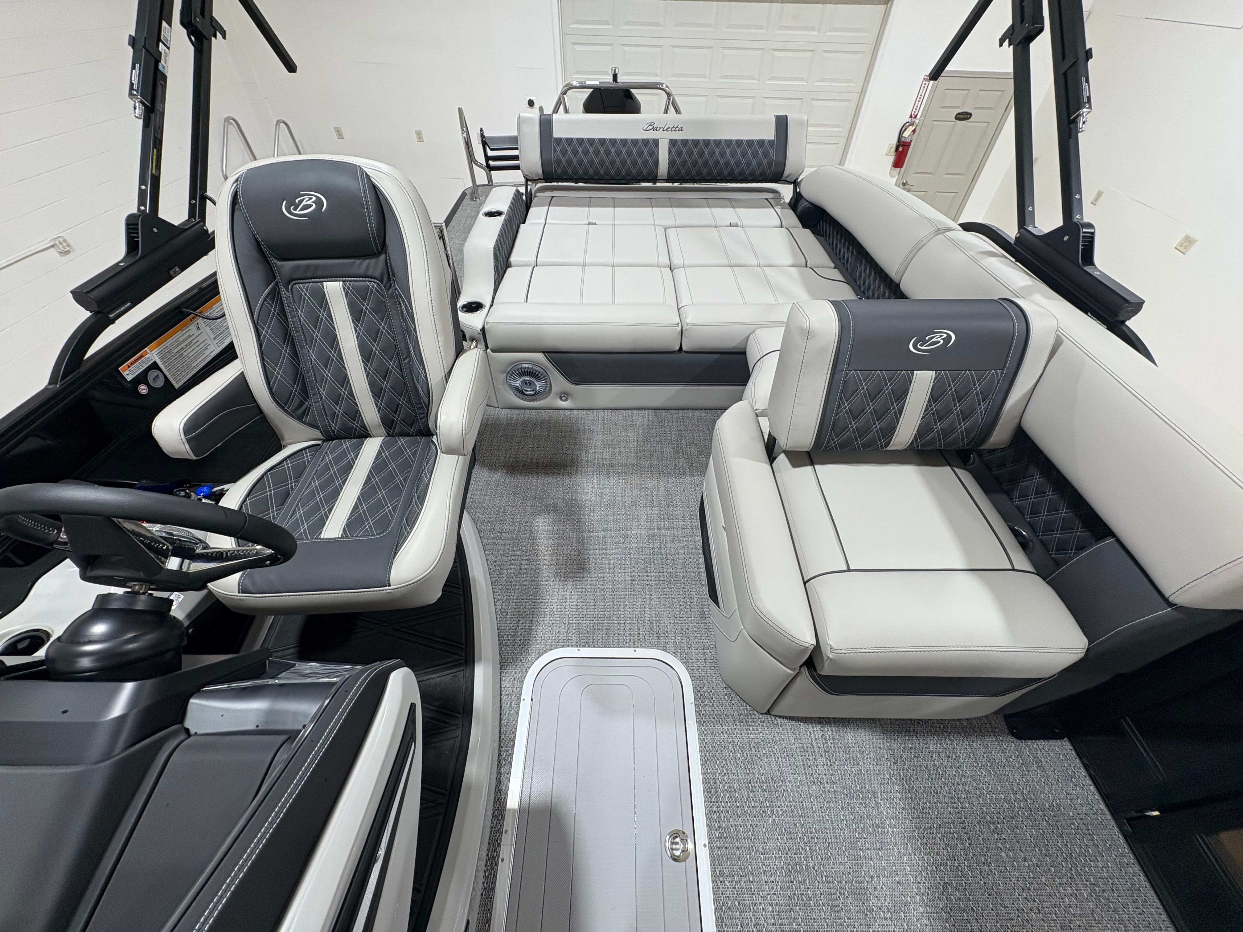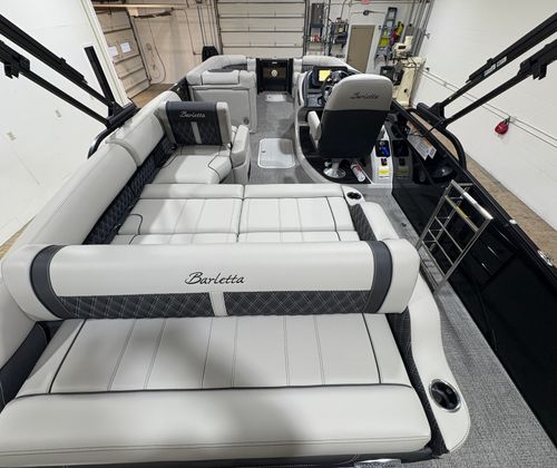 The 2026 Barletta Lusso L25U is a premier pontoon boat for sale, offering unmatched luxury, performance, and versatility. With its Mercury 300L Verado V8 engine, Black Diamond sweep and accent colors, blackout package, Marquesan Gray with Onyx furniture, Amore Gray flooring, and advanced digital controls, this Barletta boat for sale is designed to impress and delight. Exterior lighting, hydraulic and power assist steering, and a rigged engine with a stainless steel prop further enhance the boating experience. If you’re ready to elevate your time on the water and enjoy the ultimate in comfort, style, and fun, the Barletta Lusso L25U is the perfect choice. Contact your local dealer today to learn more about this exceptional pontoon boat and start your next adventure.