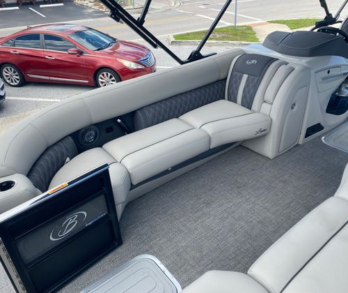 Owning the 2025 Barletta Lusso L25U means embracing a lifestyle of fun, relaxation, and unforgettable memories. The spacious deck layout is perfect for socializing, whether you’re hosting a lively gathering or enjoying a quiet sunset cruise. Plush seating and thoughtful design details ensure that every passenger experiences maximum comfort, while the double bimini provides ample shade for all-day enjoyment. The advanced lighting system transforms evening outings into magical experiences, illuminating the water and creating a captivating atmosphere. With its powerful engine and responsive handling, the Lusso L25U is equally suited for leisurely cruises, water sports, or exploring new destinations. This pontoon boat for sale is designed to bring people together, making every outing a celebration of the boating lifestyle.