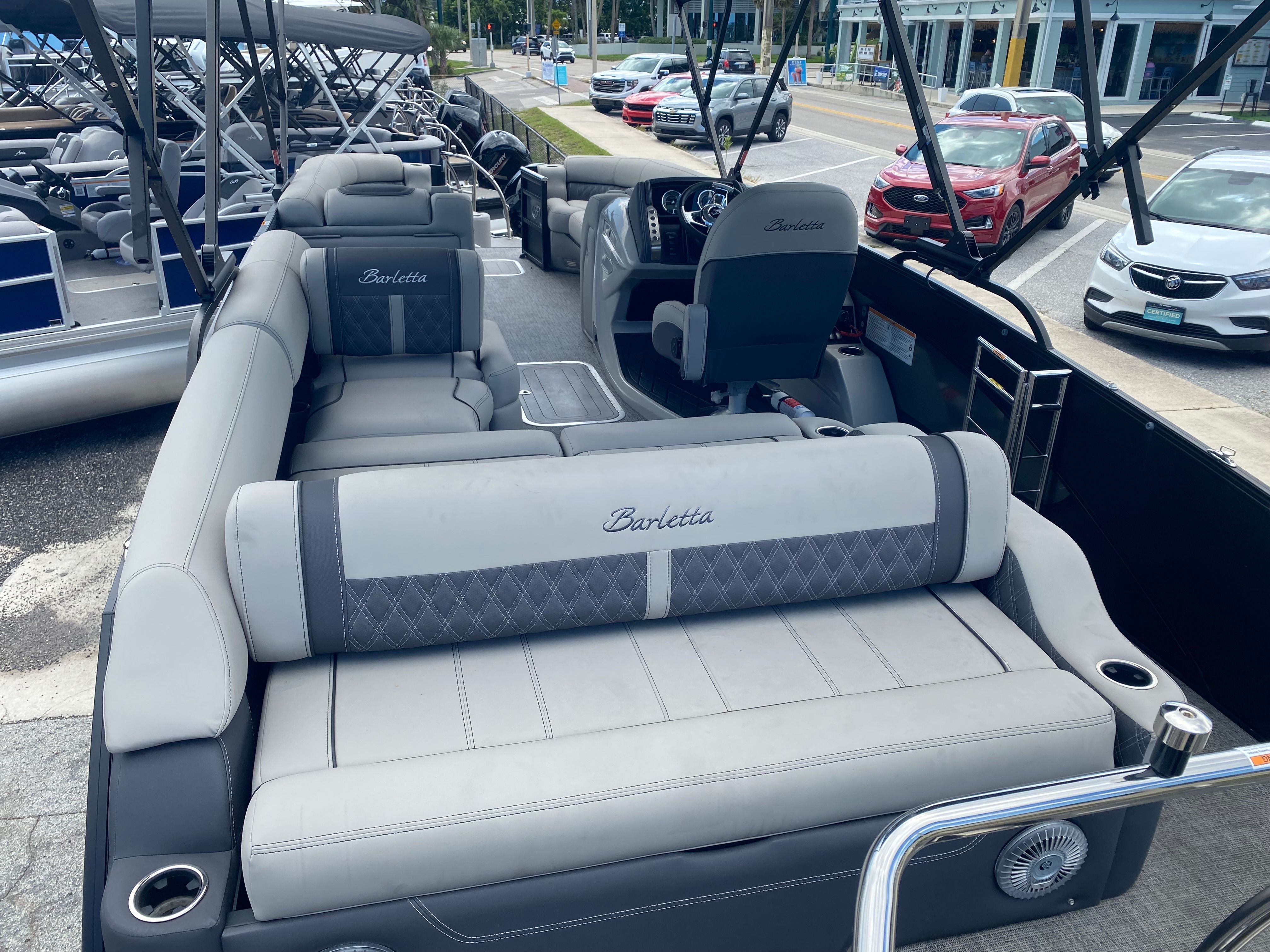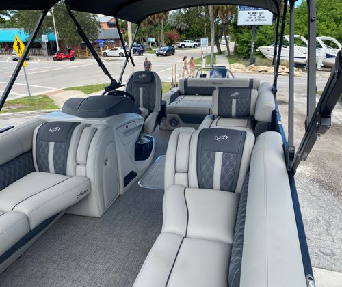 The Barletta Lusso L25U is as practical as it is luxurious. Its spacious layout offers plenty of room for storage, ensuring that all your gear, snacks, and essentials are easily accessible and neatly stowed. The AccuThruster System simplifies docking and maneuvering, reducing stress and making it easy to navigate busy marinas or tight spaces. The Mercury V10 Verado engine is engineered for efficiency and reliability, helping you make the most of your time on the water without worrying about frequent maintenance. The durable Coastal Edition Lusso construction provides peace of mind, whether you’re boating on inland lakes or venturing into saltier waters. Every detail of this Barletta boat for sale is designed to enhance convenience, comfort, and overall enjoyment.