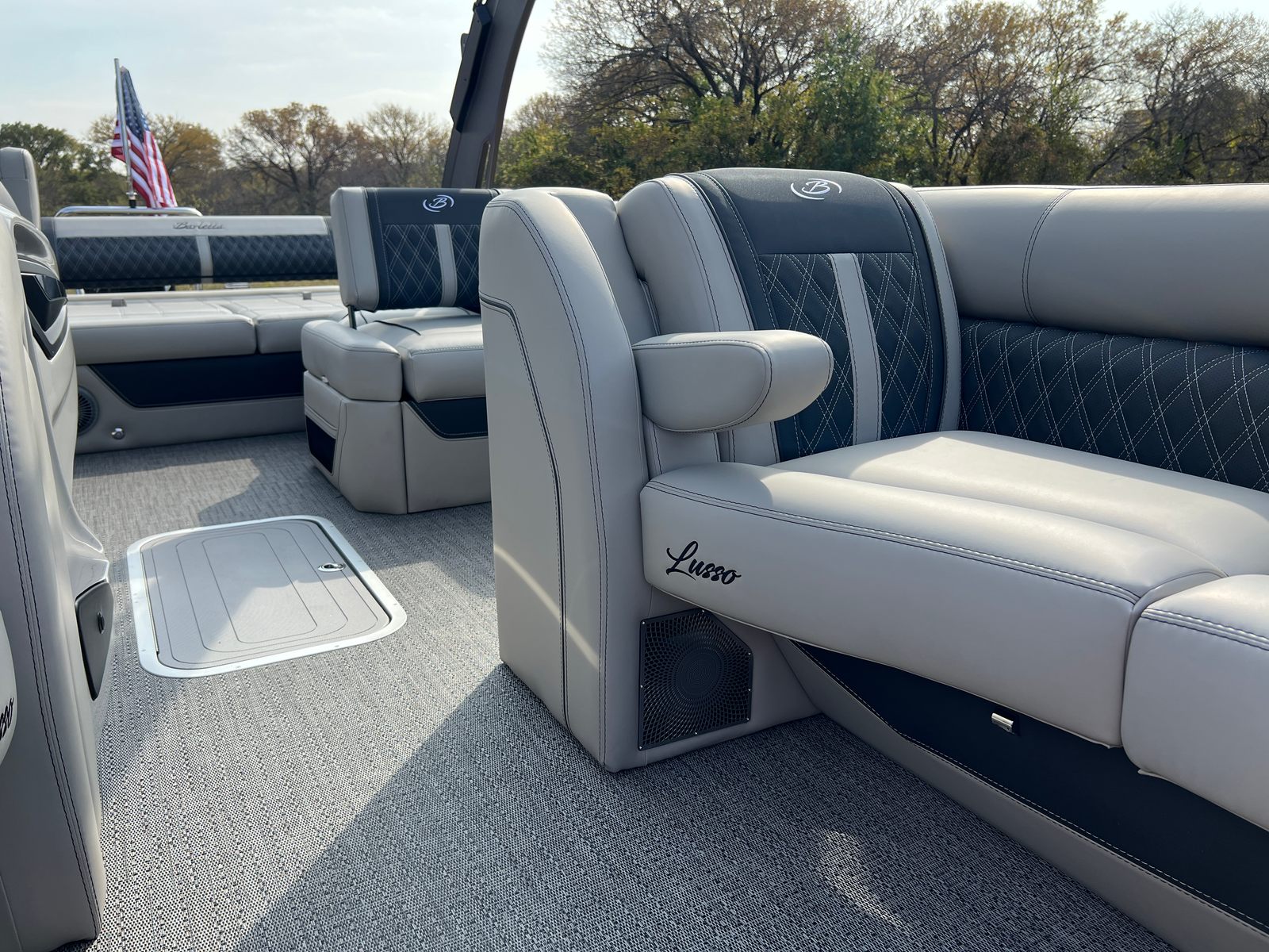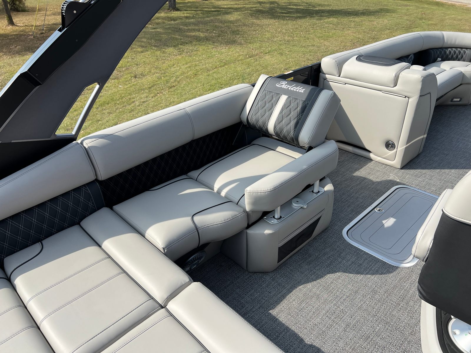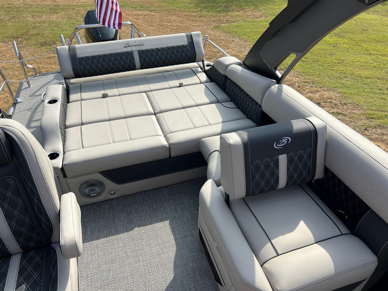 In summary, the 2026 Barletta Lusso L25UA is a standout pontoon boat for sale that offers a rare combination of luxury, performance, and versatility. With its striking Gray Moonstone and Black Diamond color scheme, Blackout Package Lusso, plush Marquesan Gray with Onyx furniture, Amore Gray flooring, and advanced Mercury 400L V10 Verado engine, this boat is designed to impress at every turn. Stainless steel safety stanchions with chains and Metal Jacket Protectant add to its appeal, ensuring both safety and longevity. If you are ready to elevate your boating experience and create lasting memories on the water, the Barletta Lusso L25UA is the perfect vessel to make your dreams a reality. Contact your local dealer today to learn more about this exceptional Barletta boat for sale and take the first step toward unforgettable adventures.