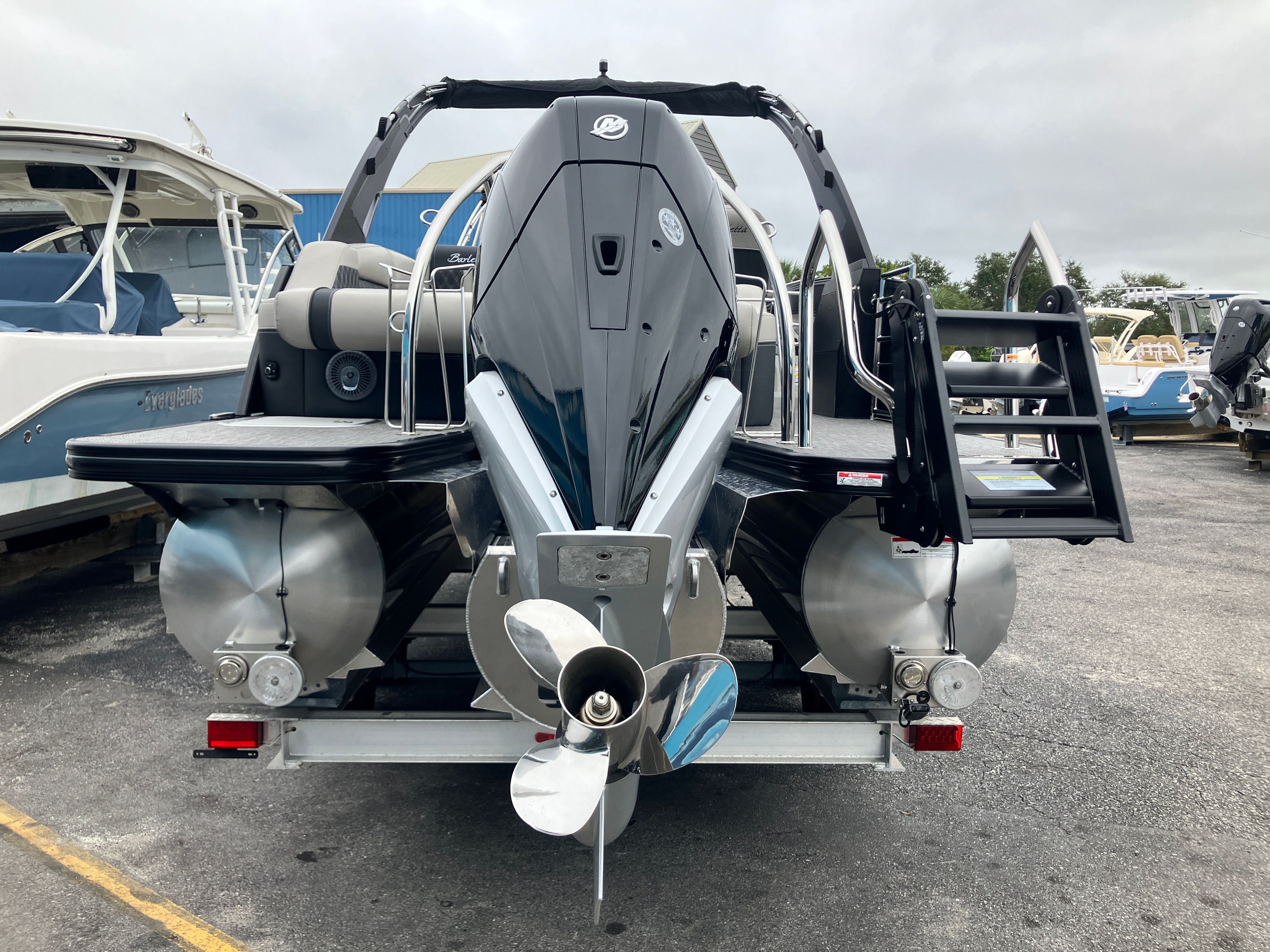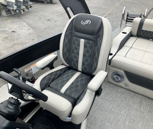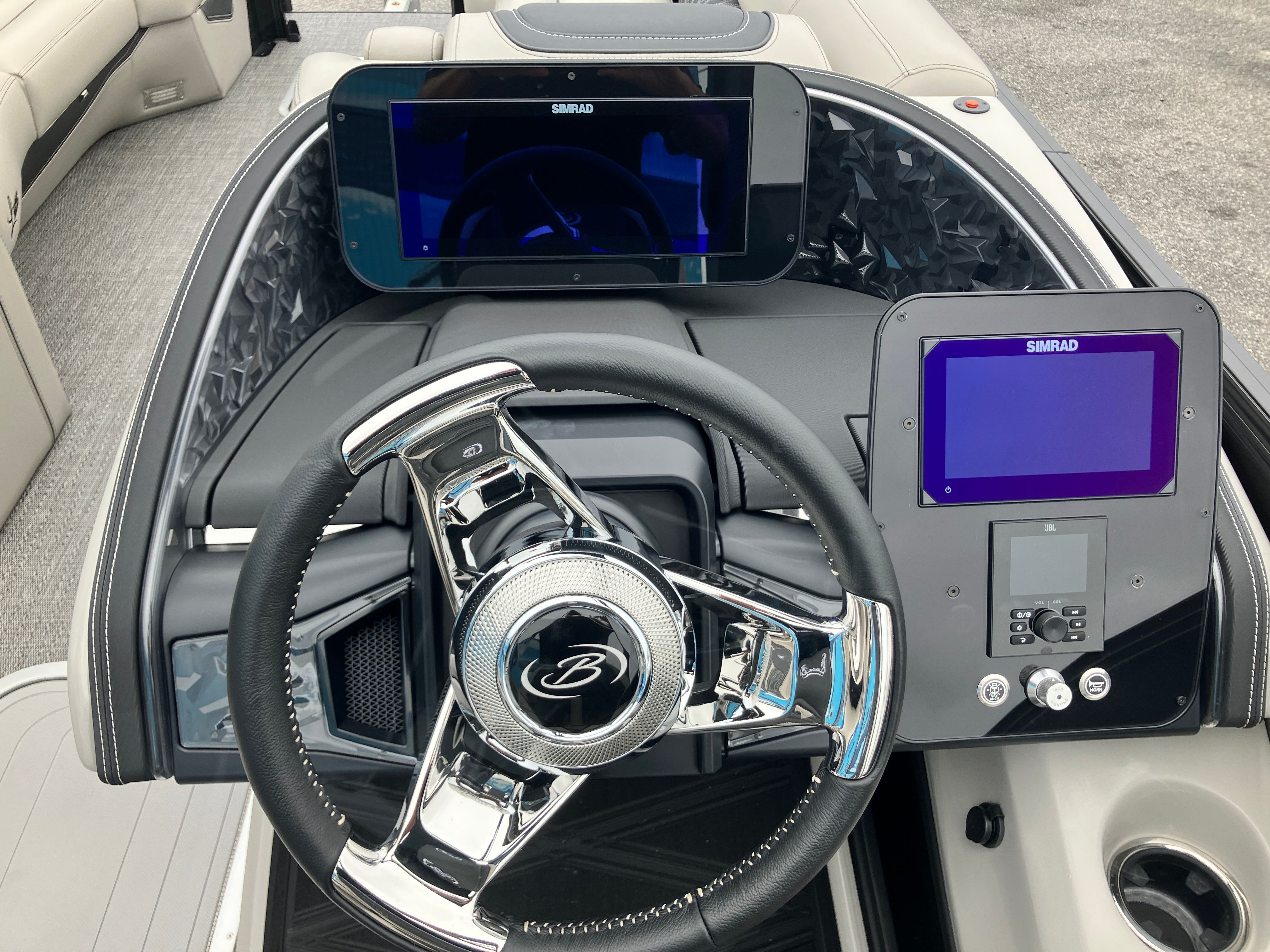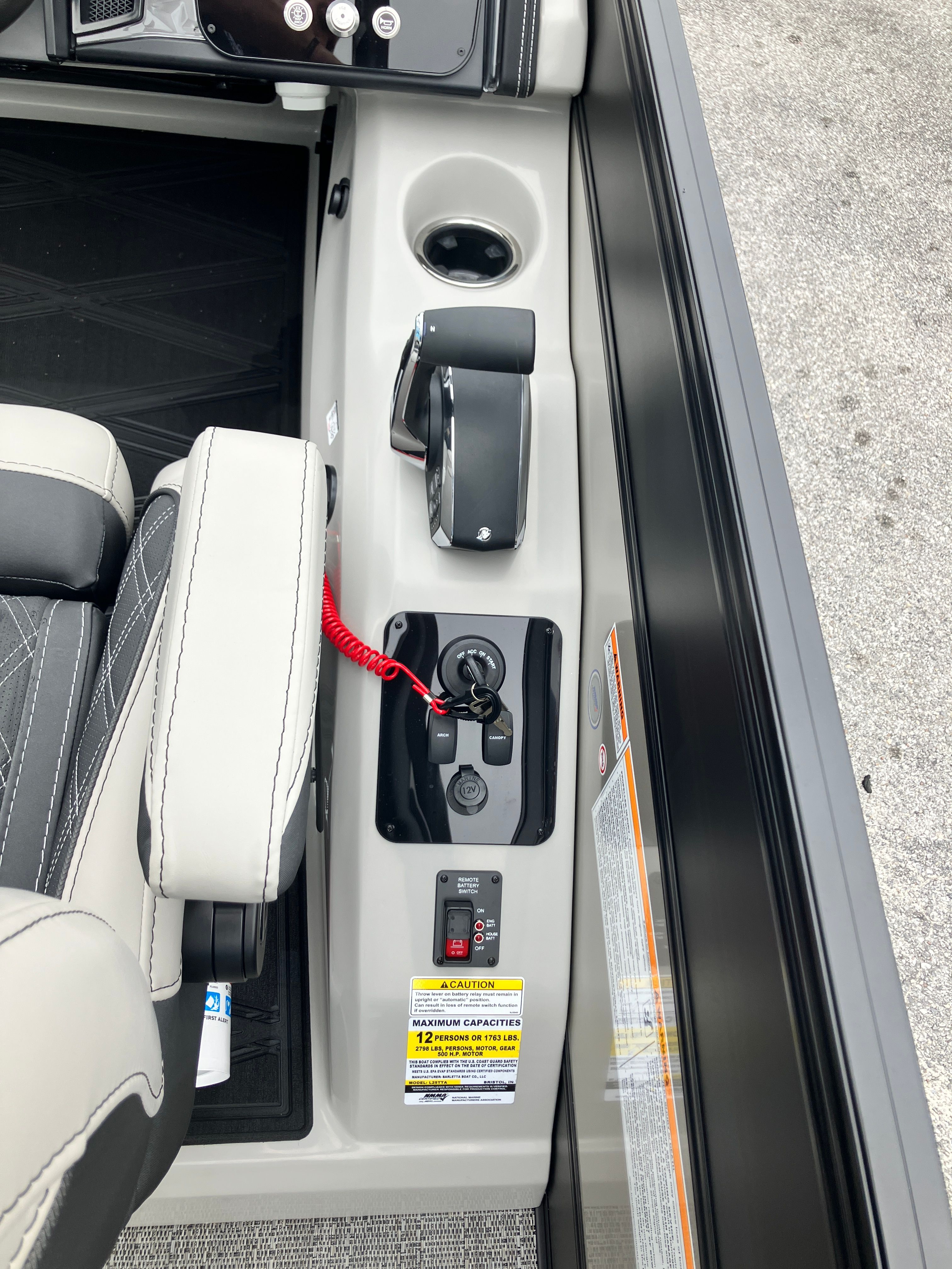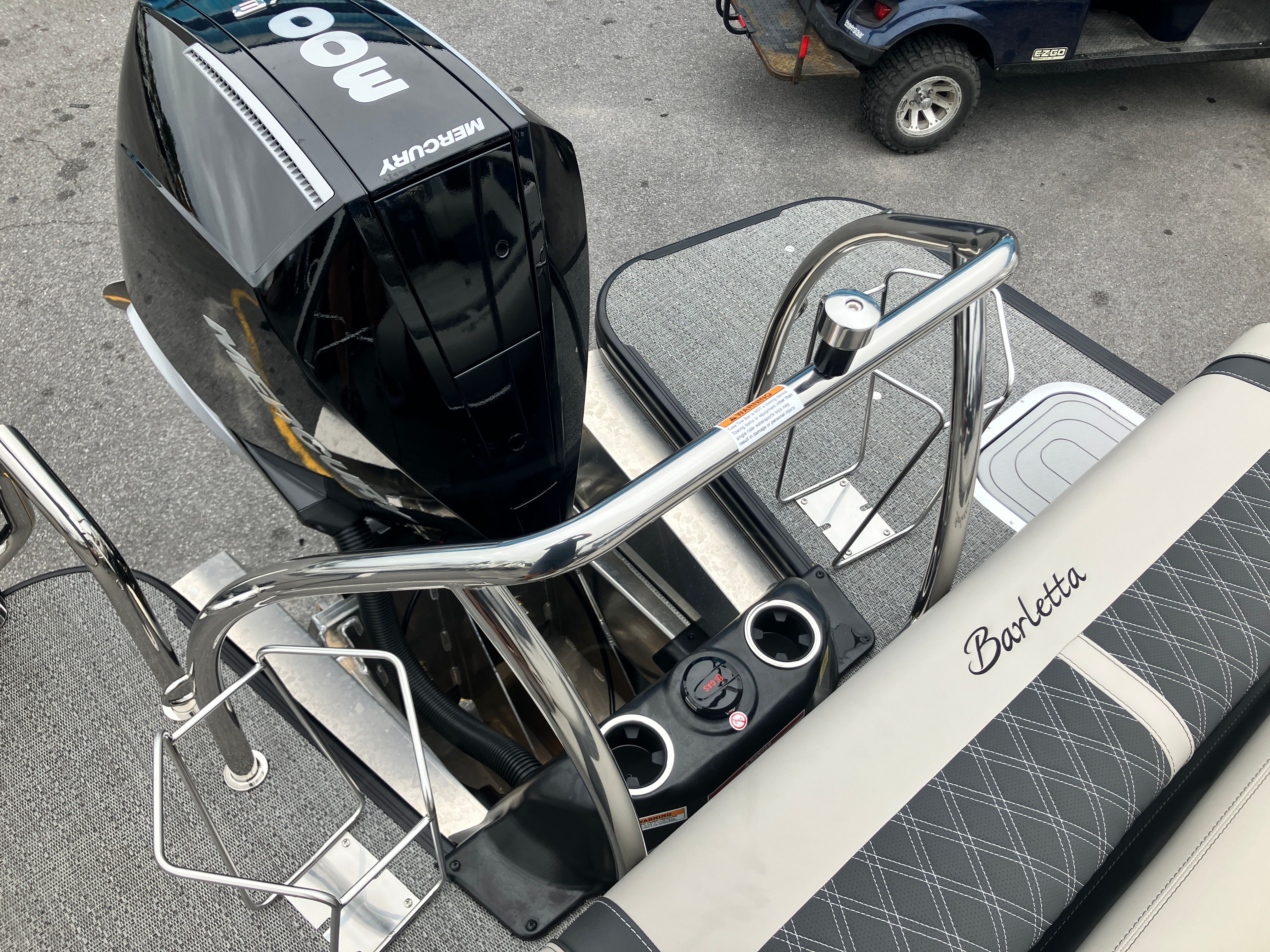 Power and precision come together in the Barletta Lusso L25UA, thanks to its robust Mercury 300L Verado V8 engine. With 300 horsepower at your command, this pontoon boat offers exhilarating acceleration, smooth cruising, and the confidence to explore larger bodies of water. The Mercury Digital DTS Pre-Rig for VERADO engines with Vessel Link ensures seamless integration and intuitive control, while hydraulic and power assist steering provide effortless maneuverability. Digital gauges keep you informed at a glance, and the rigged engine with a stainless steel prop delivers reliable, efficient performance every time you set out on the water.