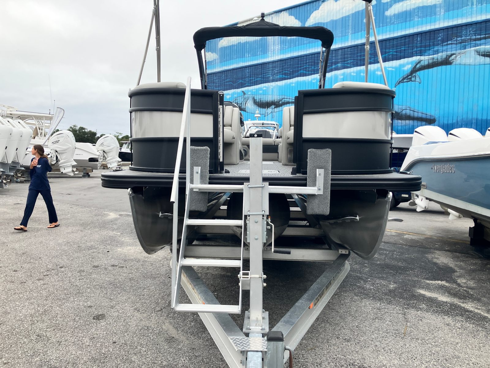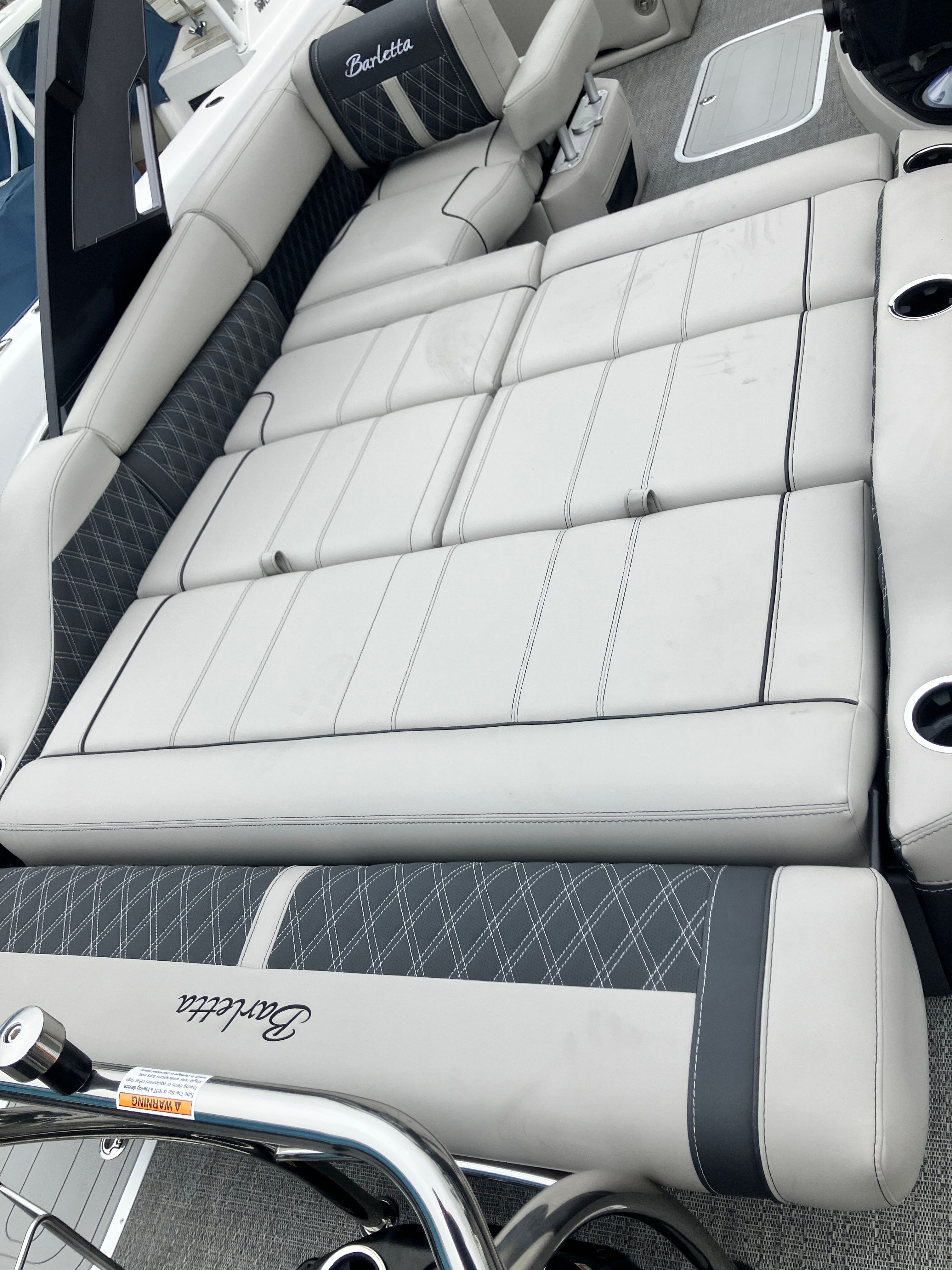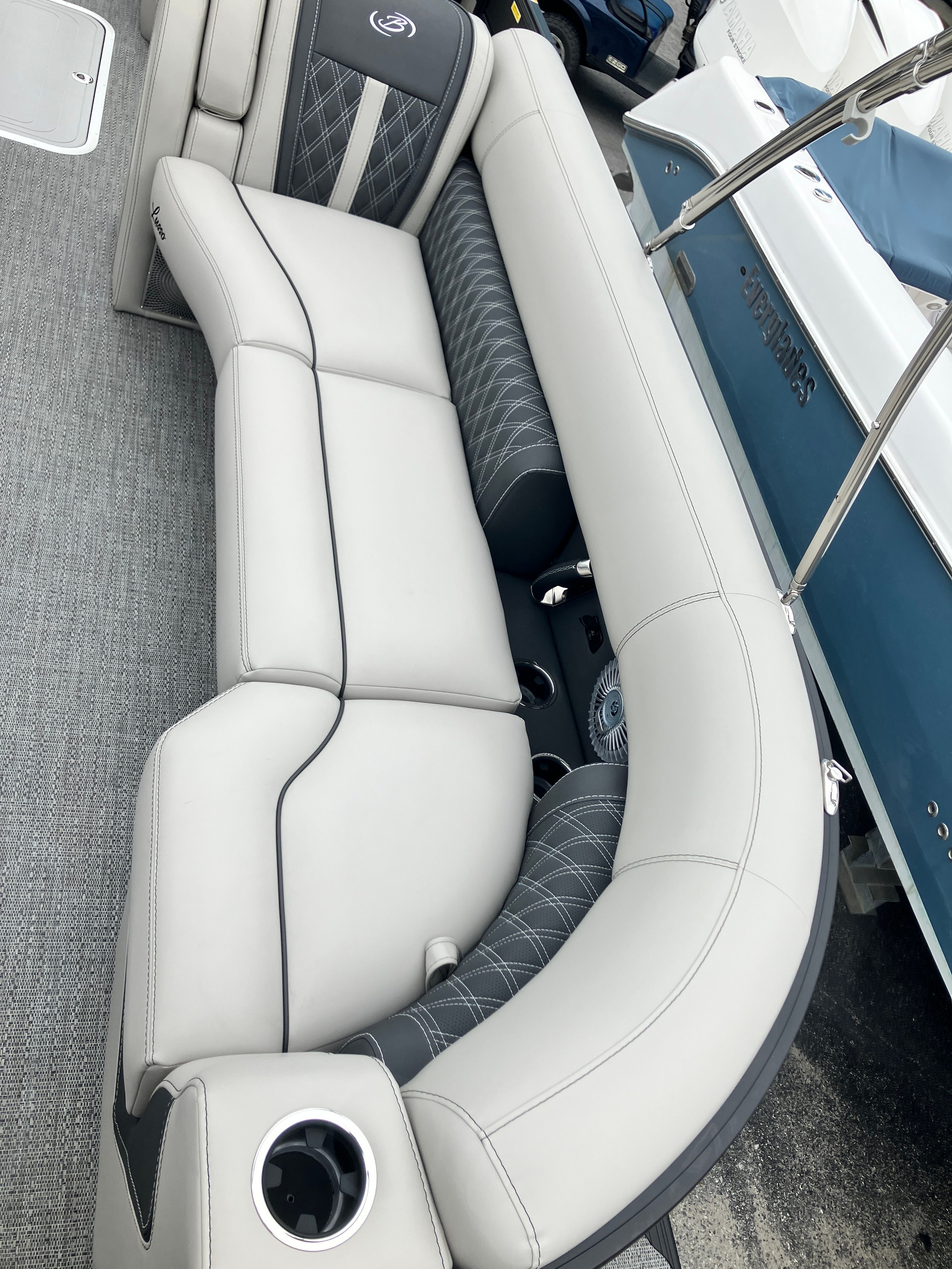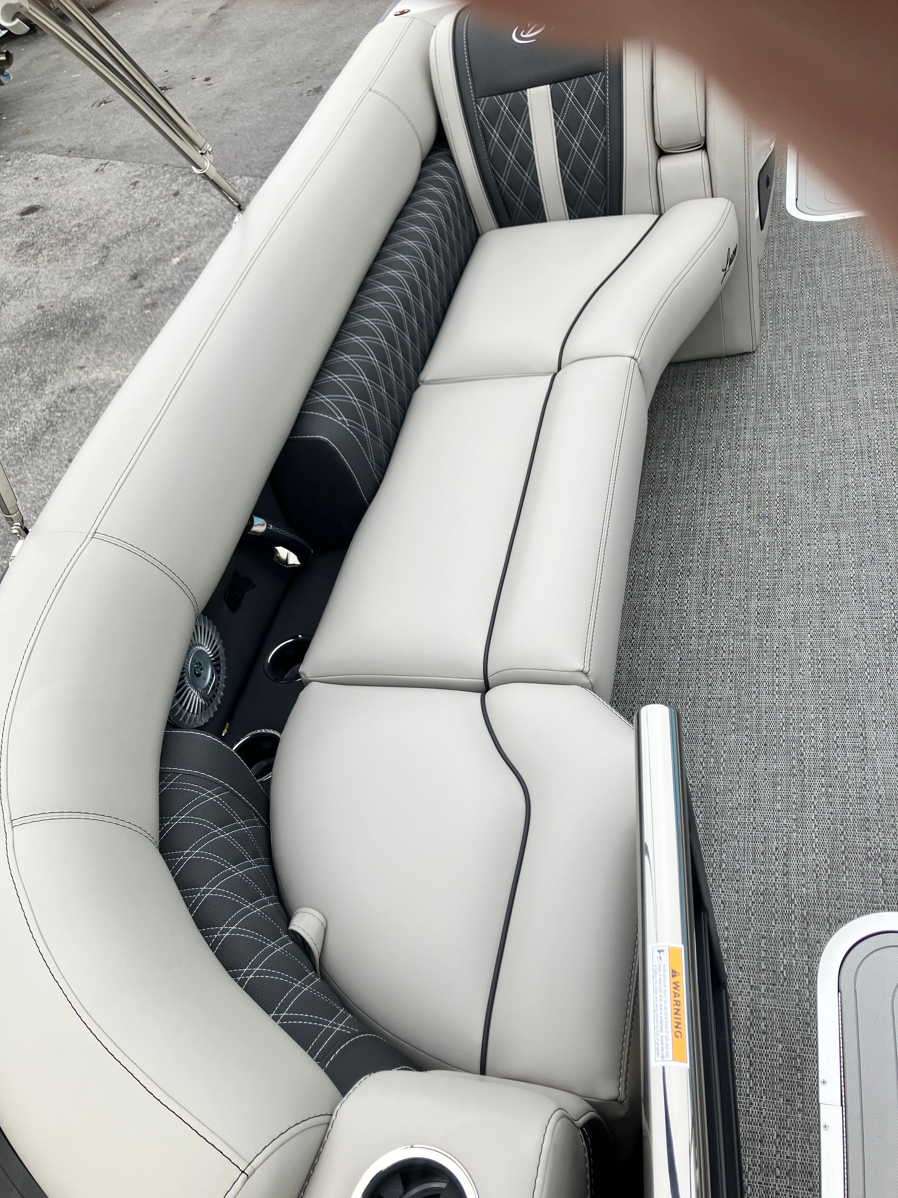 The 2026 Barletta Lusso L25UA is a testament to Barletta’s commitment to quality, innovation, and luxury. Measuring an impressive 27.5 feet in length, this pontoon boat offers ample space for entertaining, relaxing, and enjoying the open water. The Lusso L25UA’s sleek Matte Black sweep color, accented by a sophisticated Champagne hue, ensures that this boat turns heads wherever it goes. The Blackout Package Lusso railskin adds a bold, modern touch, while the Marquesan Gray with Onyx furniture and Amore Gray flooring create an inviting and upscale atmosphere onboard. As a new pontoon boat for sale, the Lusso L25UA is ready to deliver years of memorable adventures.